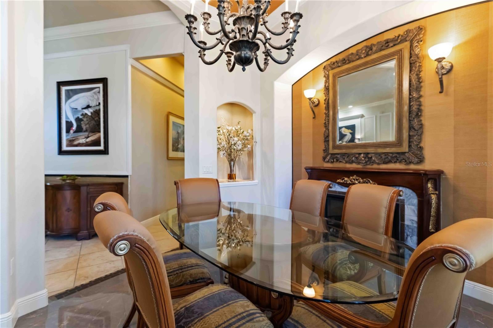 Welcome to this exceptional preserve-view pool home in the gated golf community of River Wilderness. This well-appointed single-family residence offers approximately 2,700 sq ft with 3 bedrooms, 3 baths, formal living and dining rooms, an open family room with wood-burning fireplace, and a dedicated den/office with built-ins. The kitchen features granite countertops, pantry storage, breakfast bar seating, gas-plumbed cooking, and direct sightlines to the pool and lanai. The primary suite includes private access to the screened outdoor living area. Architectural details include coffered and tray ceilings, tile flooring throughout the main living spaces, abundant natural light, and a functional split layout. Outdoor living is centered around a screened pool and covered lanai overlooking a preserve backdrop. The landscaped 0.46-acre lot is supported by a Rain Bird automated irrigation system. A paver driveway and walkways enhance curb appeal, while the oversized attached 3-car garage provides ample storage and parking. Recent upgrades include a new roof completed in 2025 and hurricane-rated impact windows and doors, offering enhanced storm protection and long-term durability. 3D Matterport walkthrough, and video tour. Located within the gated River Wilderness Golf & Country Club community, with optional access to golf, clubhouse, tennis, pickleball, bocce, and social amenities. Convenient access to major roadways supporting travel throughout Manatee County and surrounding areas.Conveniently located minutes from Lakewood Ranch, shopping, dining, I-75, and the Gulf Coast beaches. A rare opportunity to own a private preserve-lot pool home in a premier golf community at an exceptional value.