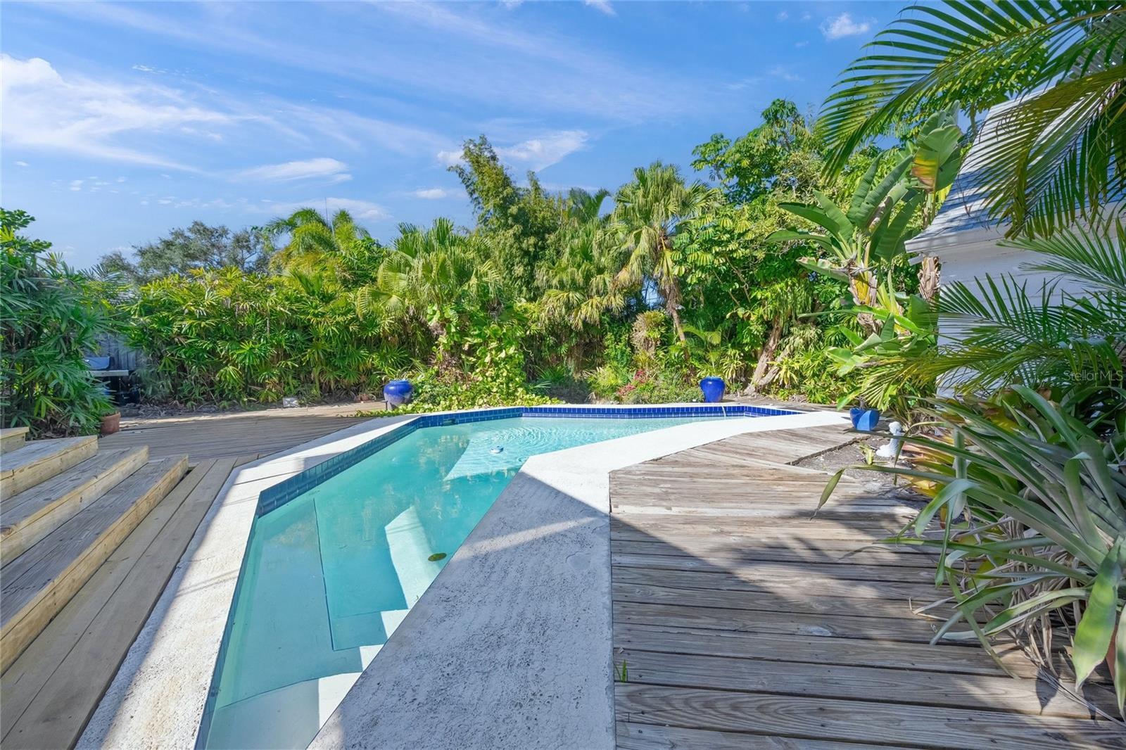 A rare and soulful architectural treasure tucked within Avondale, one of Sarasota’s most enduring and affluent neighborhoods since the early 1900s. Located at 1917 Bahia Vista Street, this mid-20th-century residence offers a once-in-a-lifetime opportunity to own a home where timeless design, authentic character, and lush tropical privacy converge. Set on a supremely private, verdant lot, the main residence features three bedrooms, three bathrooms, and a sun-drenched Florida room that seamlessly blends indoor living with the surrounding gardens. Original hardwood floors, crown molding, and a classic fireplace anchor the home with warmth and historic charm, while expansive windows and plantation shutters bathe each space in natural light. Thoughtfully proportioned living and dining areas create an elegant yet inviting atmosphere—perfect for both intimate gatherings and relaxed everyday living. The kitchen embraces vintage appeal with crisp white cabinetry, contrasting black-and-white tile flooring, and an arched doorway that nods to the home’s architectural heritage. Beyond the interior, the property unfolds into a lush tropical oasis, where a sparkling pool and elevated wood decking are enveloped by mature palms and greenery, offering complete privacy and a true resort-like setting. Adding to the home’s versatility is a detached guesthouse with a kitchen, ideal for hosting family and friends, creating a private home office or studio, or accommodating multigenerational living. The casita mirrors the property’s charm while providing valuable flexibility rarely found in this coveted location. This is more than a home—it’s a special moment. A chance to secure a distinctive Sarasota gem for the buyer who values character, craftsmanship, and mid-century architecture, all just minutes from downtown Sarasota, Southside Village, and world-class beaches. Properties like this rarely come to market—1917 Bahia Vista Street is an invitation to own something truly unforgettable.