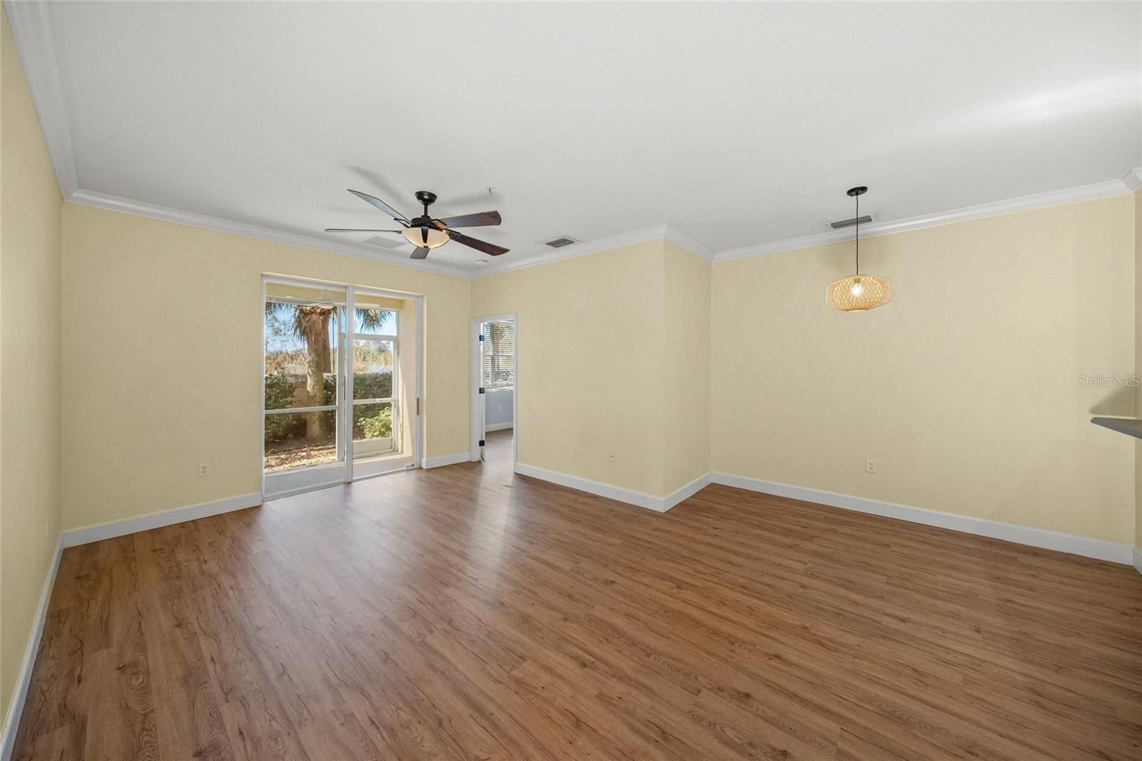 - Ceiling Fans(s), Crown Molding, High Ceilings, In Wall Pest System, Living Room/Dining Room Combo, Open Floorplan, Primary Bedroom Main Floor, Solid Surface Counters, Thermostat
