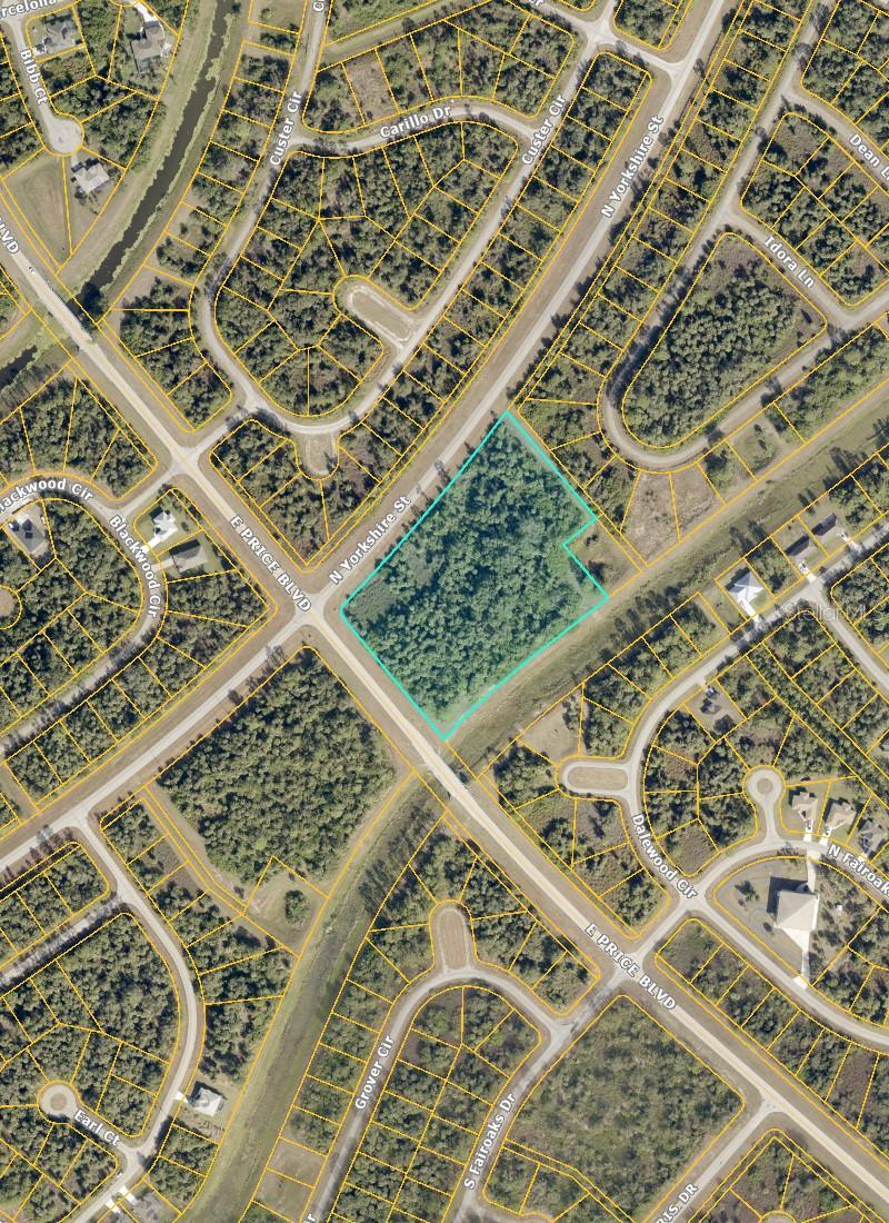 Rare vacant land opportunity recently rezoned AC-6, offering highly flexible mixed-use potential including commercial,office,retail and industrial uses. This hard corner property is located in a rapidly growing area just minutes from the heart of North Port and close to the proposed future I-75 exit and 0.3 miles from I75. This property features 382 feet of frontage on E Price and 610 feet of frontage on N Yorkshire. Hard-to-find zoning with public water, available electric and very strong investment upside.
