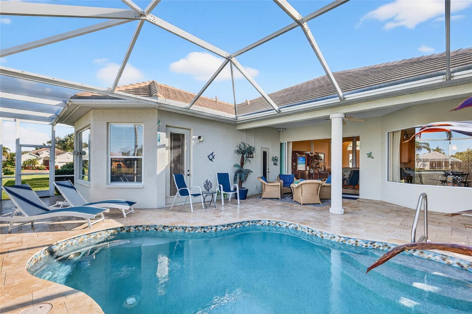 Welcome to this exceptional Neal-built residence in the highly sought-after Wisteria Park, where timeless design meets effortless Florida living. Being sold turnkey furnished, this beautifully maintained three bedroom plus office, two and a half bathroom home is truly move-in ready—just bring your suitcase and start enjoying the lifestyle. From the moment you arrive, the home’s inviting curb appeal, manicured landscaping, and welcoming entry set the tone. Inside, soaring ceilings, abundant natural light, and an open, flowing floor plan create an atmosphere that is both elegant and comfortable, ideal for everyday living and entertaining alike. The heart of the home features a spacious great room with tray ceilings and expansive sliding glass doors that open seamlessly to the outdoor living area. The kitchen is thoughtfully designed with solid wood cabinetry, granite countertops, stainless steel appliances, a gas cooktop, and generous counter space, all opening to the dining and living areas—perfect for hosting gatherings. The primary suite offers a peaceful retreat with ample space, tranquil views, and direct access to the lanai. The ensuite bath is spa-inspired, featuring dual vanities, a soaking tub, a walk-in shower, and refined finishes that create a relaxing sanctuary. Step outside to the private screened lanai, where a sparkling pool and serene lake views provide the perfect backdrop for morning coffee, evening cocktails, or simply unwinding. This outdoor space is designed to be enjoyed year-round and offers the privacy and tranquility that define the Florida lifestyle. Additional highlights include turnkey furnishings for immediate enjoyment, high ceilings with crown molding, multiple living and dining spaces, a private lakefront setting, and a paver driveway and lanai. The home has been meticulously cared for and shows true pride of ownership throughout. Wisteria Park offers a resort-style community atmosphere and is conveniently located near Anna Maria Island, Robinson Preserve, DeSoto National Memorial, shopping, dining, and medical facilities—providing an ideal balance of peaceful living and easy access to local amenities. This is more than a home; it is a lifestyle opportunity. Properties of this quality, condition, and turnkey convenience are rare. Schedule your private showing today and experience the best of Wisteria Park living