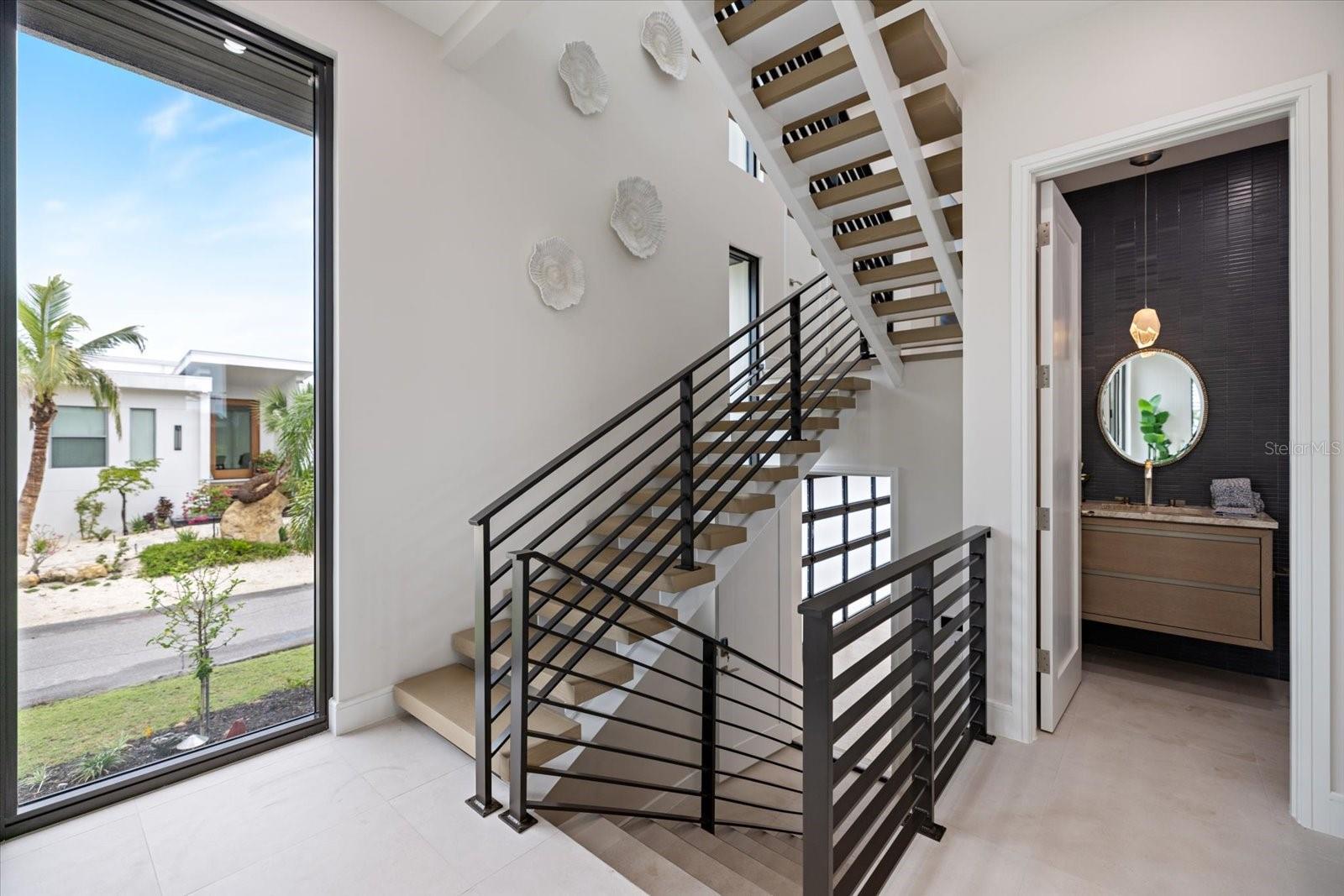 Step into a new era of coastal modern living with this breathtaking, newly constructed waterfront retreat, perfectly positioned on the exclusive north end of Longboat Key. Designed with intention and offered fully turnkey-furnished, this residence is a refined sanctuary where architectural elegance meets cutting-edge technology and relaxed sophistication. The grand entry leads into a dramatic great room, showcasing driftwood-accented ceilings and expansive floor-to-ceiling windows that flood the space with natural light. From here, the home flows effortlessly into the open dining area and chef’s kitchen, where rich wood-tone custom cabinetry, premium appliances, and clean modern lines create an atmosphere of understated luxury. Just off the dining space, you’ll find an expansive entertainer’s room with its own full bath—ideal for hosting dinner parties, events, or enjoying a night in with guests. Upstairs, the home’s private quarters await. Bedrooms two and three are located on the second level, while the third floor is reserved entirely for the primary suite, accessible by private elevator. This executive-level retreat features multiple walk-in closets, serene private balconies overlooking the water, and a spa-inspired primary bathroom designed with curated finishes and timeless style. Throughout the home, attention to detail is evident in every finish and feature—including a full Lutron lighting system, motorized shades, integrated surround sound, and a Brinks security system with CCTV monitoring. Outside, the coastal lifestyle truly comes to life. Enjoy a resort-style pool, fire pit lounge, and a brand-new private dock just a few homes away from open water—offering easy access to the Gulf and endless boating adventures. This property was crafted to bring people together, whether relaxing with family or entertaining in style.