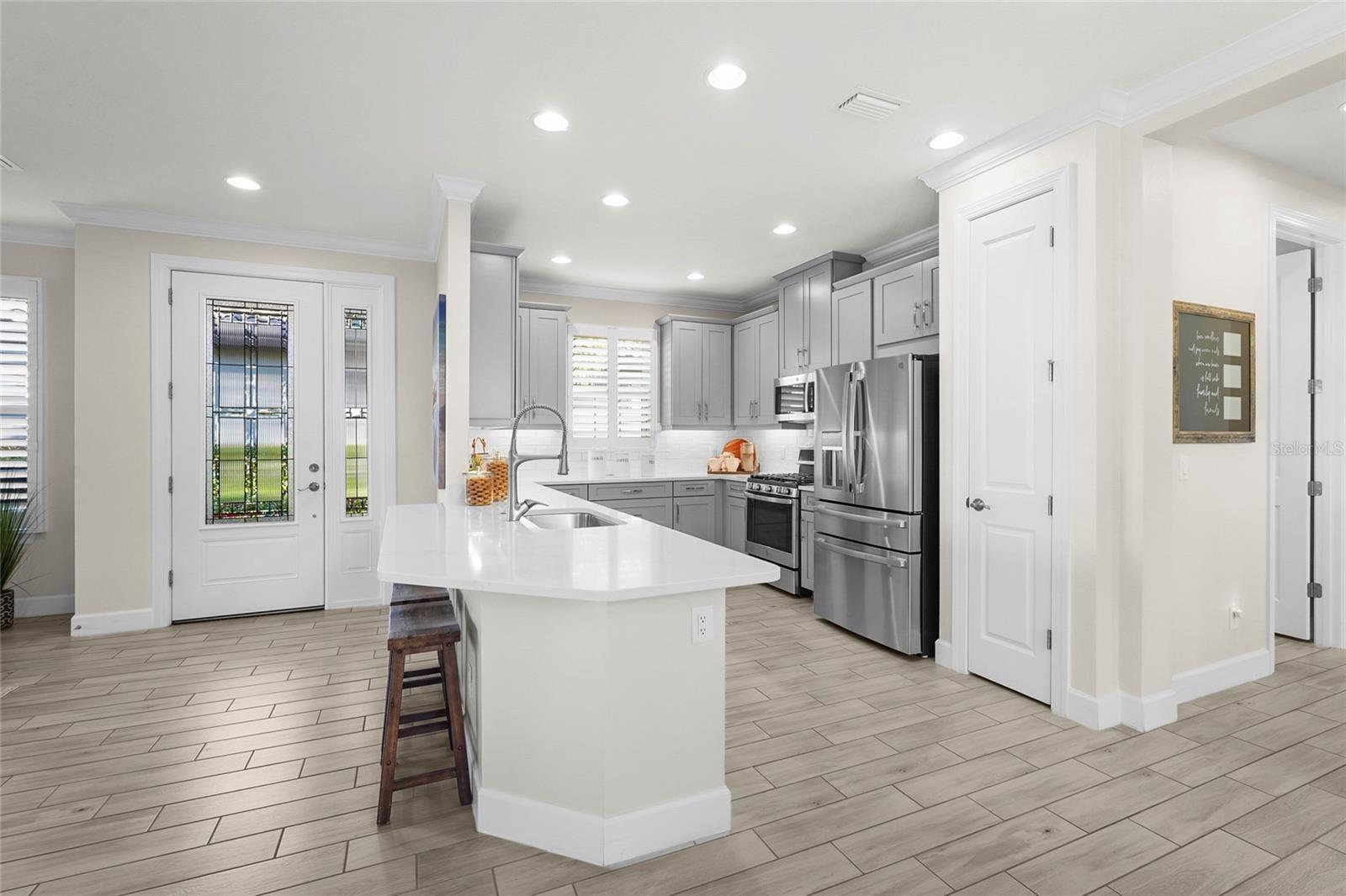 Beautifully upgraded waterfront home with premium corner-lot privacy in the sought-after gated Esplanade at Palmer Ranch—offering direct gated access to the Legacy Trail just steps from your door. This rarely available Roma model features 2 bedrooms, 2 bathrooms plus den, an extended and oversized screened lanai, and a thoughtfully designed open floor plan ideal for both everyday living and entertaining. Situated on a premium corner waterfront lot, the home delivers peaceful views, added privacy, and seamless indoor–outdoor living. Notable structural upgrades include: • Extended kitchen • Primary suite bump-out • Trey ceilings • 8-foot interior doors • 4-foot garage extension • Gas line on lanai Designer and interior enhancements: • Crown molding throughout • Upgraded tile flooring • Plantation shutters and custom window treatments • Custom wall accents • New lighting fixtures • Culligan whole-home water filtration system • Upgraded laundry room with added cabinetry and backsplash The gourmet natural gas kitchen is perfect for entertaining, while the primary bath features a frameless glass shower enclosure for a spa-like retreat. Legacy Estates at Esplanade on Palmer Ranch is a gated, maintenance-free community offering world-class amenities: On-site Bahama Bar restaurant, resort-style pool, resistance pool, splash park, and hot tub Fitness center and private fitness studio with daily classes 8 pickleball courts, 2 tennis courts, and 3 dog parks Nature trail and direct access to the Legacy Trail—offering the perfect blend of luxury, lifestyle, and location. Schedule your private showing today.