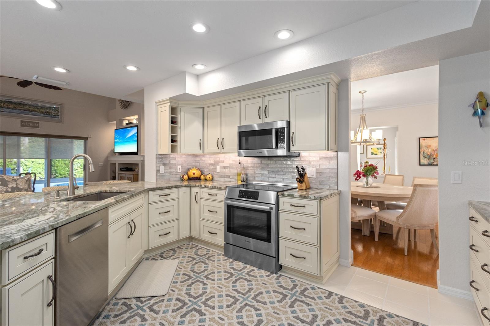 Impeccably maintained pool home with premium upgrades throughout! From the moment you arrive, you'll notice the exceptional care and attention to detail that sets this home apart. The beautifully landscaped front yard is designed for low maintenance, offering a clean, welcoming look year-round. Step into your own private oasis in the fenced backyard, featuring a resurfaced (2024) inground pool with a premium Pebble Tech finish—backed by a lifetime warranty. The pool is also heated by an electric heat pump, ensuring year-round enjoyment. Other key structural upgrades include: new asphalt roof (2020), York 3.5-ton AC system installed in 2021 (with parts and labor warranty through 2031), additional upstairs AC installed in 2024, commercial grade water heater (2021), and extra R22 insulation added over existing R30 for enhanced energy efficiency. The storm-resistant, glass/screen-enclosed lanai (added in 2015) provides extra living space—perfect for all seasons, rain or shine. The kitchen is a chef's dream with all-wood custom cabinetry, granite countertops, tile backsplash and new Bosch appliances (2024). The recently remodeled primary bathroom features a luxurious Roman walk-in shower and double vanities with quartz countertops. Beautiful hardwood floors in the family room, formal living, and main-level primary bedroom and luxury vinyl plank flooring upstairs, (where you'll also enjoy crown molding and a fully updated bath). Plantation shutters adorn most windows. The oversized, side-entry 3-car garage includes built-in cabinets, a workbench, and 150 sq. ft. of overhead storage—ideal for hobbyists or extra organization. This home truly has it all and is move-in ready for you and your family!