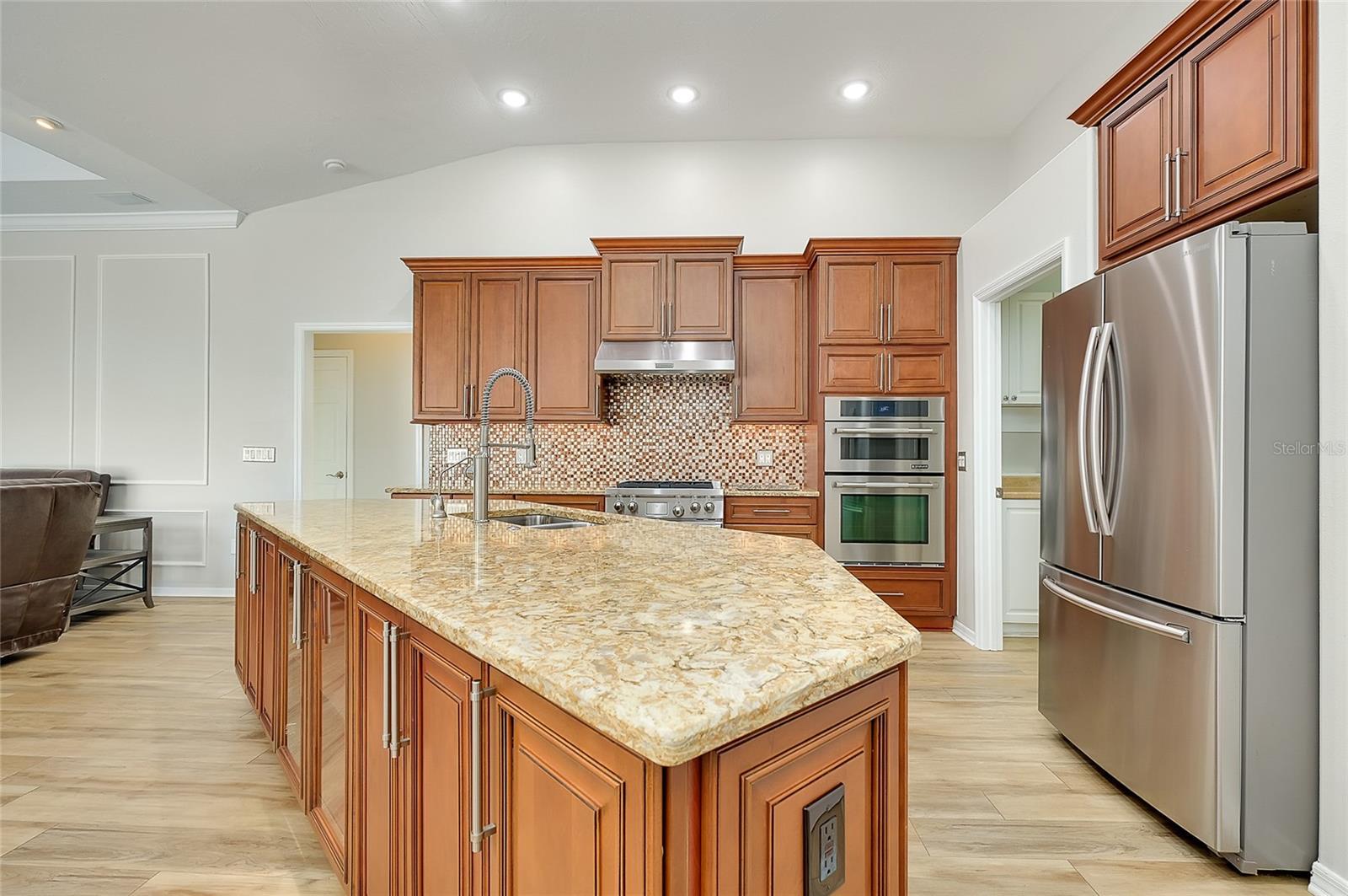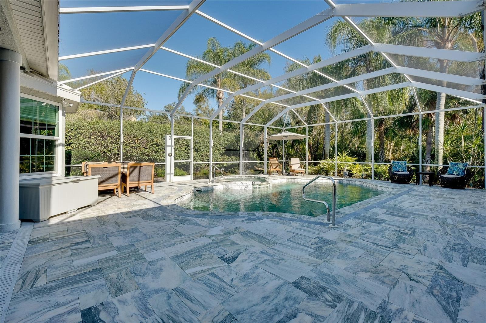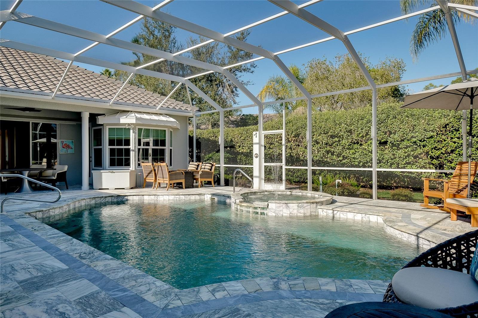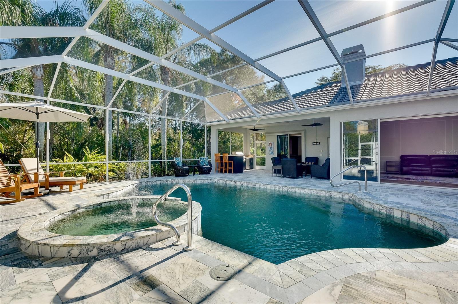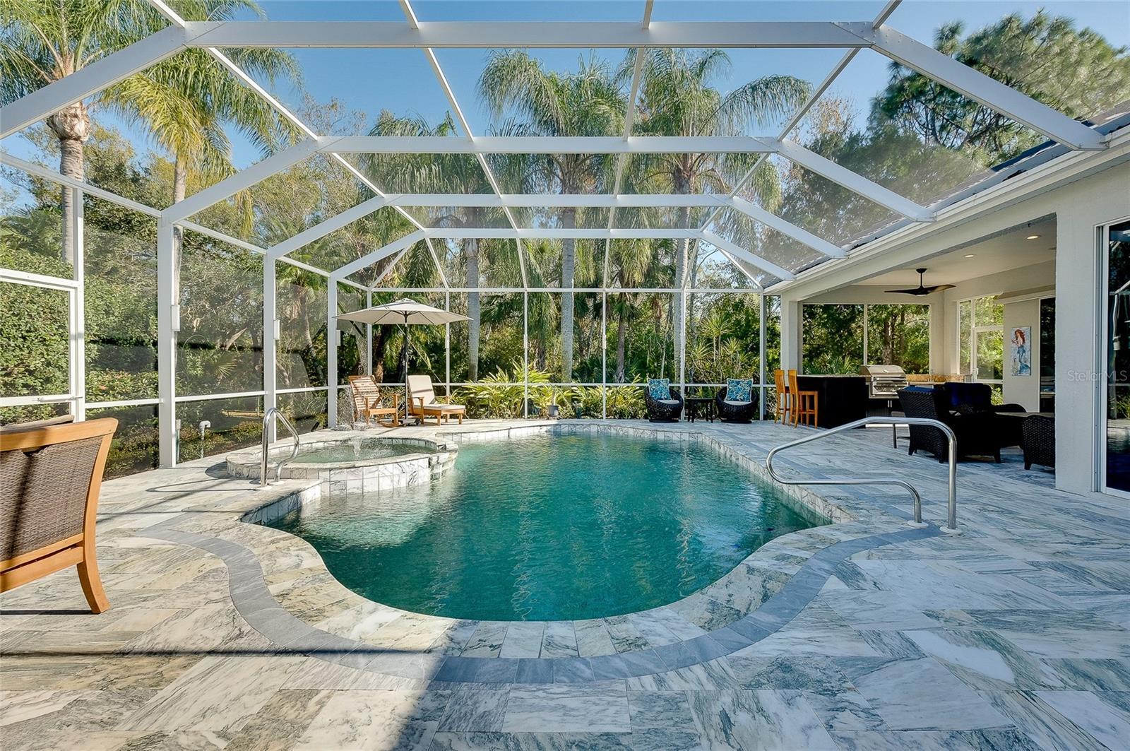 Under contract-accepting backup offers. Exceptional Opportunity to discover this beautifully upgraded pool home located in the highly sought-after, gated Edgewater community of Lakewood Ranch. From the moment you arrive, the home delivers a true WOW factor, beginning with the impressive double entry featuring stunning iron doors added in 2023. Built by Todd Johnston, this residence offers a spacious split-bedroom floor plan with 3 bedrooms plus a den/office with custom built-ins, 3 bathrooms, and multiple living spaces including a formal living and dining area as well as a family room with an adjacent dinette. The home has been thoughtfully remodeled to complement its exceptionally private preserve-view lot, tucked away on a quiet one-way cul-de-sac. Designed for both comfort and entertaining, the main living areas feature newer luxury vinyl and tile flooring and flow seamlessly through fully pocketing sliding glass doors to the expansive outdoor living space. Enjoy cozy evenings by the gas fireplace, framed by quadruple sliding doors overlooking the impeccably landscaped backyard and serene preserve views. The gourmet kitchen is a chef’s delight, showcasing granite countertops, rich wood cabinetry, and stainless steel appliances, including a Wolf gas range and double oven. The spacious primary suite offers a tranquil retreat with a bay window overlooking the preserve, two walk-in closets, dual vanities, a soaking tub, a separate shower, and a private water closet. The secondary bedrooms, additional bathrooms, and den are thoughtfully positioned on the opposite side of the home for privacy. Elegant plantation shutters are featured throughout the home, adding timeless style and functionality. The expansive outdoor living area serves as the true centerpiece of the home, thoughtfully designed to accommodate large gatherings of 25+ guests with ease and enhanced by recently added leathered marble flooring, lanai cage lighting, a fully equipped outdoor kitchen with granite countertops, gas grill and burner, sink, and refrigerator, along with an outdoor shower, large pool, and spa. One of the guest bathrooms conveniently serves as both an en-suite and a pool bath. Major upgrades have already been completed, including a new roof (2022), new A/C system (2022), new water heater (2025), pool heater (2024), and washer/dryer (2023), and all newer hurricane impact windows, offering peace of mind for years to come. First impressions truly matter, and this home delivers exceptional curb appeal. Recent exterior upgrades include a refreshed landscaping package, elegant driveway pavers, updated exterior (and interior) paint, and new gutters—all completed within the past couple years. This home is also high and dry, being built higher than others in the area. Edgewater Village boasts a prime Lakewood Ranch location near University Parkway and Waterside, with very low HOA dues that even include kayak AND canoe storage at Lake Uihlein—perfect for leisurely paddles to Lakewood Ranch Main Street. With easy access to world-famous Florida beaches, exceptional shopping and dining, and multiple major airports, this home offers the ultimate Florida lifestyle. Don’t miss your opportunity to make this extraordinary property your private paradise.