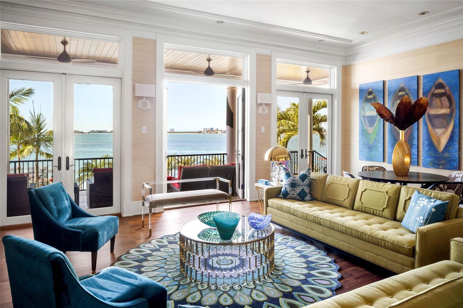 Set within the prestigious Harbor Acres neighborhood—one of Sarasota’s most sought-after waterfront enclaves, this stunningly renovated gated estate occupies an exceptional lot on the Hillview Point with 171 feet of Sarasota Bay frontage and sweeping, unobstructed panoramic views. This magnificent two-story residence, designed by renowned architect Cliff Sholz, offers six bedrooms, seven full baths, and two half baths, complemented by an oversized three-car garage—providing a seamless blend of architectural grandeur and everyday livability. A dramatic two-story foyer welcomes you inside, where expansive west-facing walls of glass capture breathtaking water vistas and bathe the home in natural light. The main level is thoughtfully designed for both refined entertaining and comfortable living, featuring a waterfront living room, an inviting family room, and an elegant dining room. At the heart of the home, the gourmet kitchen showcases authentic zebrawood cabinetry celebrated for its exotic grain patterns and rich natural character, paired with Quartz countertops, a generous center island, premium appliances, and a breakfast area with a dedicated coffee bar—perfectly suited for intimate mornings or hosting on a grand scale. Additional highlights include a private library, executive office, a full-service bar, and secondary laundry room. The owner’s suite is a serene waterfront sanctuary, offering tranquil Sarasota Bay views, dual spa-inspired bathrooms, three walk-in closets, and a private laundry—creating a truly elevated retreat experience. Ascend the sweeping staircase or take the private elevator to the second level, where five beautifully appointed guest suites provide exceptional comfort and privacy. Two of these suites, along with the upstairs library, enjoy coveted waterfront positioning and direct access to a spectacular 35-foot terrace overlooking Sarasota Bay—an ideal setting for morning coffee, sunset cocktails, or quiet moments of reflection. An additional laundry room on this level adds to the home’s thoughtful functionality. Outdoor living is equally impressive. Host unforgettable gatherings on the expansive 76-foot elevated terrace with summer kitchen or unwind poolside at the resort-style terrace featuring a 55-foot heated pool and generous lounging areas. For boating enthusiasts, private dockage delivers effortless access to Sarasota Bay and the open waters beyond. This extraordinary waterfront estate embodies the very essence of Sarasota luxury—where timeless design, exceptional craftsmanship, and unparalleled coastal views come together in a truly rare offering.