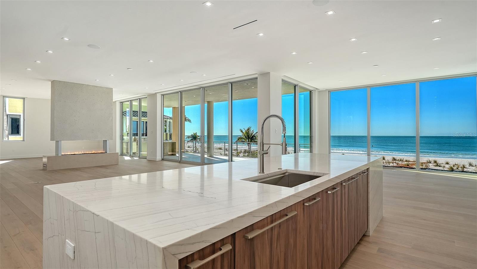 This Seaward Homes Curated Collection residence at 6489 Gulfside is ready for occupancy. Enjoy the ultimate Longboat Key lifestyle with your own direct Gulf-front private access and stunning views of the Gulf of Mexico. Designed by DSDG Architects, this home epitomizes exceptional quality and attention to detail. Situated on a coveted 90' Gulf/Beach-front lot, the property offers soft sands, endless Gulf views, and miles of walkability. In 2025, Longboat Key completed a significant beach re-nourishment project, giving Gulfside Road homeowners one of the widest and deepest stretches of beach on the entire island. Equally notable, Gulfside Road is one of the rare Gulf-side streets set back from the main highway, offering a tranquil, private environment that feels worlds away from the activity of Gulf of Mexico Drive. The main house, elevated over 15 feet, features 11' ceilings, four oversized en-suite bedrooms, and more than 6,600 sq ft of air-conditioned living space, including a grade-level, air-conditioned multipurpose room that can be tailored for wellness, fitness, or a variety of additional lifestyle needs. The wide-open floor plan, generous room sizes, and large impact-rated safety glass sliding doors and windows fill the home with natural light. Two nearly 40' terraces on the main and second floors provide ideal spaces to enjoy the outdoor island lifestyle and breathtaking Gulf views. Interior finishes by Studio G Homes elevate luxury living to the next level. The interior finishes include large-format porcelain tile and hardwood flooring, Italian-imported cabinetry, a custom floating steel-and-wood staircase, a three-stop elevator, 8' solid interior doors, high-efficiency mechanical systems, a top-of-the-line Thermador™ appliance package, AXOR™ and Hansgrohe™ plumbing fixtures, temperature-controlled wine storage, and detailed AV, lighting control, and security systems. Exterior features include solid concrete and masonry construction on all floors, a deep concrete piling foundation for added strength, Longboard™ premium aluminum architectural details, and a fine light-sand exterior stucco finish. The resort-like pool area and custom spa are surrounded by a lush tropical landscape package. The garage accommodates four cars, with the option to add car lifts. Longboat Key, an 11-mile barrier island, is just minutes from St. Armands Circle and downtown Sarasota. The Sarasota Bradenton International Airport is approximately 25 minutes away. Embrace the opportunity to own this unparalleled residence and experience the pinnacle of coastal luxury living.