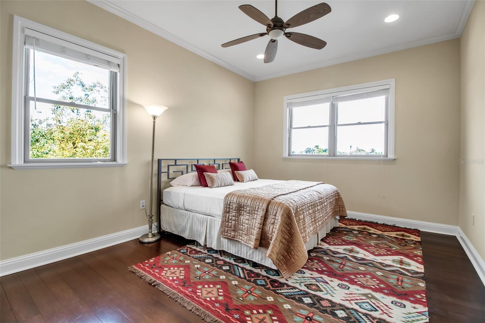 One or more photo(s) has been virtually staged. Step into a private, gated waterfront estate in Sarasota offering deep-water boating access, refined coastal architecture, and an unsurpassed location just minutes to Siesta Key Beach, Southside Village, and downtown Sarasota. Located in the coveted San Remo Estates community, this exceptional residence blends timeless elegance with modern functionality—perfect for buyers searching for a luxury Sarasota waterfront home with privacy and proximity to the city’s best dining, shopping, and beaches. Designed by renowned architect Walter Hamm and built by Bill McGinness, the home is engineered for lasting stability with construction supported by 54 concrete pilings, a powerful value point for buyers seeking a well-built coastal property. Set on a sprawling private lot with mature landscaping and serene surroundings, the home captures panoramic water views and features a protected deep-water harbor, ideal for boaters who want quick access to Sarasota Bay and Gulf. Inside, the home showcases a bright, open layout filled with natural light, elevated by custom millwork, coffered ceilings, rich wood flooring, and polished travertine. The gourmet kitchen is designed for both entertaining and everyday living, featuring an oversized center island, quartz countertops, premium wood cabinetry, granite perimeter counters, subway tile backsplash, and stainless-steel appliances, along with an inviting breakfast nook that overlooks the water. The adjacent family room creates a warm gathering space, while the formal dining room is ideal for hosting. A private office provides a quiet, dedicated workspace, ideal for today’s lifestyle. The primary suite on the main level is a true waterfront retreat with oversized windows framing tranquil views, two custom walk-in closets, and a spa-style bath with a floating vanity, illuminated mirrors, a freestanding soaking tub, and an oversized walk-in shower. Upstairs, the second level is designed for comfort and entertaining with three generous bedroom suites, a TV/game room, a convenient kitchenette, and a terrace that overlooks the pool and peaceful waterscape, perfect for guests, multi-generational living, or extended stays. Outdoor living is equally impressive, featuring an expansive travertine pool deck, a heated pool and spa, a fenced and spacious yard, and lush tropical landscaping that creates a resort-style environment with exceptional privacy. Andersen sliding doors and windows enhance the indoor-outdoor connection and raise the overall quality of the home. A comprehensive renovation completed in 2015 elevated the interiors with sophisticated, updated finishes, while key improvements include a new roof (2020) and updated AC systems (2023 & 2024). Additional features include an ADT security system, generous storage, abundant closet space, a large laundry room, provisions for an elevator, and an oversized three-car garage. Sought-after San Remo Estates is positioned at the heart of Sarasota, just before the north bridge to Siesta Key, making it one of the most desirable locations for those wanting a Sarasota luxury waterfront home with both convenience and privacy. This exceptional coastal estate delivers the ultimate Florida lifestyle: deep-water boating, serene water views, and effortless access to Sarasota’s beaches, culture, and world-class amenities.