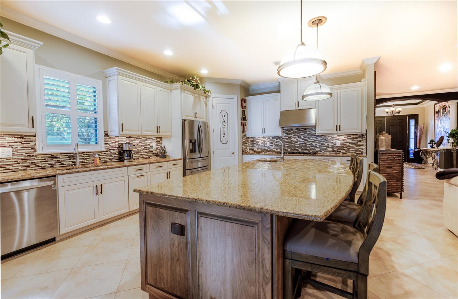 Florida Living at Its Finest: A Pallazio Estate That Redefines Luxury! Ever imagined a home where resort-style amenities, cutting-edge systems, and stunning design come together flawlessly? This Pallazio estate by Taylor Morrison, privately situated on a cul-de-sac with an oversized homesite in Artisan Lakes Esplanade, delivers exactly that- and more. Inside, every detail has been thoughtfully curated. Coffered and tray ceilings with accent beams, crown molding, plantation shutters, and custom closets throughout create a timeless, modern aesthetic. The renovated kitchen (2025) boasts refined cabinetry, premium finishes, and a clean palette, perfect for elegant entertaining or everyday living. Custom office cabinets, installed fans, and a whole-home sound system ensure comfort, convenience, and style throughout. State-of-the-art systems keep you secure and comfortable year-round: ADT security and cameras, whole-house generator, 5-ton 19 SEER Rheem heat pump A/C (2025), hurricane-impact windows, hurricane screens in the lanai, whole-house water softener, and a pest defense system. Every upgrade has been intentionally selected to support peace of mind and effortless living. The 2-car garage featuring tandem parking is a showpiece with epoxy flooring, 44' of racking- perfect for luxury vehicles, storage, or a personal workspace. Step outside to your private Florida retreat. The Pebble Tec pool with a heat pump, cedar wood lanai ceiling, and professionally installed landscape and pool cage lighting set the stage for breathtaking evenings. Entertain in the high-end summer kitchen with premium appliances and custom cabinetry, or enjoy the installed outdoor speakers while soaking in your resort-style oasis. Every element of this outdoor space- from lighting to finishes- was carefully crafted for entertainment, relaxation, and style. Additional premium upgrades include: accent beams in the main living area and primary bedroom, plantation shutters, custom closets, interior and exterior painting (2022), installed gutters, new interior light fixtures, whole-house generator, and more- ensuring this home is truly turnkey. Furnishings are negotiable. Living in Artisan Lakes Esplanade means enjoying two private clubhouses, resort-style pools and spas, a fitness center, pickleball courts, scenic walking trails, and a vibrant social calendar, all just minutes from Gulf Coast beaches, dining, and travel corridors. This is more than a home- it's a statement of refined living, privacy, and elevated lifestyle. Every corner, every upgrade, and every detail has been intentionally designed to deliver a home that wows- inside and out. Welcome to your ultimate Florida retreat.