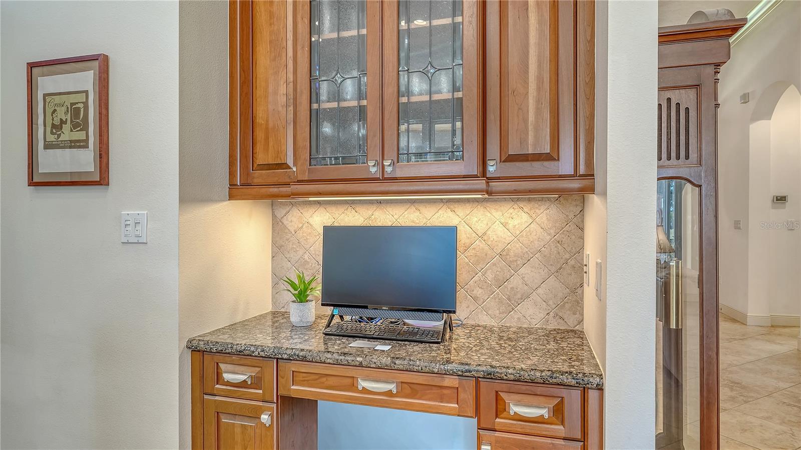 - Built-in Features, Ceiling Fans(s), Crown Molding, Dry Bar, Eat-in Kitchen, High Ceilings, In Wall Pest System, Kitchen/Family Room Combo, Open Floorplan, Primary Bedroom Main Floor, Split Bedroom, Stone Counters, Tray Ceiling(s), Walk-In Closet(s)