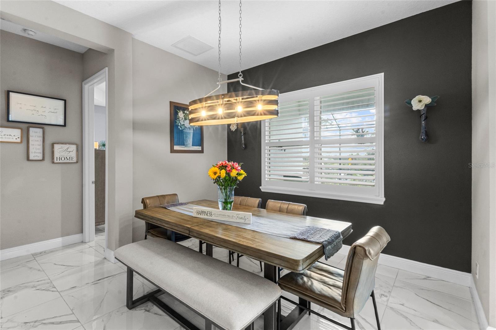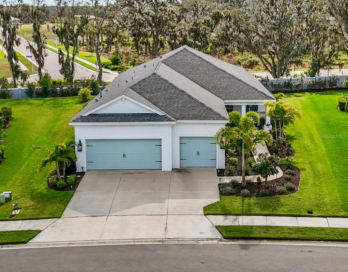 This is the kind of home that instantly feels like a deep exhale at the end of a long day. Built in 2021 by Neal Communities, this Bright Meadow floor plan blends modern design with relaxed Florida living, all set on an oversized lot with fresh front and rear landscaping and gorgeous sunset views behind the home. Thoughtfully upgraded and meticulously maintained, this home offers the ease of move-in-ready living — with features that often take months (and significant cost) to add after new construction. Inside, you’re greeted by light, space, and an effortless flow — a large open-concept living, kitchen, and dining area designed for both everyday comfort and easy entertaining. Tray ceilings in the living room and primary bedroom add just the right touch of elegance without feeling formal. The kitchen is designed for both beauty and function, featuring quartz countertops, a large center island, gas cooking, an Italian marble backsplash, and a walk-in pantry that keeps the space clutter-free. Tile floors run throughout the home (no carpet), creating a clean, low-maintenance feel. Louvered shutters in the living room, dining room, and office/den add character and charm. The primary suite offers a peaceful escape with two walk-in closets and a spacious ensuite bath featuring dual sinks, a large walk-in shower, and a private water closet. The split bedroom layout includes two additional bedrooms, each with its own walk-in closet. Step outside and discover the centerpiece of this retreat — a new 12x24 heated saltwater pool, complete with a sun shelf, lighted bubbler, fountain, and brand-new paver decking, all enclosed within a screened lanai. The newly added pitch apple bushes around the pool cage add to the beauty, creating an ideal setting for weekend lounging or sunset swims. Beyond the home, the community delivers a true resort lifestyle with a pool and spa, fitness center, clubhouse, pickleball courts, dog park, scenic walking trails, and an on-site lifestyle coordinator who keeps the calendar full — from holiday decorating contests to food trucks every Thursday evening. Best of all, this home is located in a no-CDD community, offering long-term savings compared to many of the surrounding communities. This isn’t just a house. It’s where mornings start quietly, evenings end with stunning, color-filled sunset skies, and weekends feel like a vacation at home.