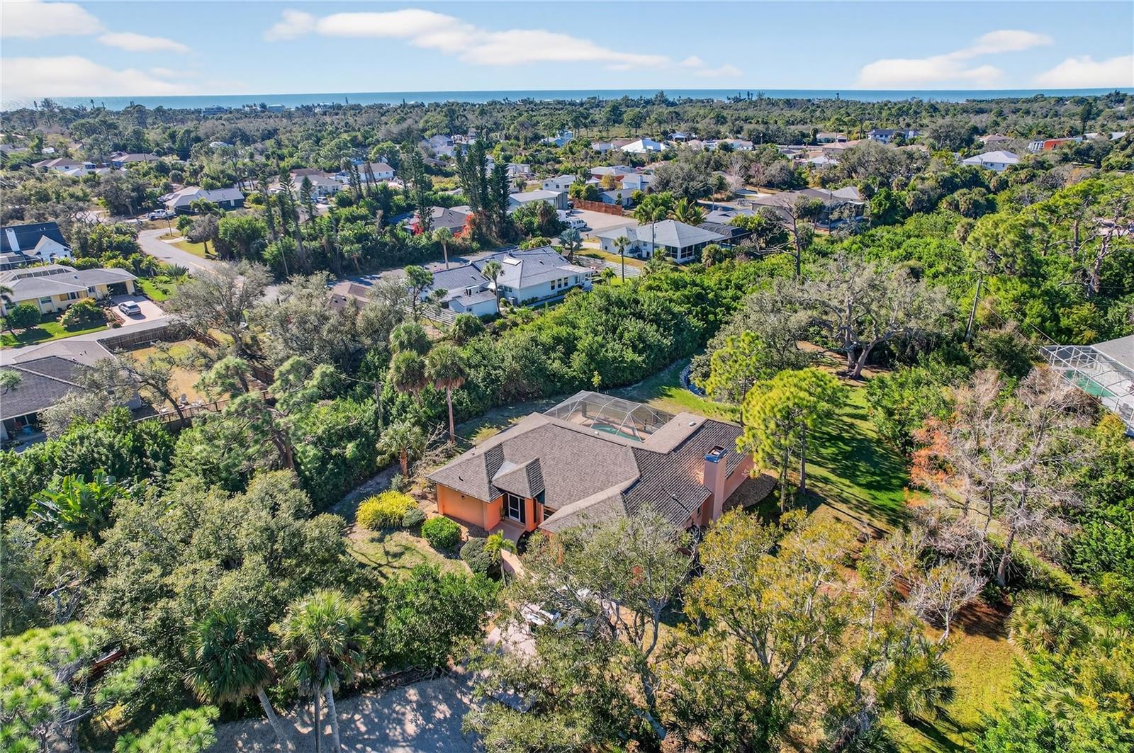 Discover the perfect blend of privacy, space, and opportunity on this beautifully wooded 3.14-acre estate just minutes from the heart of Venice and less than two miles to the beach. Tucked behind a gated entrance, this serene country retreat offers over 2,000 square feet of comfortable living with three bedrooms and two bathrooms, thoughtfully designed for both everyday living and entertaining. Inside, enjoy the warmth and charm of a wood-burning fireplace, while multiple sliding glass doors throughout the home open directly to the heated pool, creating a true indoor-outdoor lifestyle. Surrounded by mature trees and natural beauty, the property features a peaceful pond, providing a tranquil backdrop for relaxation and outdoor living. The home has been built up higher for added peace of mind regarding flooding, has hurricane shutters on the screened in lanai and is zoned to allow for subdividing, offering exceptional flexibility for a multi-home compound, future investment, or long-term planning. Major updates include a 2018 roof with transferrable warranty, 2025 air conditioning system, and 2024 hot water heater, delivering confidence and reduced maintenance. With well and septic in place, this private oasis offers the freedom of country living without sacrificing proximity to shopping, dining, and the Gulf beaches nearby. A rare opportunity to own a gated acreage property where privacy, lifestyle, and long-term potential come together—just minutes from Venice and the gulf coast.