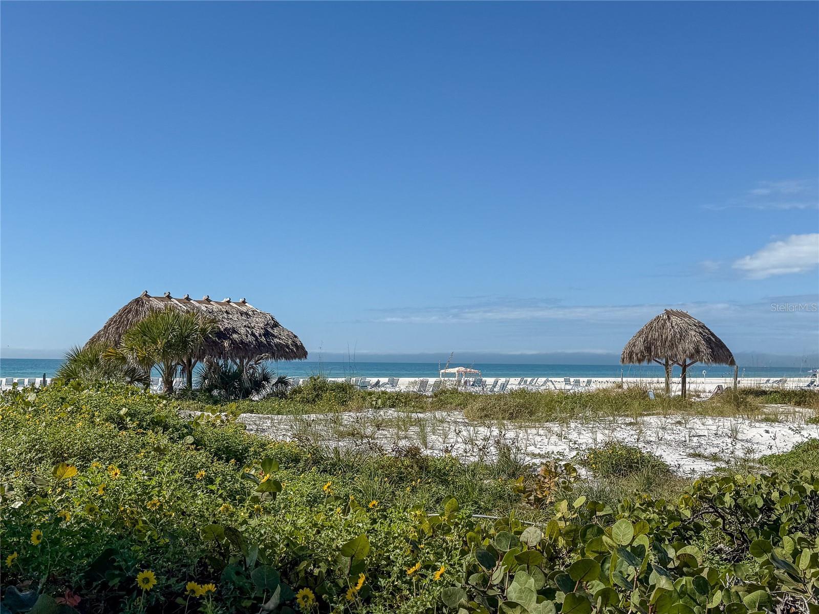 Rare opportunity to own one of the most resilient and desirable residences on Siesta Key! This 2-bedroom, 2-bath condominium offers 1,163 square feet of living space (1,462 gross square feet) and is ideally positioned on the west side of the building on an elevated first floor, approximately 15 feet above sea level. It is also the closest high-rise condominium to the beach, offering exceptional proximity to the Gulf. One of only six residences in the building with an expansive deck, this sought-after middle-unit location provides a truly rare outdoor living experience. The oversized deck offers ample space for dining, entertaining, or simply relaxing while enjoying coastal breezes and sunsets. The residence has demonstrated remarkable storm resilience, sustaining no damage through three major hurricanes. This is attributed to its elevated positioning, protected west-side exposure, and six hurricane-rated doors installed in 2021. Recent interior upgrades enhance both style and comfort, including luxury vinyl flooring and freshly painted walls completed in 2025. The refrigerator, washer, dryer, and garbage disposal were also replaced in 2025. A dedicated parking space conveys with the unit. Owned by the same family since 1976, the home reflects decades of pride of ownership and thoughtful care. The community features two pools and two clubhouses on both the Gulfside and Bayside, along with a Gulfside fitness center. A well-managed rental program offers flexibility for owners while preserving a relaxed residential atmosphere. Located in one of Florida’s most coveted coastal settings, this exceptional residence offers a rare blend of scarcity, storm resilience, expansive outdoor living, and resort-style amenities—making it an outstanding lifestyle choice and investment opportunity.