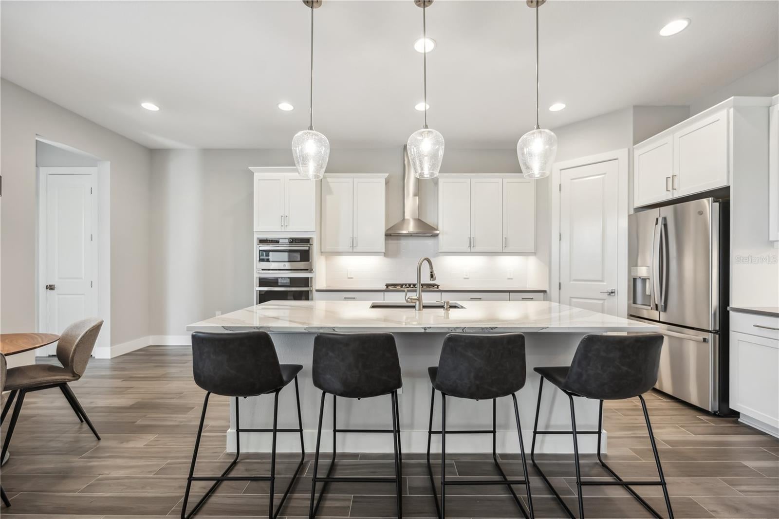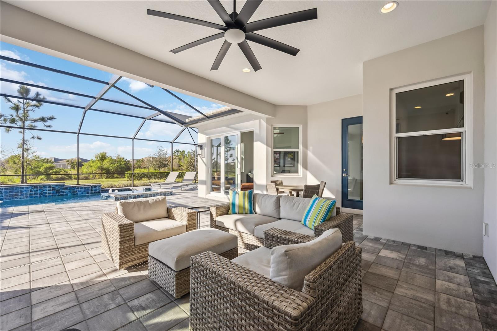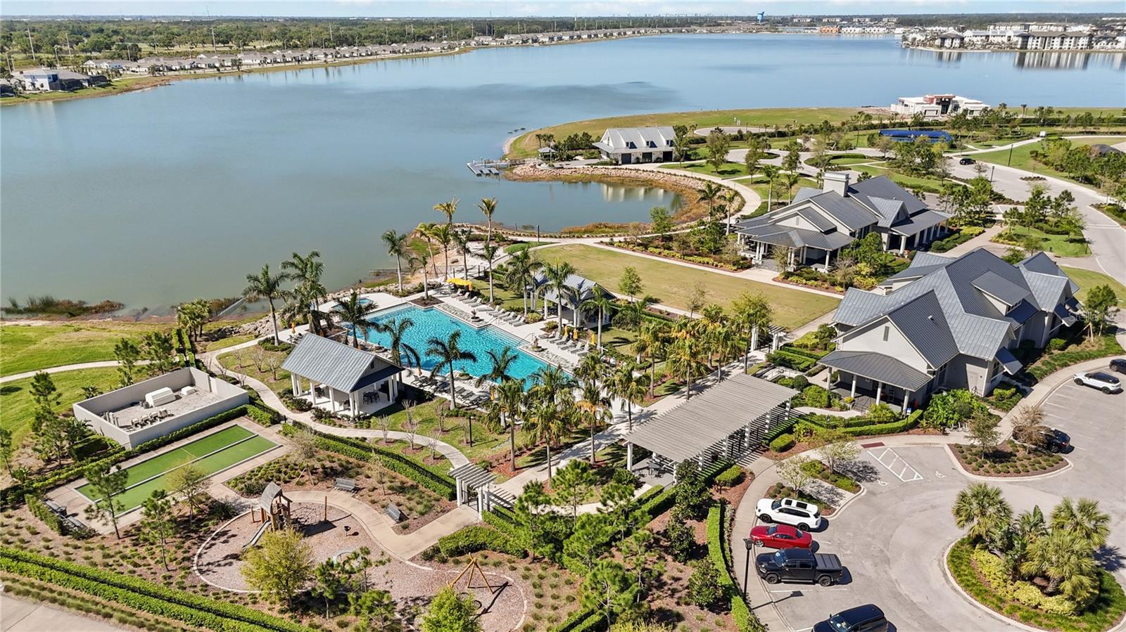Welcome to Lakehouse Cove, where lakeside living meets resort-style amenities in the heart of Waterside. This thoughtfully designed single-story Homes by Towne built Capstan floor plan has been expanded to include an optional study/flex space, complementing its 3 bedrooms, 2.5 baths, and versatile media room/den. From the moment you enter, you’ll be wowed by the expansive layout, featuring views of the pool and outdoor living space, along with soaring tray ceilings with recessed lighting. At the front of the residence, you’ll find two bedrooms and a full bath, creating a private guest retreat for visitors or family, thoughtfully separated from the primary living areas. As you make your way into the primary living space, an expansive great room unfolds, anchored by a formal dining area, a well-appointed kitchen, an inviting kitchen dining space, and a tucked-away den. Outdoor living takes center stage with an expansive space designed for entertaining and everyday enjoyment, complete with an outdoor kitchen, saltwater pool and spa, and inviting areas for morning coffee or evening sunsets. A south-facing lanai brings in beautiful natural light and warmth, enhancing the outdoor living experience from morning through evening. Just steps away inside is the ½ pool bath, conveniently located for easy access from the pool. The private office or flex room at the rear of the home also provides direct access to the pool, making it the perfect workspace with a view. The generously sized primary suite offers a tranquil retreat, with pool views, an expansive walk-in closet with built-ins and split-vanity primary bath. The additional flexible den space can easily serve as a second office, media room, wine room, or creative space—the possibilities are endless. This home is thoughtfully appointed with impact windows and doors throughout, a spacious 3-car garage (perfect for your golf cart!) and smart home features that control interior and exterior lighting, temperature, garage controls and more. A quick golf cart or bike ride away is Waterside Place, with shopping, dining, entertainment and the beloved Sunday’s Farmers Market and Ranch Nite. The community features a state-of-the-art fitness center, clubhouse with a lifestyle director, resort-style pool and spa, multiple pickleball courts, and miles of scenic walking trails for exercise or leisure. Located in South Lakewood Ranch, you'll enjoy easy access to UTC Mall & shopping, as well as Downtown Sarasota and the area's beautiful beaches.