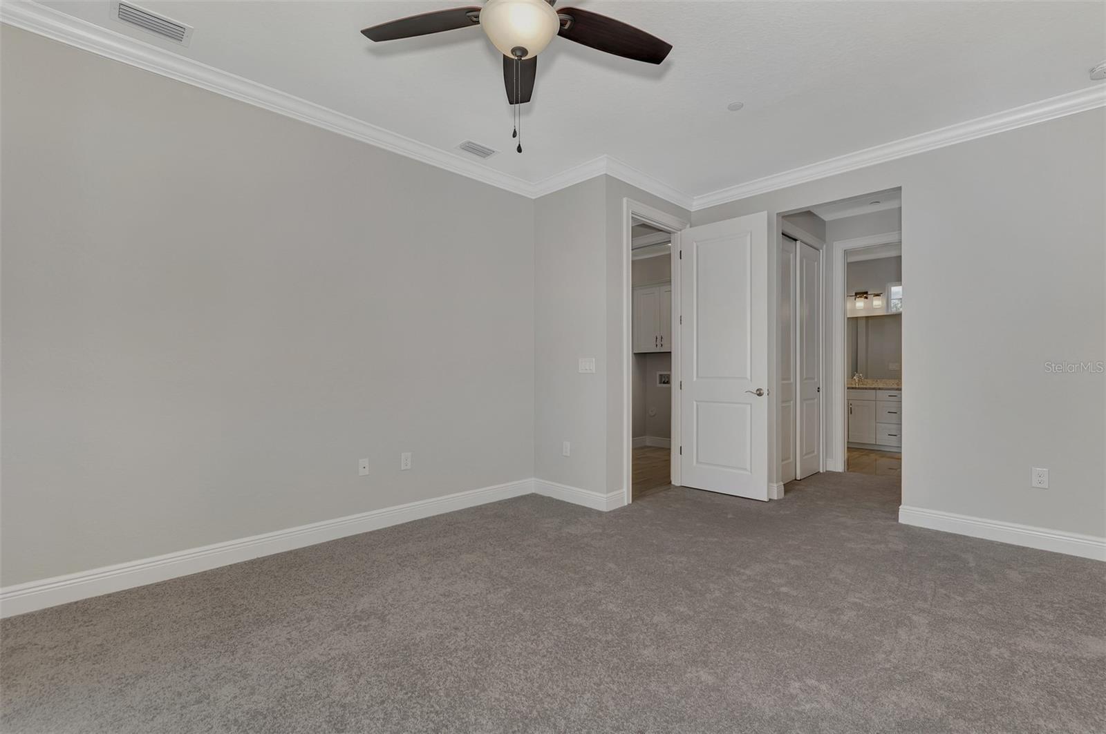 - Ceiling Fans(s), Crown Molding, Kitchen/Family Room Combo, Open Floorplan, Primary Bedroom Main Floor, Solid Wood Cabinets, Stone Counters, Walk-In Closet(s), Window Treatments