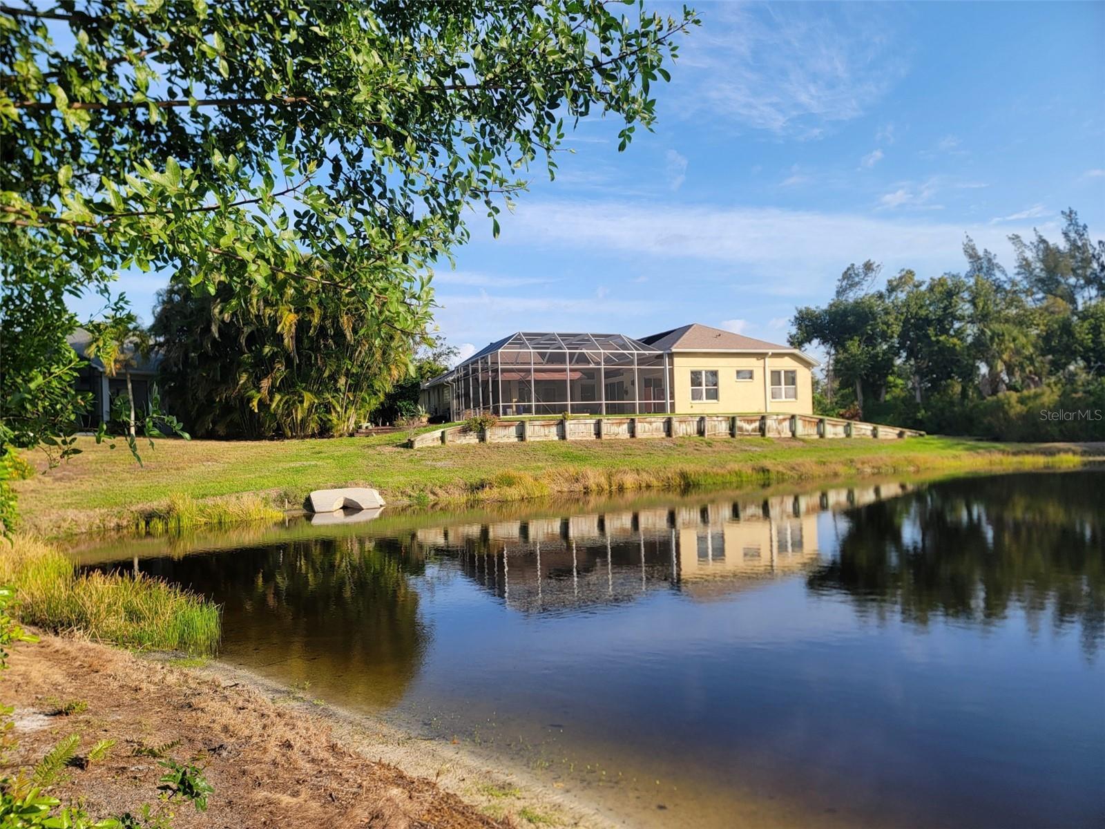 Spacious and beautifully appointed St. Simons floor plan offering 4 bedrooms, 3 bathrooms, plus a dedicated office/den or optional 5th bedroom, with 3,009 sq. ft. of living space and soaring 12-foot ceilings throughout. The inviting living area features a custom mosaic-tiled fireplace with built-in bookshelves, while the formal dining room showcases a tray ceiling and built-in buffet, perfect for entertaining. The remodeled kitchen is a true showstopper, highlighted by a striking coffered ceiling and quartz countertops, complemented by updated bathrooms throughout the home. Outdoor living is exceptional with a resurfaced pool and spa, surrounded by travertine pavers, a fully equipped outdoor kitchen, outdoor shower, and a very private backyard overlooking a spectacular pond—the perfect setting for enjoying breathtaking sunsets. Situated on a quiet cul-de-sac street with north-facing front exposure in the desirable Woodlands Park community, this home is conveniently located near Robinson Preserve, Geraldson’s Farm Market, De Soto National Memorial, the Botanical Gardens, and the pristine sandy beaches of Anna Maria Island.