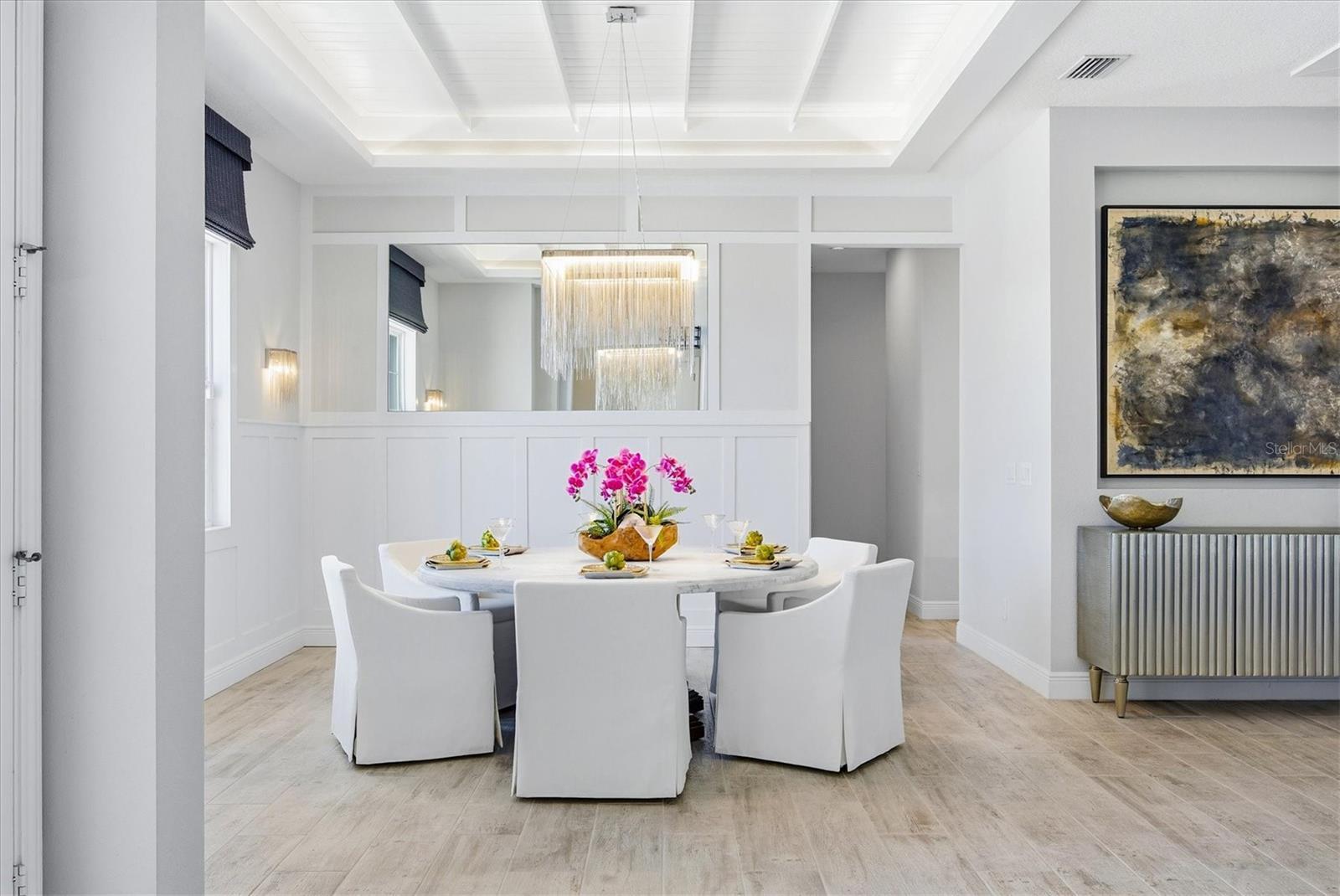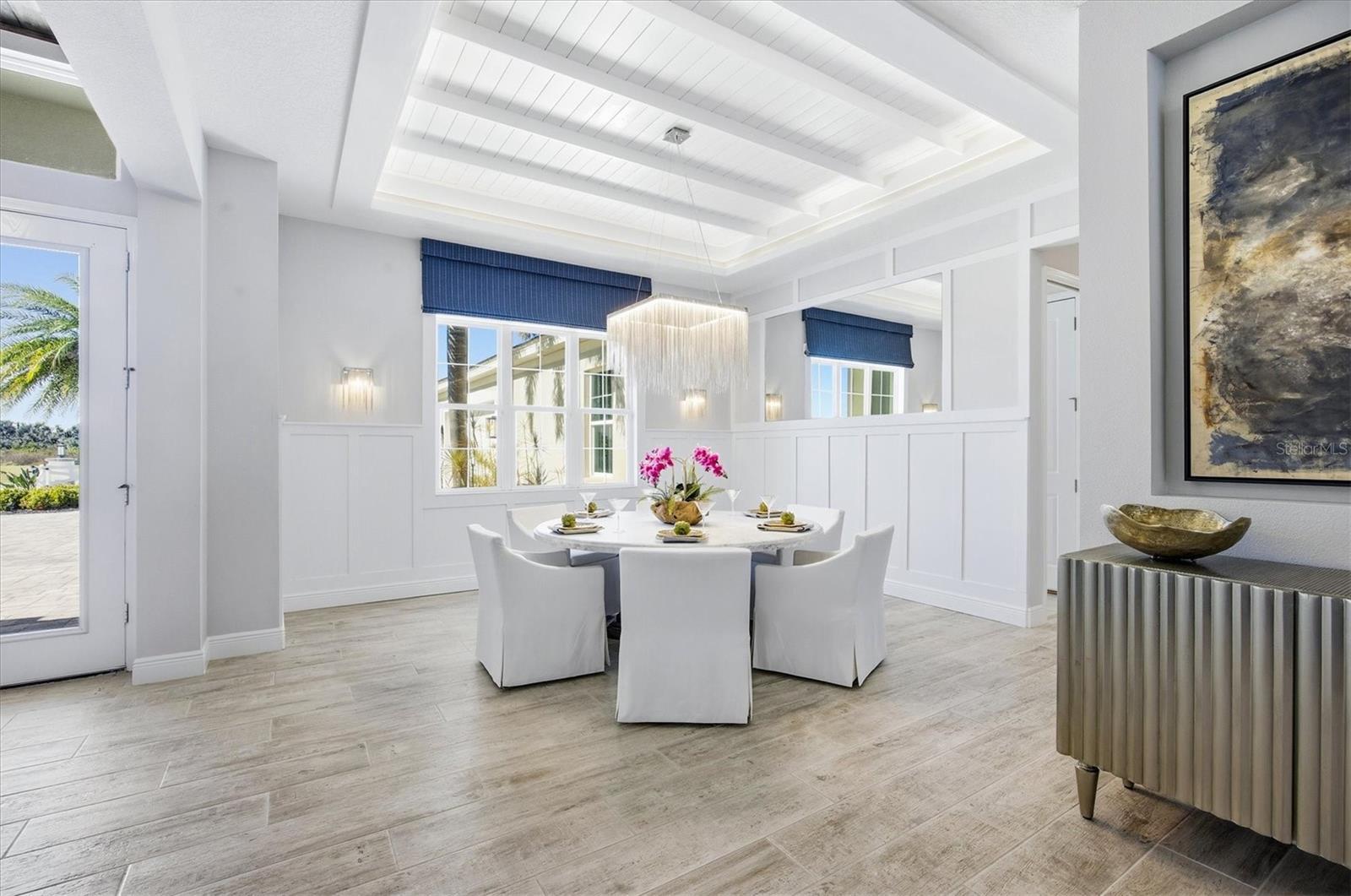 An Irreplaceable Estate Offering Unmatched Value and Distinction...A truly rare opportunity, this exceptional coastal-inspired estate—complete with a substantial detached shop—cannot be replicated at this price point. Built by Medallion Home in 2019 and set within the desirable Hampton Lakes subdivision, the residence is a masterful expression of refined luxury, craftsmanship, and serene country elegance. Spanning more than 3,400 square feet, the main residence is gracefully positioned on just over 3.5 acres, surrounded by sweeping pastoral views that create a sense of privacy and tranquility rarely found so close to modern conveniences. From the moment you arrive, the pavered drive and striking double glass-door entry set the tone for the sophistication within. The interior is rich in architectural detail, featuring custom ceilings, bespoke woodwork, coffered and tray ceilings, and wide-plank blonde beachwood-style tile flooring throughout. Sunlight pours into the home, illuminating thoughtfully designed spaces where modern elegance meets relaxed coastal charm. The chef’s kitchen is both stunning and functional, offering a generous island, expansive breakfast bar, stainless steel appliances, double ovens, and a vented hood, all designed for effortless entertaining. Adjacent to the kitchen, the dining nook is framed by an aquarium-style glass window overlooking the screened pool, crowned by a striking beachgrass chandelier that adds warmth and character. Multiple living and dining areas provide versatility for both intimate gatherings and grand entertaining. A spacious bonus room with tray ceilings and corner sliding glass doors opens directly to the pool, seamlessly blending indoor and outdoor living. The formal dining room is enhanced with refined coastal detailing, ideal for elegant evenings at home. The primary suite is a private retreat, highlighted by wood beam accents, shiplap, and board-and-batten design elements. The spa-inspired ensuite features dual vanities, a luxurious walk-in shower, and premium finishes, while the custom walk-in closet offers exceptional storage and organization. Two additional guest bedrooms, a butler’s pantry, and a show-stopping oversized laundry room—with abundant cabinetry, folding space, and a dedicated work desk—further elevate the home’s functionality. Outdoors, the screened swimming pool is surrounded by lush tropical landscaping, offering a secluded oasis complete with a sun shelf, water features, and LED lighting. Covered lounging and expansive entertaining areas provide the perfect backdrop for alfresco dining and relaxed coastal living. Completing this extraordinary property is a 2,400-square-foot detached garage and shop, featuring decorative epoxy flooring, six electric garage doors with 10-foot openings, and generous space for vehicles, hobbies, or storage. Just minutes from Lakewood Ranch Main Street, downtown Sarasota, and world-renowned Gulf Coast beaches, this remarkable estate delivers an unparalleled blend of privacy, luxury, and convenience. An offering of this caliber is truly exceptional—schedule your private showing and experience the lifestyle that awaits.