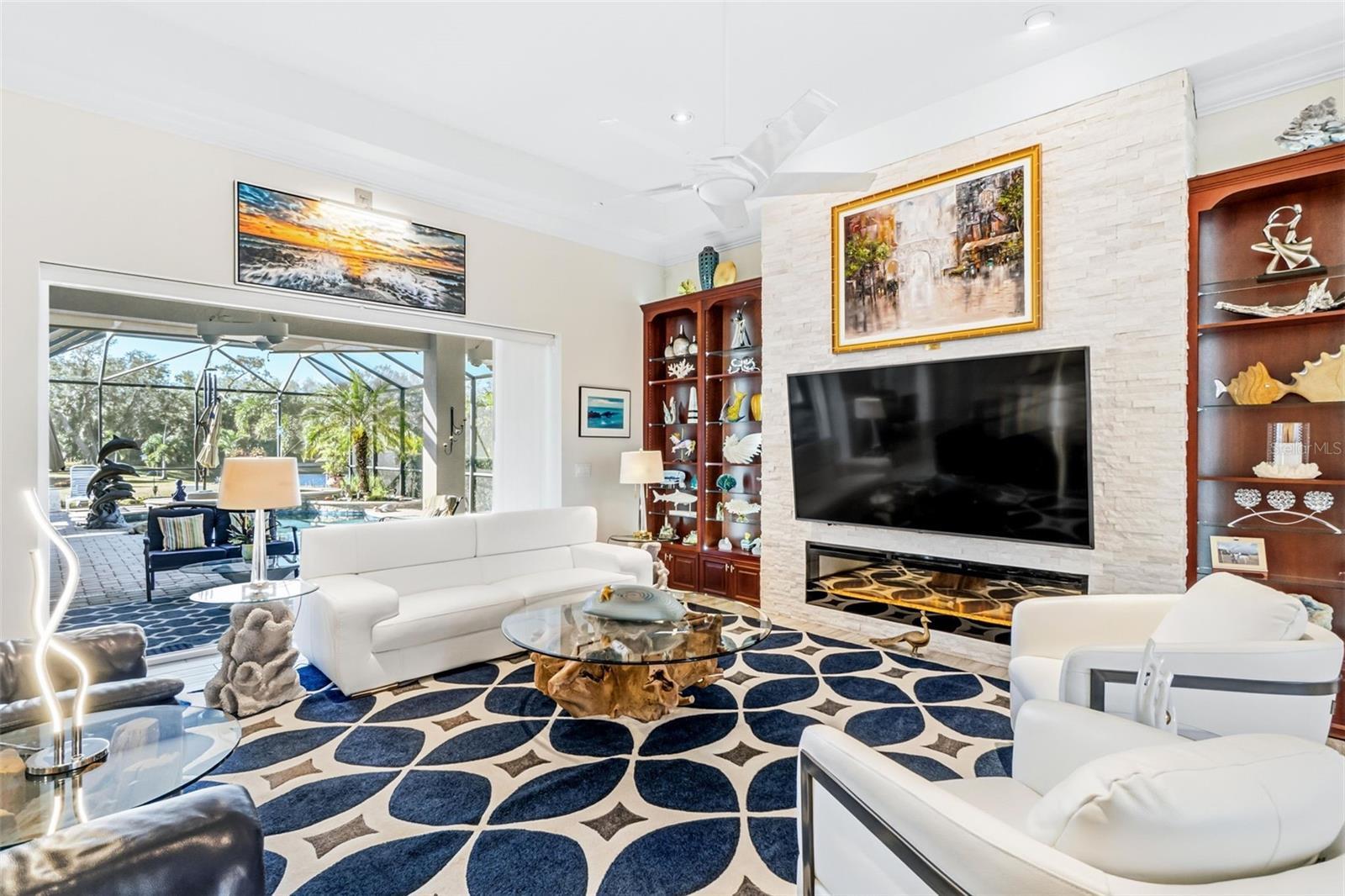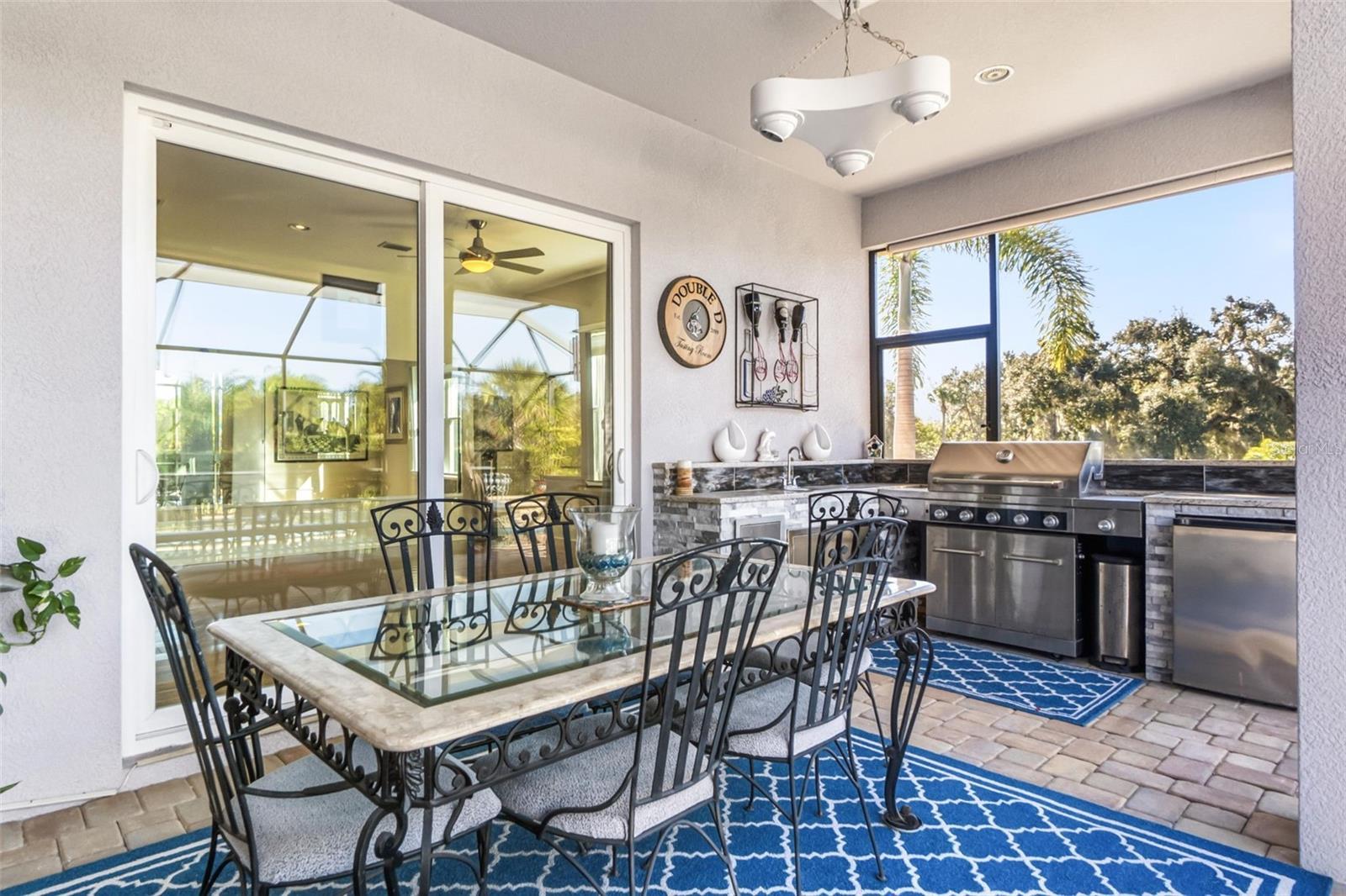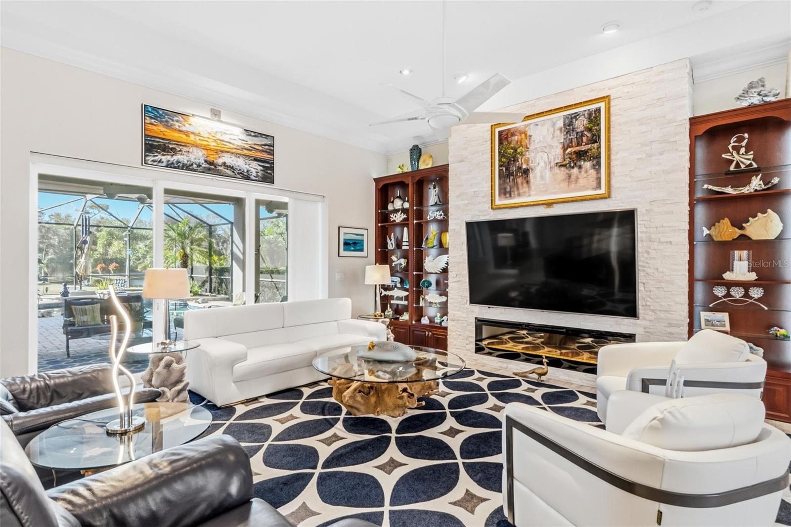 Set on a rare 40,000-square-foot estate-sized lot in the coveted Winding River community of Bradenton, this custom-built residence delivers privacy, elegance, and resort-style living at its finest. Built by Bruce Williams in 2017, the 3,402-square-foot single-family home offers three bedrooms, two and a half baths, along with a separate dining room and a dedicated office/study, ideal for today’s flexible lifestyle. The generously sized bonus room (14x36) is complete with a wood floating floor and flows seamlessly off the main living area. Designed for seamless indoor-outdoor living, the home features expansive covered living space with pocketing doors that open to a spectacular outdoor retreat. Enjoy resort-style amenities including a sparkling pool and spa, summer kitchen, covered outdoor dining area, and lush mature landscaping framing long, tranquil lake views—perfect for entertaining or quiet evenings at home. Inside, the open-concept kitchen showcases custom cabinetry, generous workspace, and flows effortlessly into the main living areas. A custom wine bar with three wine refrigerators adds a sophisticated touch for entertaining. The spacious primary suite is a private sanctuary, featuring a large double vanity, walk-in shower, and two walk-in closets. Ideally located just minutes from Lakewood Ranch and University Town Center, this exceptional home offers convenient access to premier shopping, dining, and entertainment, while maintaining the serenity of a private estate setting.