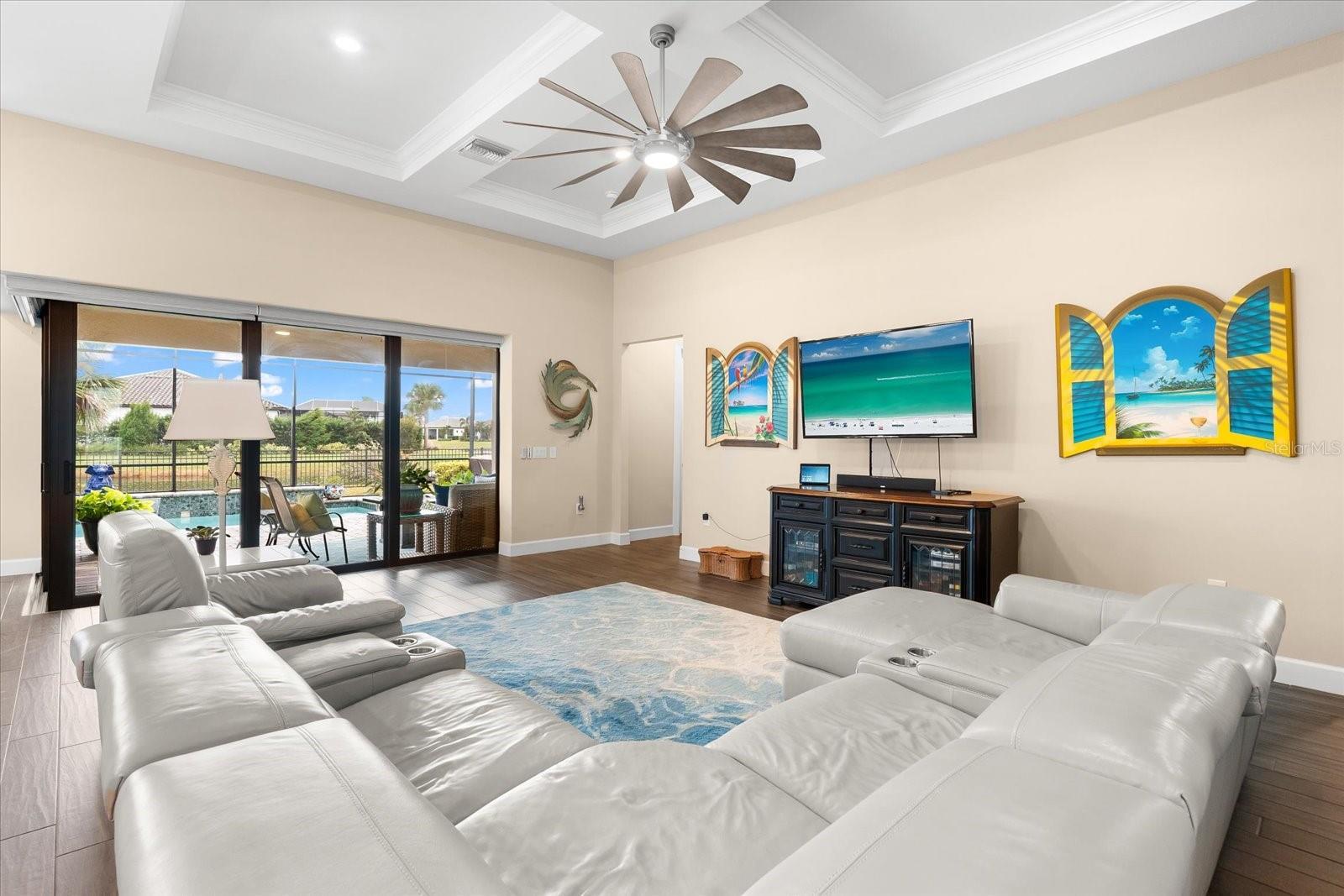 Under contract-accepting backup offers. Welcome to the Pinnacle of Perfection. Prepare to be impressed by this remarkable Pinnacle Model, beautifully positioned on a tranquil water view lot within the highly coveted Del Webb 55+ community in Lakewood Ranch. Designed for refined Florida living, this exceptional residence seamlessly blends classic elegance with modern upgrades, offering both stye and everyday functionality. Featuring 3 bedrooms, 3 bathrooms, a private den, and a thoughtfully crafted open layout, this home is ideal for entertaining guests or enjoying relaxed daily living Designer details abound, including Plantation shutters, a tray ceiling in the owner’s suite, a striking coffered ceiling in the gathering room, and contemporary lighting and ceiling fans throughout. At the heart of the home, the expansive gathering room flows effortlessly into a chef-inspired gourmet kitchen. This show-stopping space highlights a large island with seating for four, stylish pendant lighting,42” cabinetry, quartz countertops, a granite sink, designer backsplash, gas cooktop, and a statement wood hood—perfect for both casual meals and entertaining. Throughout the main living areas, medium-toned plank tile flooring creates warmth and continuity, while plush carpeting in the bedrooms and large- format tile in the owner’s bath add comfort and elegance. Open the zero-corner sliding glass doors to discover an inviting, covered extended lanai---your private outdoor retreat. Enjoy a heated pool with a soothing waterfall, peaceful water views, and a fenced yard ideal for pets, creating the ultimate outdoor lifestyle. The expansive owner’s suite offers a serene escape with space for a sitting area and a spa-like ensuite featuring dual vanities, a spacious walk-in shower, and a custom walk-in closet with drawers, shelving, and abundant hanging space. Two additional guest bedrooms—one with its own ensuite—provide comfort and privacy for visitors. The versatile den easily adapts to your lifestyle, whether as a home office, gym, hobby room, or creative space. This home is loaded with premium upgrades, including a whole-home generator, double-pane windows, 4-foot garage extension with epoxy coated flooring, and convenient attic storage with pull-down access. Opportunities like this are rare. Don’t miss your chance to own this exceptional Pinnacle Model in Del Webb. Schedule your private showing today and experience luxury living at its finest.
