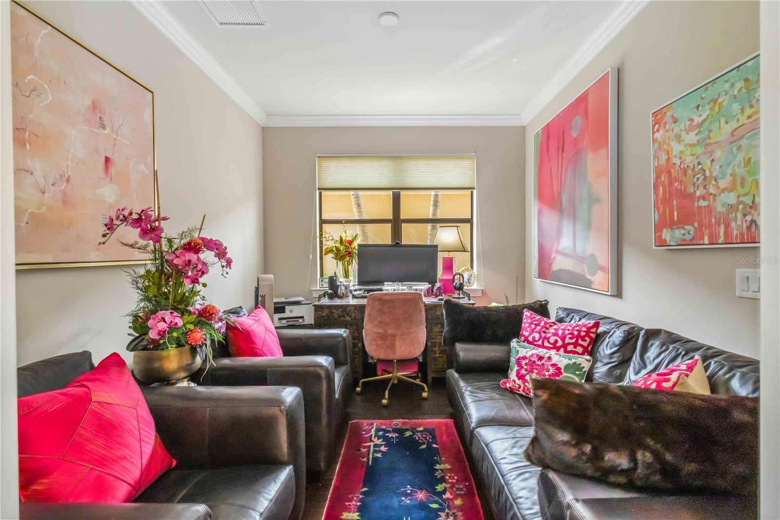 DISCOVER YOUR IDEAL SARASOTA HOME LOCATED IN THE RESORT-STYLE GATED COMMUNITY OF SANDHILL PRESERVE IN PALMER RANCH . . . experience elevated living in this beautifully appointed 2-bedroom, 2 full baths residence with an additional bonus sleeping room. This Mediterranean-inspired Abbeyville model home in Sandhill Preserve features elegant stonework, lush landscaping with a paved driveway leading to a spacious two-car oversized garage. This property sits on a generous lot with beautiful preserve views where every weekend feels like a vacation or opportunity for family dinners, backyard gatherings, or simply relaxing under the Florida sun. Step inside to this open, airy living space that flows easy from room to room with ample natural light. The heart of the home is the gourmet kitchen with a large center island, pendant lighting and a beautiful, detailed backsplash. Other features of the kitchen are the granite countertops, stainless steel appliances and natural gas cooking. Just off the kitchen you’ll love the drop-zone/mudroom entry from the garage and an oversized laundry room with extra storage and pantry space. This feature sets this home apart from a typical 2-bedroom layout. The primary suite is a true retreat overlooking the serene views of the preserves with tray ceiling, large walk-in closet, dual vanity and large walk-in shower. Outside, enjoy year-round comfort on the screened lanai which overlooks large backyard with mature landscaping and preserves with no neighbors behind, just peaceful views. The HOA takes care of the lawn and landscaping. The clubhouse includes exceptional resort-style amenities with a heated pool and spa, fitness center, tennis courts, fire pit, outdoor grills, walking paths all within minutes to Legacy Trail, TPC Prestancia Golf Club, shopping, dining and the world-famous sands of Siesta Key. This home shows like new with a modern kitchen, office or den area, large bathrooms, walk-in closet, mudroom and oversized garage.