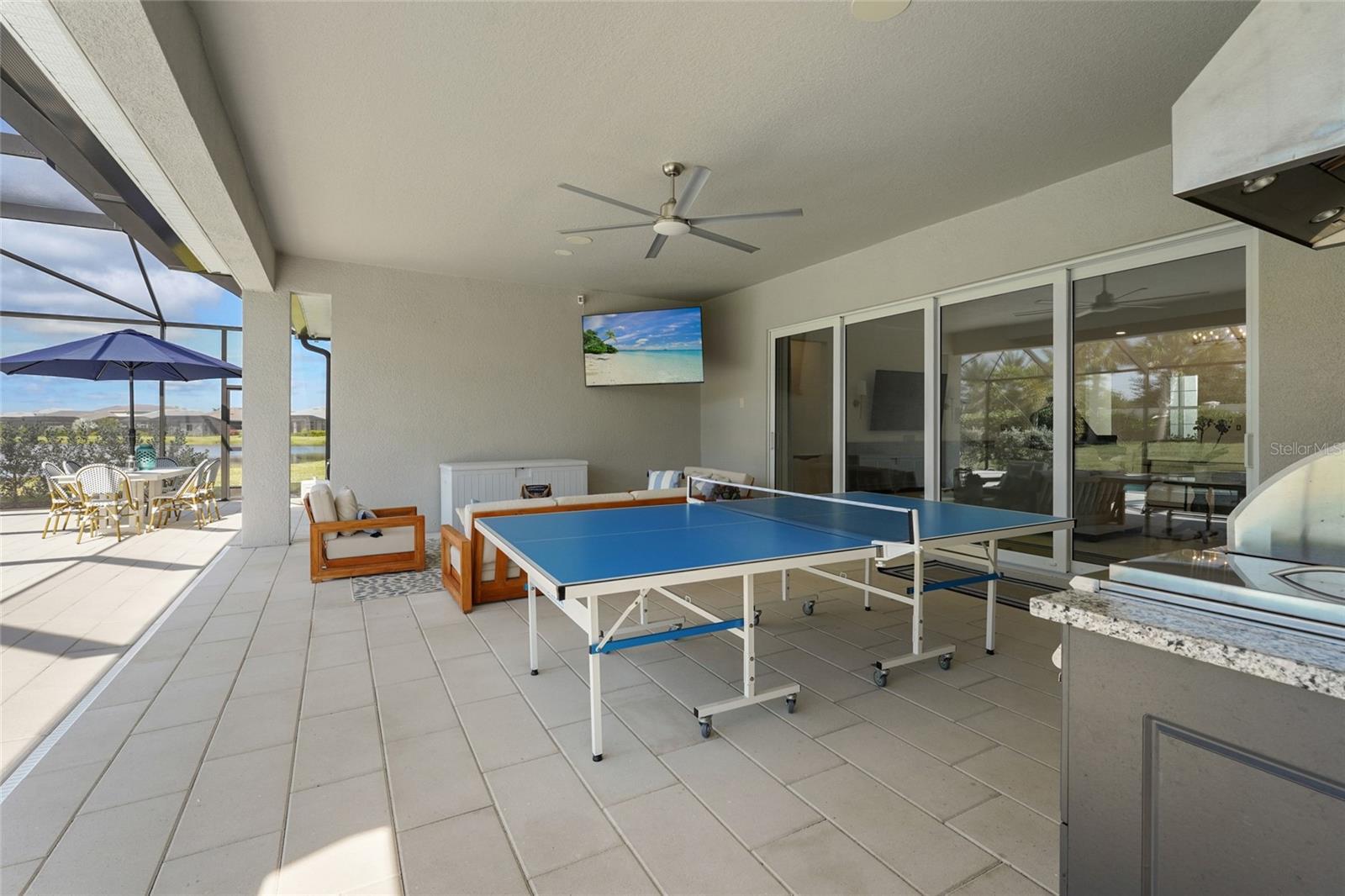 - Lighting, Outdoor Grill, Outdoor Kitchen, Outdoor Shower, Rain Gutters, Sidewalk, Sliding Doors, Sprinkler Metered