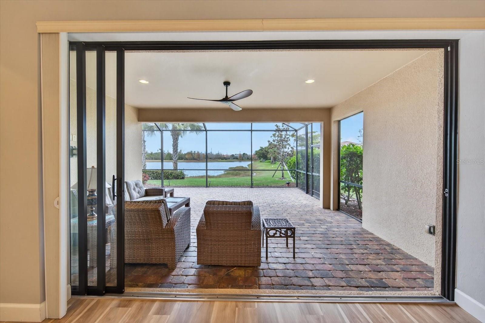 This Perfect Pinnacle home delivers an exceptional blend of luxury, location, and lifestyle. Ideally positioned on a quiet cul-de-sac water lot with desirable north/south exposure, this Smart home offers 2,488 sq ft of thoughtfully designed, open-concept living in the highly sought-after Del Webb 55+ community, located within the nation’s premier multi-generational destination---Lakewood Ranch. From the moment you arrive, the home’s inviting curb appeal sets the tone for the elegance found within. The split floor plan features 3 bedrooms, 3 bathrooms, and a versatile den providing privacy and flexibility for both everyday living and hosting guests. Upgraded luxury vinyl plank flooring flows throughout, complemented by crown molding and 5-inch baseboards that add timeless sophistication. At the heart of the home, the chef’s kitchen shines with a large center island, granite countertops, and KitchenAid stainless steel appliances, including a 5-burner gas cooktop and built-in oven and microwave. The kitchen opens seamlessly to the spacious living and dining areas---perfect for entertaining. Pocket sliding doors extend the living space to an extended lanai, creating a spectacular indoor-outdoor experience with serene water views. The expansive owner’s suite is a true retreat, highlighted by a tray ceiling and accent wall, and a spa-inspired ensuite featuring dual vanities, a large walk-in shower, a generous walk-in closet, and refined finishes throughout. Two additional bedrooms---one with its own ensuite---provide comfortable accommodations for family or guests. The laundry room is thoughtfully designed with wood cabinetry, a utility sink, and abundant counter and storage space. Additional highlights include a whole home generator, 3-car garage with a 4-foot extension, and epoxy-coated garage floors. This exceptional residence seamlessly combines elegance, comfort, and high-end upgrades making it the perfect place to enjoy the Del Webb lifestyle at its finest.