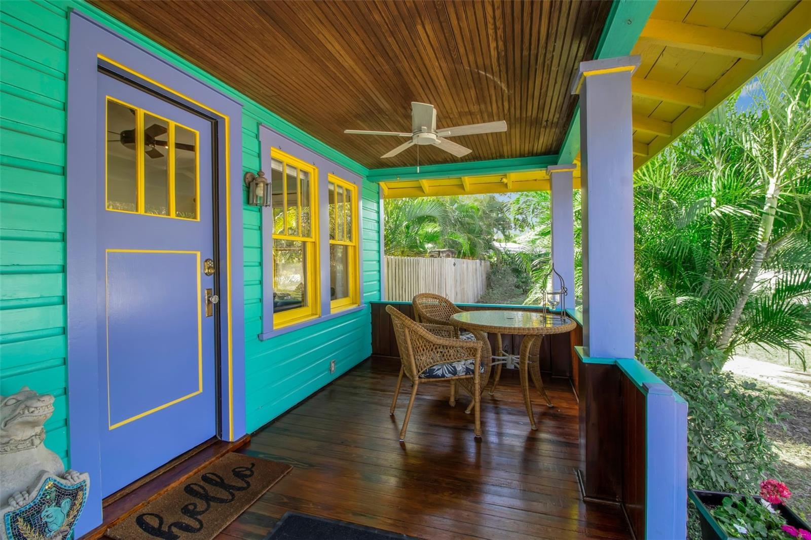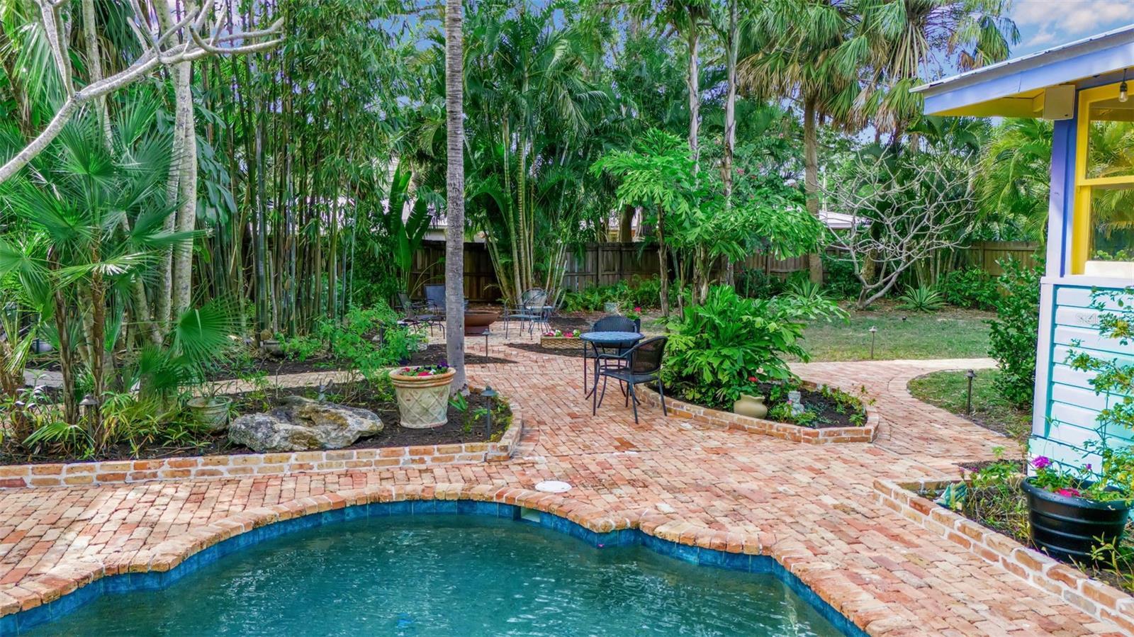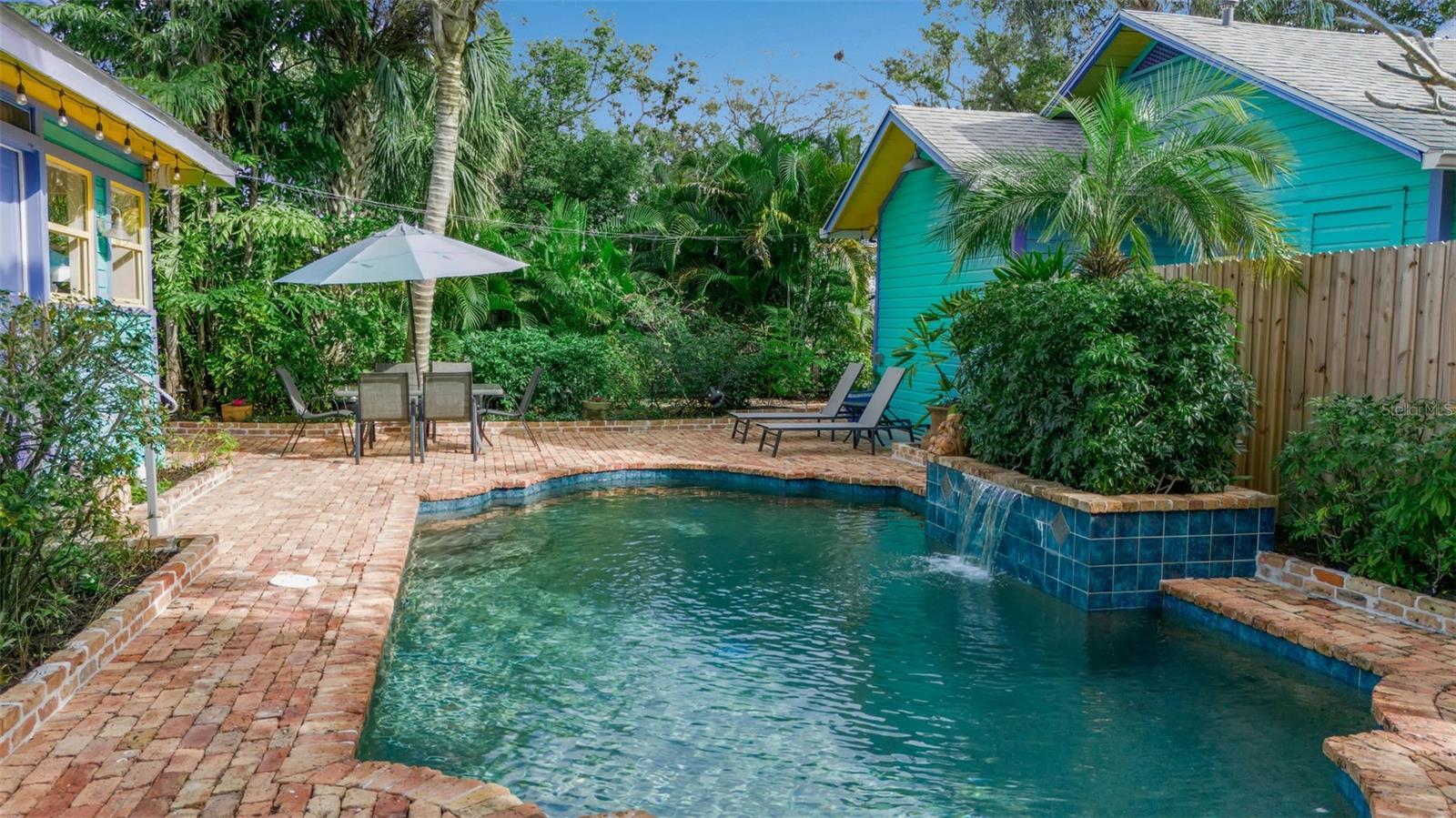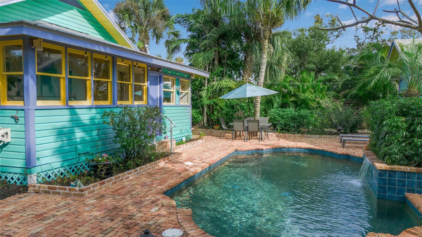 Tucked into the heart of Gillespie Park, this storybook Key West bungalow feels like a private tropical escape—yet it’s just moments from downtown Sarasota, the Bayfront, top restaurants, shops, and the city’s vibrant arts and theater district. Bright, colorful, and impeccably cared for, this is one of those homes that makes you smile the moment you arrive. A winding brick path leads you to the charming front porch—wide, welcoming, and made for morning coffee, evening wine, and slow conversations under the ceiling fans. The cheerful exterior palette, metal roof, and lush palms set the tone for the relaxed Florida lifestyle waiting inside. The main home offers two bedrooms and one bath, filled with natural light, original wood floors, and classic details—including a cozy fireplace that anchors the living room. Every space feels warm, intentional, and lovingly maintained. The dining room flows easily into the kitchen, which is bright and functional with plenty of storage and vintage charm. Bedrooms are peaceful retreats with garden views, and the bathroom feels fresh and timeless.Step outside and you’re transported into a private backyard oasis. Brick pavers wind around a sparkling pool with a waterfall feature, surrounded by mature palms, tropical landscaping, and total privacy. This is where afternoons melt away—lounging poolside, hosting friends, or enjoying quiet evenings under the stars.Just beyond the pool sits the detached guest house—a fully self-contained space with one bedroom, one bath, kitchenette, and living area. Perfect for guests, extended family, work-from-home, or income-producing rental potential. All of this sits on an oversized lot—a rare find in downtown Sarasota—offering space for privacy, gardens, entertaining, or even future expansion. If you’ve been searching for a Gillespie Park home for sale, a downtown Sarasota bungalow, or a property with a guest house and pool, 1628 7th Street is the kind of place that doesn’t come around often—full of personality, charm, and true Florida soul.