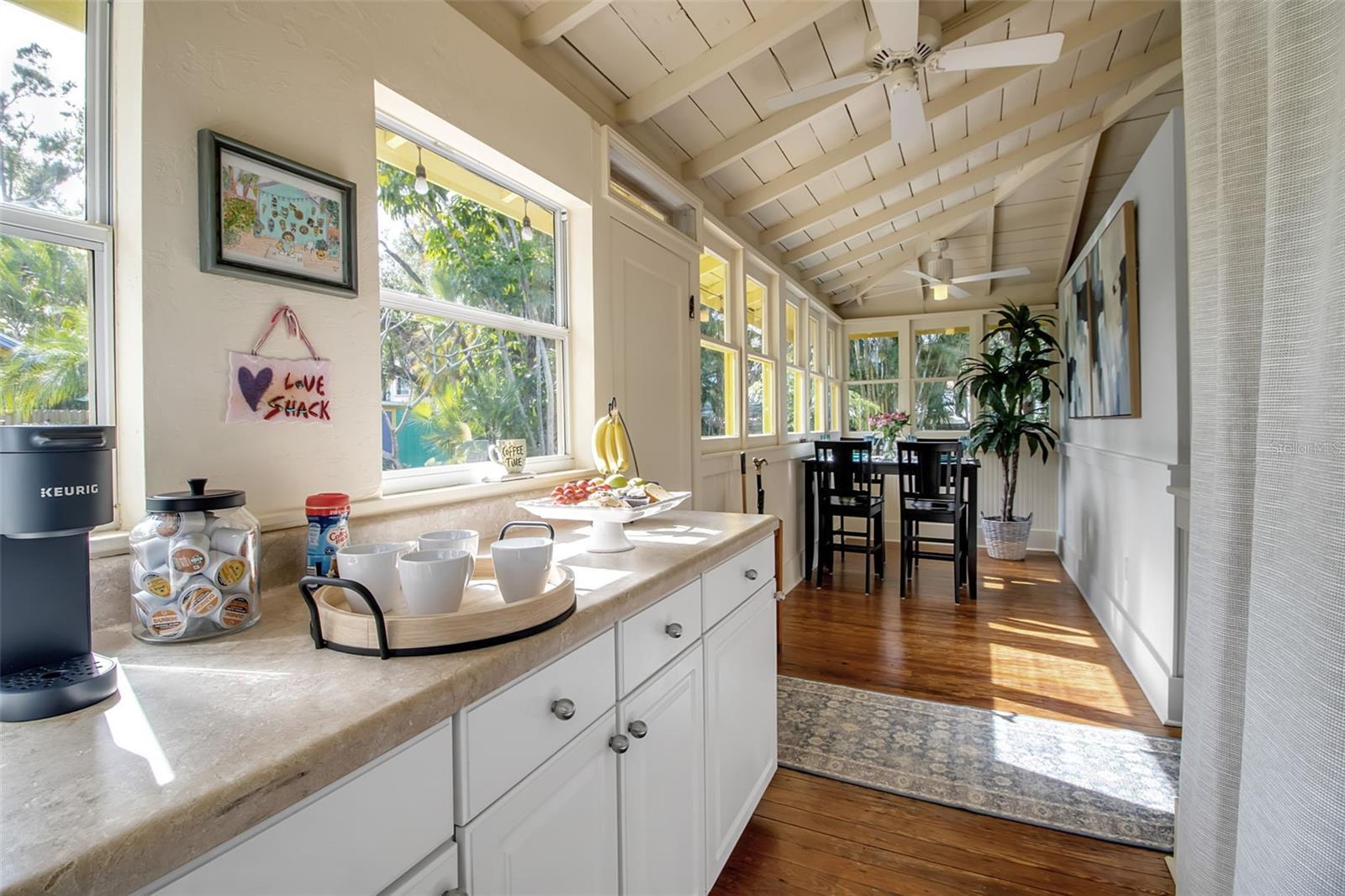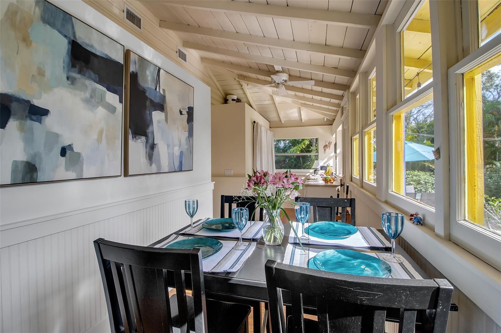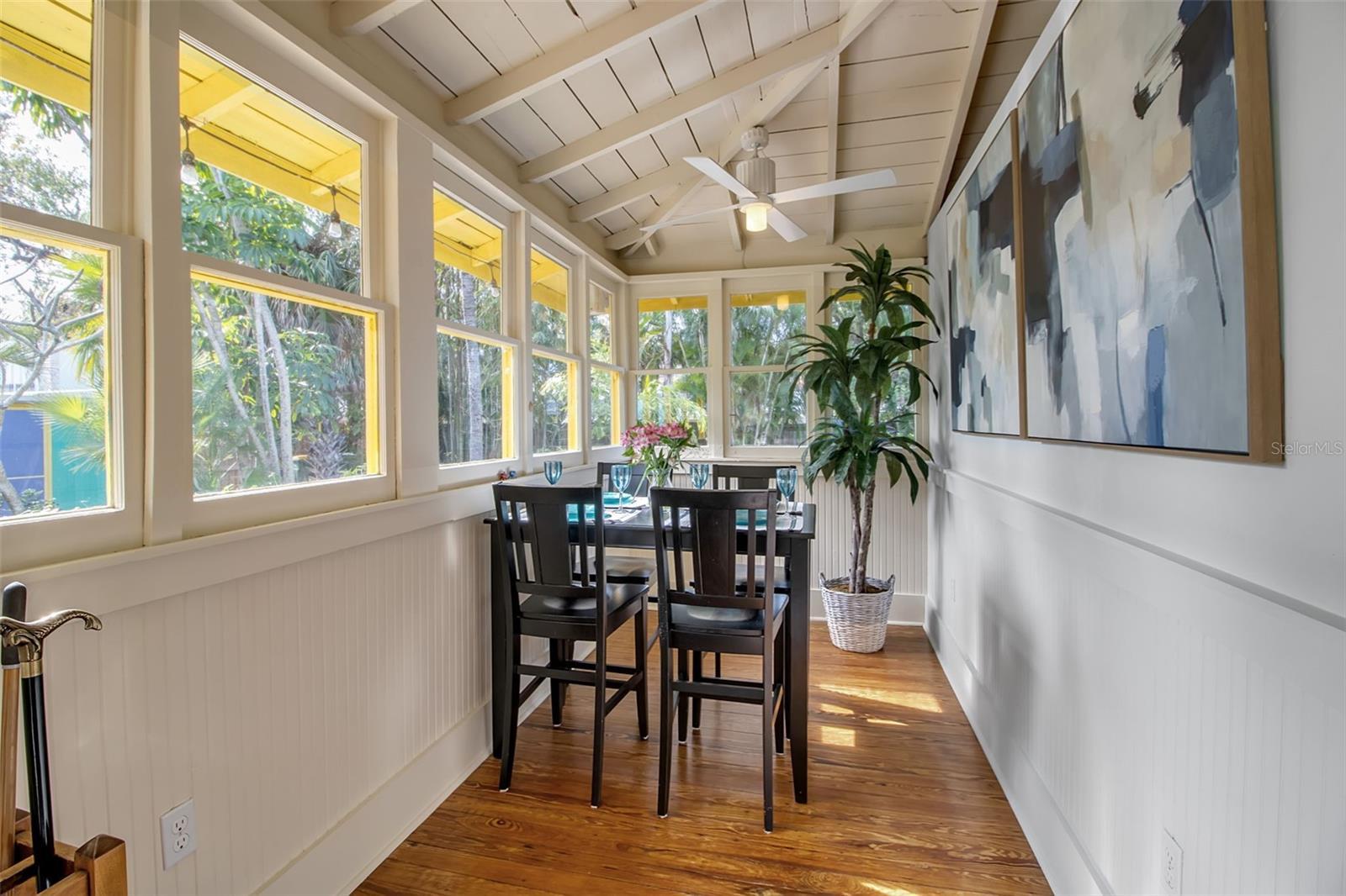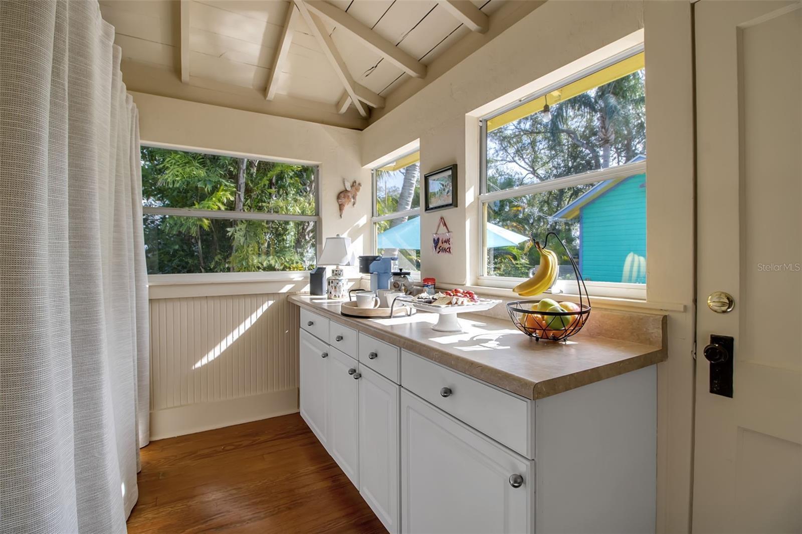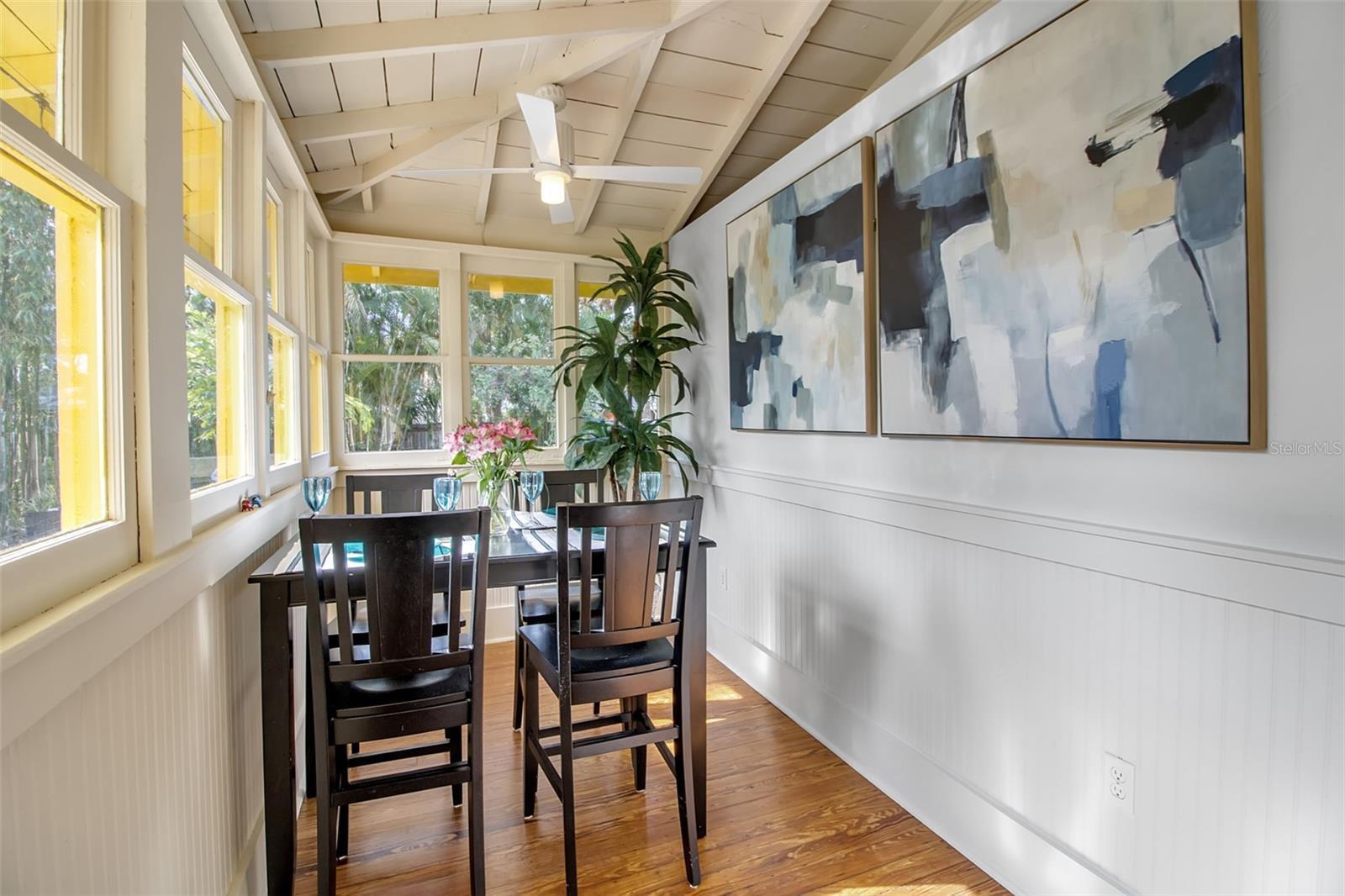 Tucked into the heart of Gillespie Park, this storybook Key West bungalow feels like a private tropical escape—yet it’s just moments from downtown Sarasota, the Bayfront, top restaurants, shops, and the city’s vibrant arts and theater district. Bright, colorful, and impeccably cared for, this is one of those homes that makes you smile the moment you arrive. A winding brick path leads you to the charming front porch—wide, welcoming, and made for morning coffee, evening wine, and slow conversations under the ceiling fans. The cheerful exterior palette, metal roof, and lush palms set the tone for the relaxed Florida lifestyle waiting inside. The main home offers two bedrooms and one bath, filled with natural light, original wood floors, and classic details—including a cozy fireplace that anchors the living room. Every space feels warm, intentional, and lovingly maintained. The dining room flows easily into the kitchen, which is bright and functional with plenty of storage and vintage charm. Bedrooms are peaceful retreats with garden views, and the bathroom feels fresh and timeless.Step outside and you’re transported into a private backyard oasis. Brick pavers wind around a sparkling pool with a waterfall feature, surrounded by mature palms, tropical landscaping, and total privacy. This is where afternoons melt away—lounging poolside, hosting friends, or enjoying quiet evenings under the stars.Just beyond the pool sits the detached guest house—a fully self-contained space with one bedroom, one bath, kitchenette, and living area. Perfect for guests, extended family, work-from-home, or income-producing rental potential. All of this sits on an oversized lot—a rare find in downtown Sarasota—offering space for privacy, gardens, entertaining, or even future expansion. If you’ve been searching for a Gillespie Park home for sale, a downtown Sarasota bungalow, or a property with a guest house and pool, 1628 7th Street is the kind of place that doesn’t come around often—full of personality, charm, and true Florida soul.
