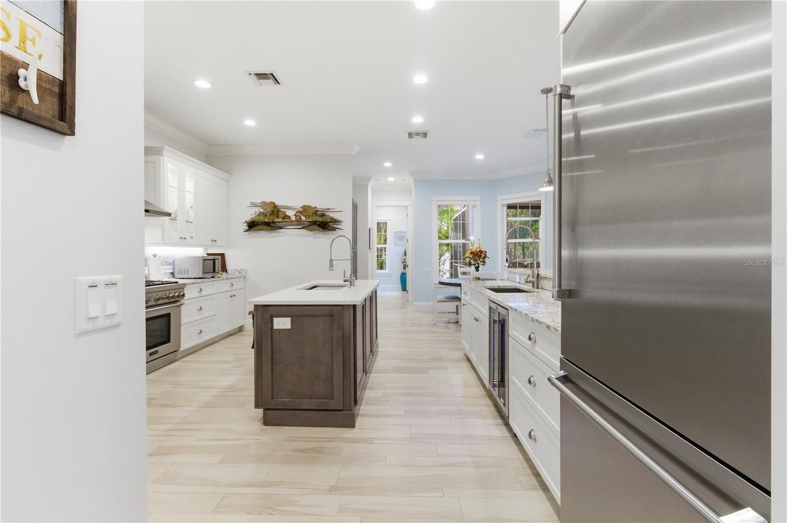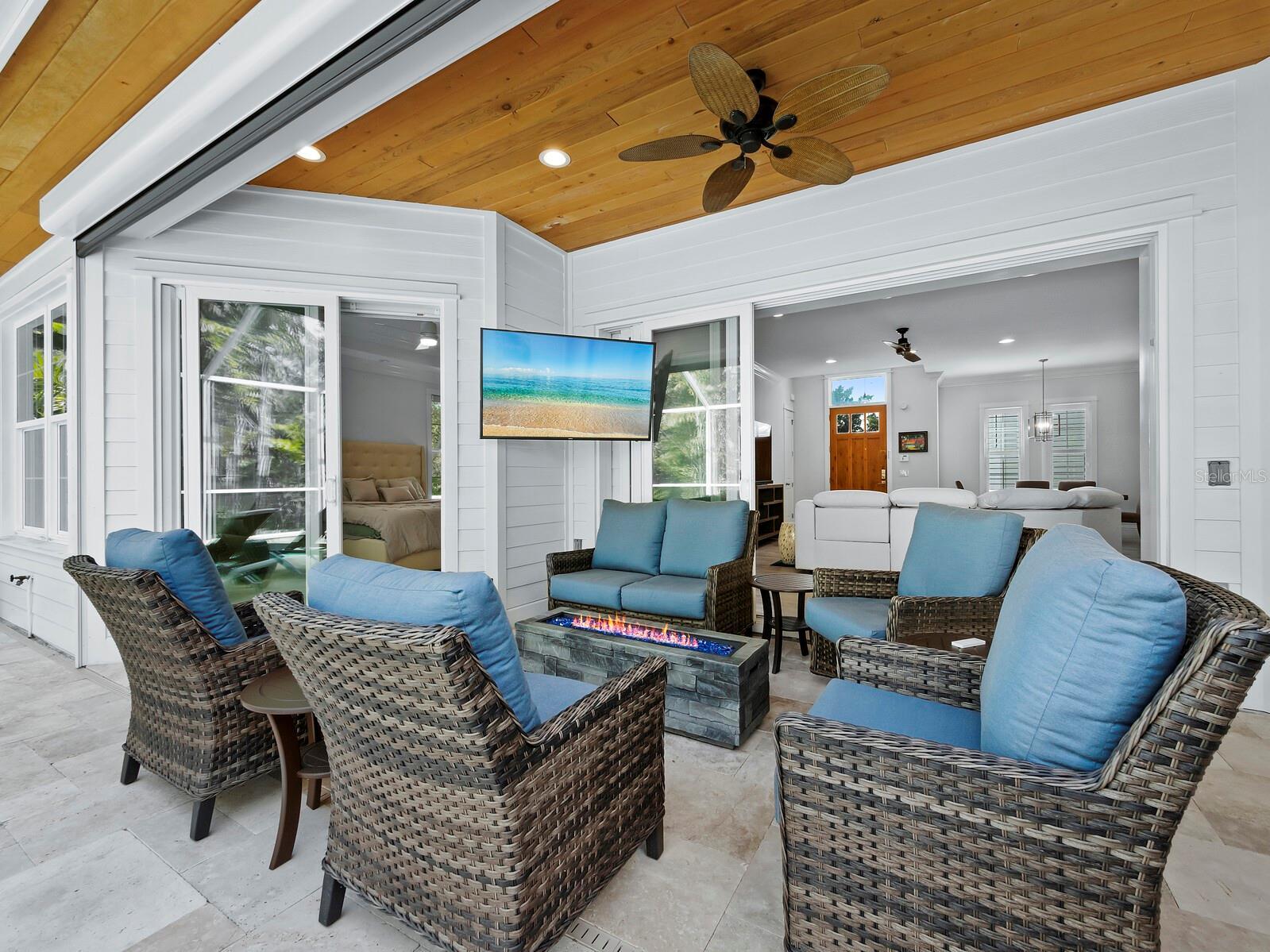 MOTIVATED SELLER!!Located in the highly sought-after Siesta Key area with convenient access to Shell Beach, this beautifully constructed 4-bedroom, 3-bath home was built in 2016. The residence features concrete block construction on the first floor, a framed second floor with durable synthetic siding, IMPACT WINDOWS AND DOORS, a METAL ROOF, and stained tongue-and-groove soffits. Interior highlights include tile flooring, Shiloh cabinetry, quartz countertops, Thermador appliances, crown molding, and oversized baseboards. The spacious primary suite offers a tray ceiling, dual walk-in closets, and a luxurious bath with double vanities and a Jacuzzi tub. A WHOLE HOUSE WATER FILTRATION SYSTEM WITH ULTRAVIOLET LIGHT adds to the home’s modern comforts. Outdoor living shines with a screened lanai encompassing the porch, pool, and spa, plus a fully equipped outdoor kitchen—perfect for entertaining. Lush tropical landscaping, including lemon, avacado, banana and mango tree provides privacy and a serene setting. During hurricanes, there was no water intrusion into the living areas of the home. A limited amount of water entered the garage with no resulting damage, and pool equipment has been raised to provide additional protection. Offered fully furnished (with exclusions) and equipped with a WHOLE HOUSE GENERATOR, this home combines quality construction, thoughtful upgrades, and refined coastal living—an ideal retreat in one of Siesta Key’s most desirable locations.