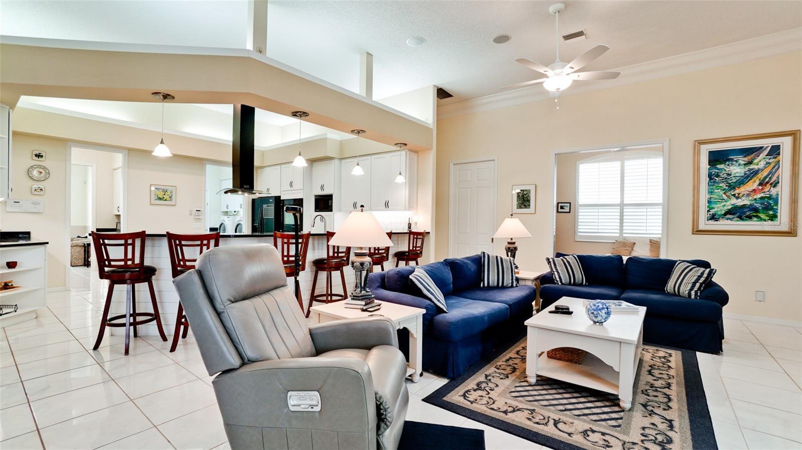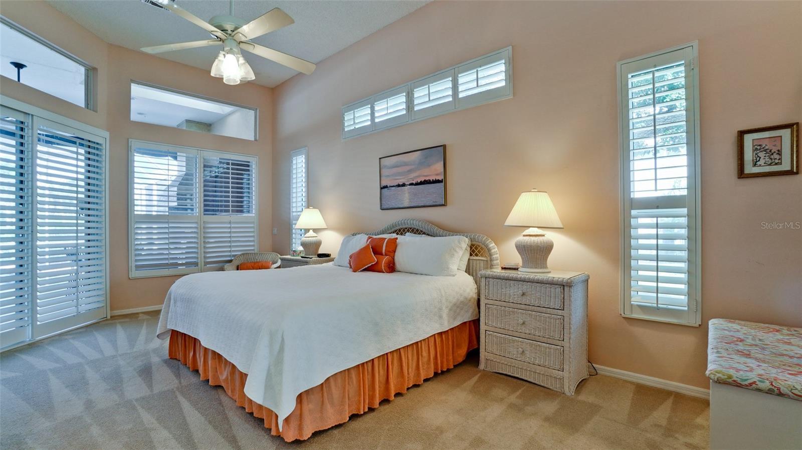 - Ceiling Fans(s), Crown Molding, High Ceilings, Kitchen/Family Room Combo, Open Floorplan, Primary Bedroom Main Floor, Solid Surface Counters, Split Bedroom, Thermostat, Vaulted Ceiling(s), Walk-In Closet(s), Window Treatments