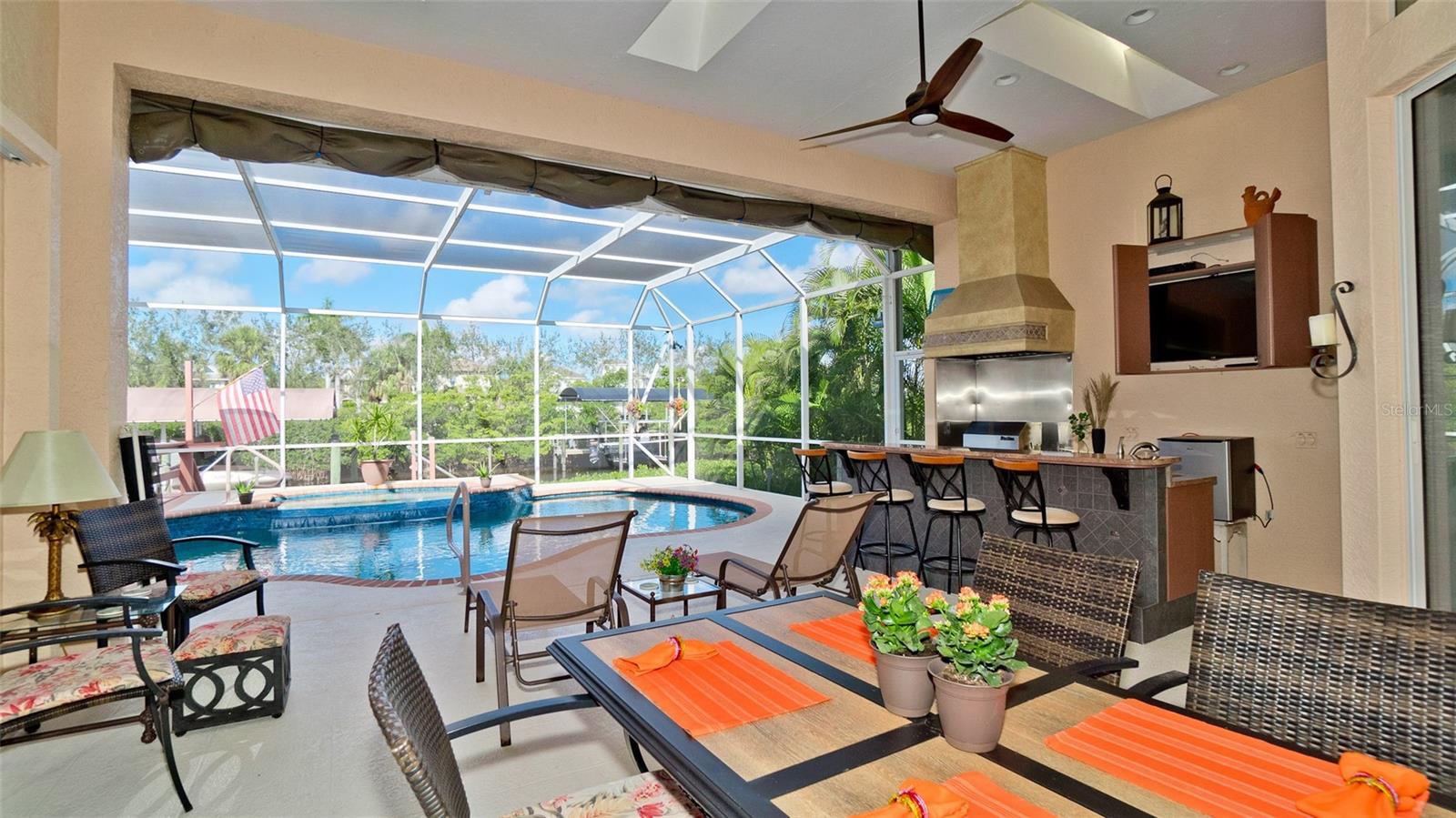 ATTENTION BOATERS! A rare opportunity awaits to live your dream in one of the most desirable BOATING COMMUNITIES in Bradenton with NO HOA FEES! This beautiful, custom-built home is situated on the WIDEST canal in Riverdale near The Inlets with quick and easy access to the Manatee River. Even better, there is NO LIFT to pass through! Just off the back deck is a private, covered boat dock with lift. Access to the Manatee River is a short boat ride down the canal for cruising the waterways to DeSoto Park, Terra Ceia, Palma Sola, Tampa Bay, Anna Maria Island and the Gulf of Mexico! After a day of boating, relax and enjoy the heated, saltwater pool and spa while watching other boaters pass by. Wouldn’t the summer kitchen and outdoor dining area be perfect for preparing and enjoying the fresh catch of the day? The wooded area across the canal offers increased privacy from direct view of the homes on this street. For additional privacy, the caged pool area is landscaped on both sides. The paver driveway and meticulous landscaping set the stage for an impressive double door entryway leading to a spacious gourmet kitchen with abundant cabinetry and granite counter space. As a bonus, there is a large butler’s pantry between the kitchen and living room and bar seating from the kitchen opening into the family room which also has a fireplace for cooler days. The split floor plan features a spacious primary suite with sliding doors that open to the pool area. There are two walk-in closets with custom shelving leading to an ensuite bath with separate vanities, a whirlpool tub, separate shower, and a private water closet. On the other side of the home are a den/office, 2 bedrooms and 2 ½ baths. The full bath in the rear bedroom also serves the outdoor shower and pool area. Hurricane impact windows were installed in 2020, and the roof was replaced in 2016. This fabulous home offers all the amenities for entertaining, BOTH indoors and outdoors! Don’t wait to make an appointment to see this home centrally located between downtown Bradenton and I-75, just a few miles to downtown's Historic Riverwalk, shopping, restaurants, and the beautiful beaches of Anna Maria Island!