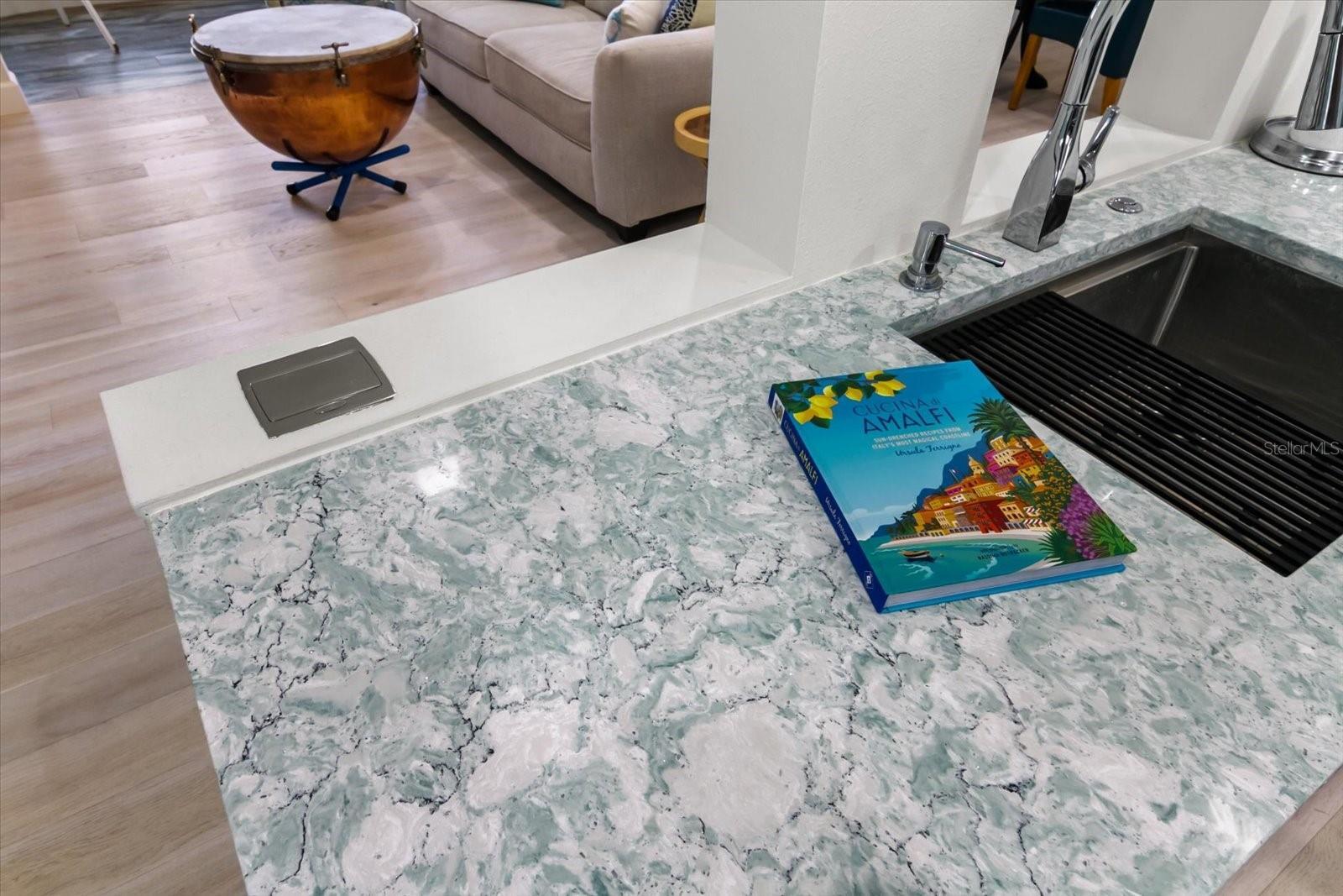 Convenient LOCATION! Expansive WATER VIEW! Handsome RENOVATION! Welcome to your Personal Paradise! DOWNTOWN Sarasota on prized GOLDEN GATE POINT. View of SARASOTA BAY and the elegant John Ringling bridge from all rooms. This Third Floor Condo has been beautifully redone. *New Kitchen from studs out *High Quality GE Café Kitchen Appliances *Convenient Undercounter Microwave Drawer *All New Electrical Wiring and Electric Panel *CAT5 Wiring installed *Stylish -not the usual- Ceiling Fans and Recessed Lighting *New HVAC Air Handler and Compressor *New Water Heater *New Bathrooms, one with Rain-showerhead *New Crown Molding *New Wood Flooring throughout. Light and Bright Kitchen with its Sea green Quartz Countertop, Ample Cabinets and Storage, with a hidden stacked Full-sized Washer/Dryer on the pantry end of the kitchen. Living Room space features a sleek, electric Fireplace, with decorative color-changing crushed glass rocks, that also provides heat. Hunter Douglas Window shades for all windows. Two Bedroom Suites, each with plenty of closet area, split plan, one currently being used as an office/guest suite. Closets with Container Store quality closet organizer, shelving changeable as you choose. Assigned carport parking with your own storage room, ready for your beach chairs, bicycles and paddleboards! SARASOTA is known for its beaches, its restaurants, its arts and entertainment: this Central Location lets you easily reach them all! And if you don’t want to leave home, most delightful is being able to enjoy this wonderful view from your armchair in your modern condo!