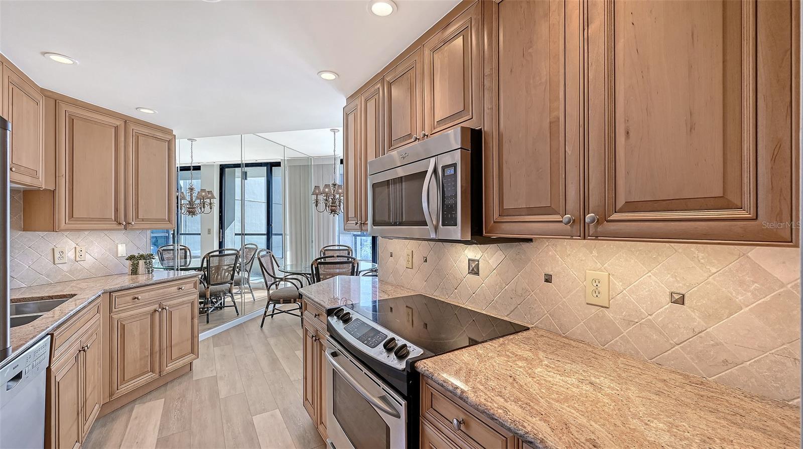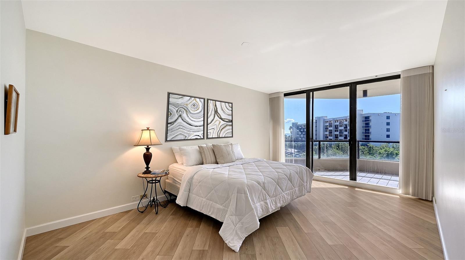 Welcome to this 2-bedroom 2 bath gulf-side residence in the Promenade on Longboat Key, where shimmering water views, swaying palms, and warm coastal breezes shape a lifestyle of relaxed sophistication. A welcoming foyer introduces freshly painted interiors and brand-new luxury vinyl wide-plank flooring, guiding you toward the main living room, where gulf and garden views take center stage. This light-filled space flows beautifully to the outdoors through two sets of sliders that open onto the balcony. The kitchen features wood cabinetry and granite counters, and the adjacent dining room features a granite topped wet bar. The primary suite is a serene retreat with lovely Gulf and garden views, a spacious dressing area, two walk-in closets, and an ensuite bath featuring a marble steam shower and spa tub. A desirable split plan provides privacy for the guest bedroom and marble guest bath. Additional conveniences include a full-size laundry closet with storage shelving, 1 assigned parking space in the secure under-building parking garage, and additional assigned storage space. Life at the Promenade is defined by exceptional amenities and a setting designed for daily enjoyment on the Gulf. The property spans more than 6 acres of landscaped grounds with a boardwalk that winds through tropical foliage to the white sand beach, where inviting tiki huts offer a peaceful, shaded place to relax by the gulf. Residents enjoy an oversized heated pool, whirlpool spa, new covered outdoor kitchen/grilling area, gulf side sundeck, inviting lobby spaces, concierge services, on-site management, a beachside gazebo, secure guard gated entry with twenty-four-hour security, an athletic center, 4 Har-Tru tennis courts, and beautifully appointed gathering spaces including the Sunset Room and Sunrise Room. Longboat Key living offers a rare blend of natural beauty, coastal elegance, and everyday convenience. Residents enjoy pristine beaches, gulf breezes, and a serene island atmosphere, all while being just moments from the vibrant cultural scene of Downtown Sarasota, the shopping and dining of St. Armands Circle, and easy access to SRQ Airport.
