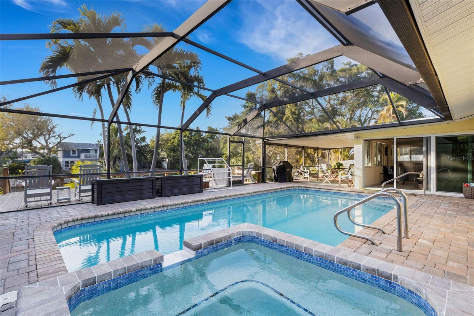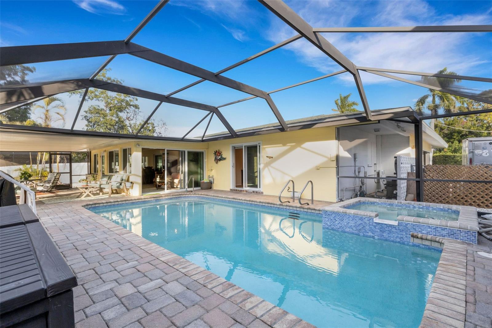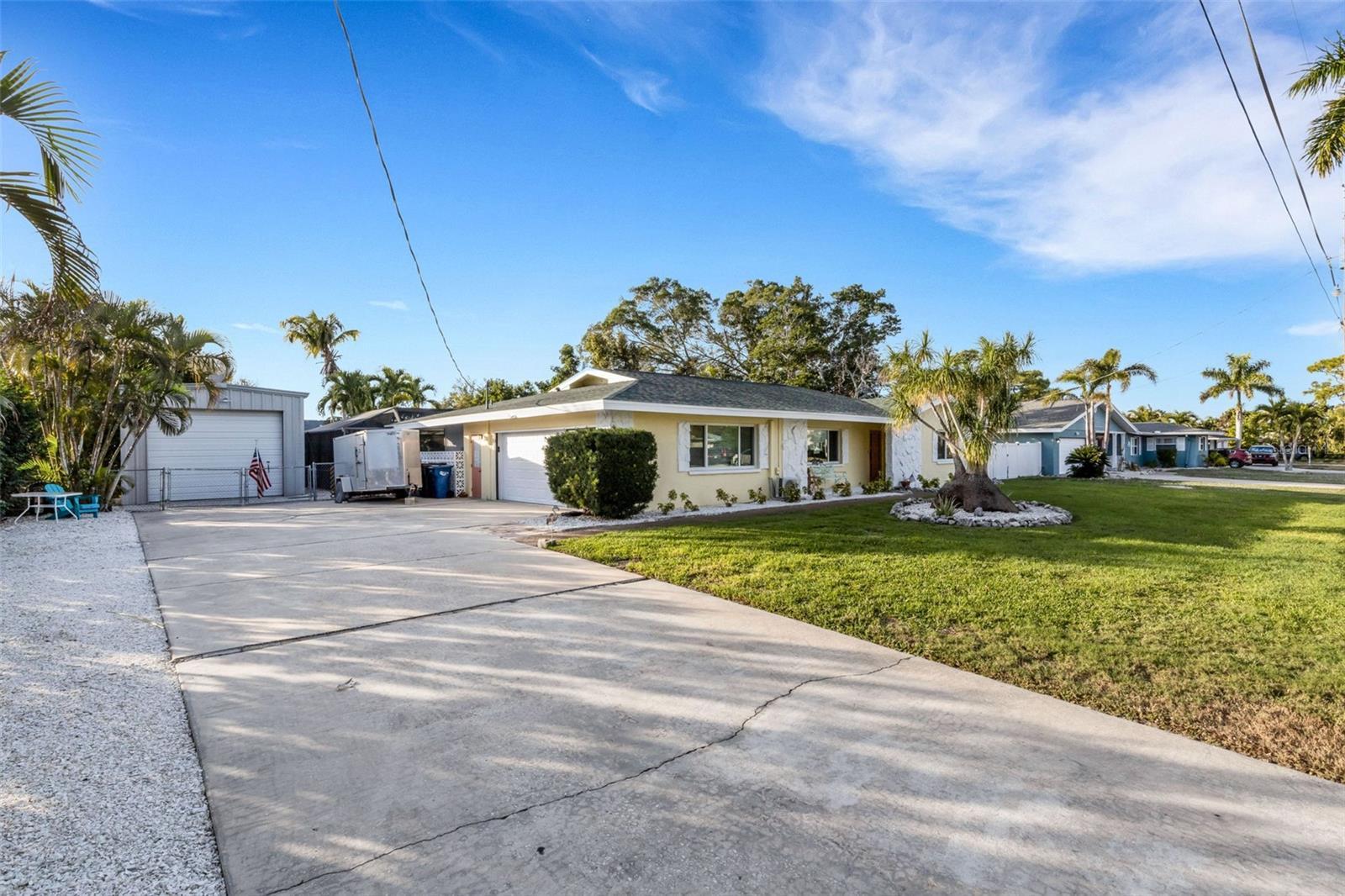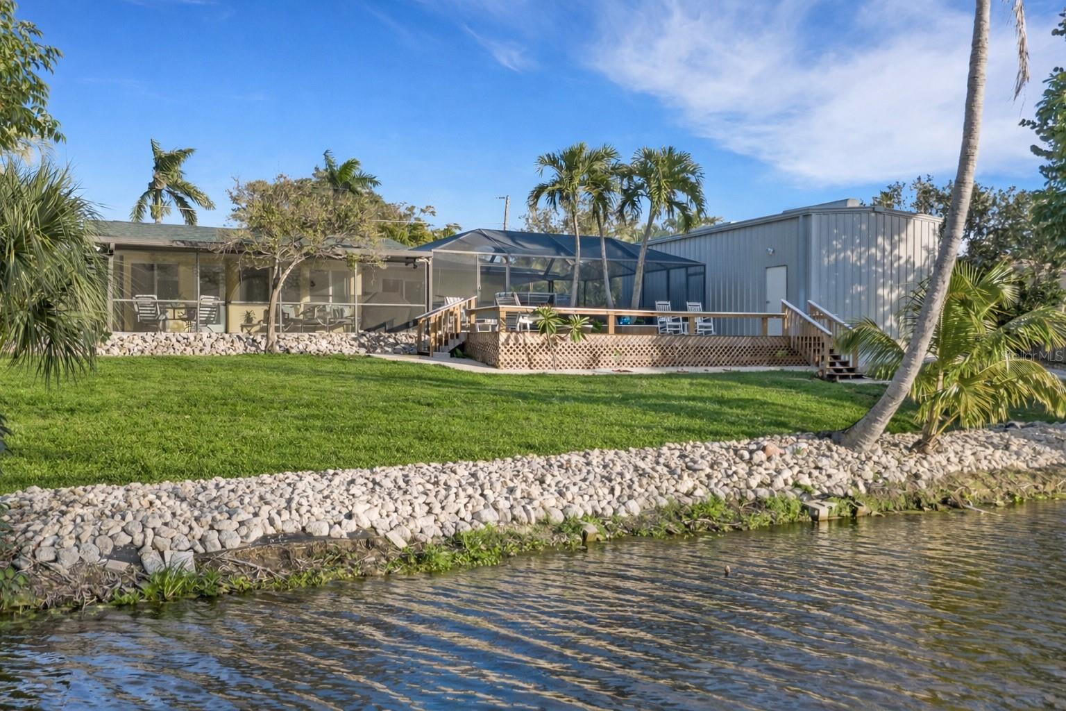 Under contract-accepting backup offers. Rare opportunity to own a truly exceptional pool home located in the highly desirable Shaw’s Point community of Northwest Bradenton. Situated on an expansive half-acre lakefront lot, this property offers breathtaking water views, privacy, and true Florida living with NO HOA or deed restrictions. NOT in a Flood Zone. A major highlight of the home is the newly renovated sunroom under air, offering a bright, climate-controlled space with peaceful lake views. The residence has been extensively upgraded with all new hurricane-impact windows and sliding glass doors installed in 2025, providing enhanced safety, energy efficiency, and peace of mind. The sunroom and attached garage are each equipped with new mini-split systems 2025 for year-round comfort. The outdoor living is exceptional, featuring a screened-in pool newly resurfaced in 2024, complemented by new paver patios and decks completed in 2025, creating multiple spaces for entertaining and relaxation. The expansive fenced backyard offers ample room for pets, gatherings, and outdoor enjoyment, with frequent sightings of native wildlife. A rare and highly sought-after feature is the 32' x 16' steel freestanding outbuilding/garage/workshop, hurricane-rated up to 230 MPH. Ideal for storing a boat, trailer, camper, recreational toys, or for use as a workshop. With the county boat ramp at Warner’s Bayou just around the corner, this property is perfectly suited for boating enthusiasts! Inside, this well-maintained home offers 2,182 square feet of open living space, featuring 3 bedrooms and 2 bathrooms with a desirable split floor plan. Numerous major system updates include a newer roof (2021), A/C (2020), and water heater (2022), providing added value and peace of mind for Florida buyers. Additional improvements include new lighting and ceiling fans (2025), popcorn ceilings removed and replaced with a modern textured finish, and newer appliances. The gourmet kitchen is designed for both everyday living and entertaining, featuring solid wood cabinetry, pull-out shelving, built-in desk, LED ceiling lighting, stainless-steel appliances, and a high-end induction range with sous vide capability, a standout feature for cooking enthusiasts. The primary suite includes an en-suite bath, walk-in closet, and double sliding glass doors providing direct access to the pool and outdoor living areas. Enjoy the flexibility of NO HOA, no rental restrictions, and no vehicle restrictions, making this property ideal for full-time residence, seasonal living, or investment. This property offers a rare combination of lakefront living, hurricane-rated upgrades, extensive storage, and unbeatable boating access. Just around the corner from DeSoto Memorial Park and only a short distance to Robinson Preserve, offering miles of scenic biking and walking trails along with water access for kayaking and canoeing. Conveniently located near Fresh Market, Blake Hospital, the post office, Publix, fine dining restaurants, and just minutes from the sugar-sand beaches of Anna Maria Island. This exceptional location truly offers the best of Florida living. Make your appointment today to see this fantastic home!