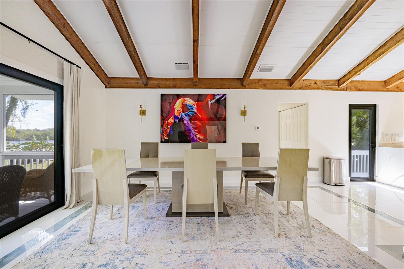 Exquisite Luxury Riverfront Estate in Alva! Welcome to this remarkable riverfront estate nestled on nearly 6 acres of pristine land in the heart of Alva. This one-of-a-kind property boasts two beautifully renovated residences, offering a unique blend of luxury living, privacy, and income potential. Main Residence: The primary home features 3 spacious bedrooms and 2 modern bathrooms, with 1,742 sq. ft. of thoughtfully designed living space. Recently renovated throughout, it showcases cathedral ceilings with exposed wood beams, impact-resistant windows, and an expansive screened balcony offering panoramic views of the Caloosahatchee River. The gourmet kitchen is outfitted with top-of-the-line appliances, sleek finishes, and custom cabinetry. Additional highlights include ultra-modern bathrooms, over five covered parking spaces, and uninterrupted river views from nearly every room. Sitting at nearly 13 feet of elevation, the property provides peace of mind with excellent flood protection. Waterfront Features: Enjoy over 170 feet of direct river frontage, complemented by a private canal with a custom dock accommodating vessels up to 80 feet. Complete with water and electrical hookups, this deep-water dock also features a private on-site boat ramp, providing unmatched convenience. Guest House: The secondary residence, located at the front of the estate, is a fully renovated 3-bedroom, 2-bathroom home offering 1,275 sq. ft. of living space. Currently operating as a highly successful vacation rental, this guest house offers excellent income-generating potential while maintaining privacy thanks to the generous acreage separating the two homes. Equestrian Amenities: Ideal for equestrian enthusiasts, the property includes a well-maintained horse barn and ample fenced acreage for horses to roam freely. Whether you're seeking a serene and ultra-modern riverfront retreat with yacht access and equestrian facilities, or a proven income-producing investment with multiple opportunities for expansion, this estate offers the best of both worlds.