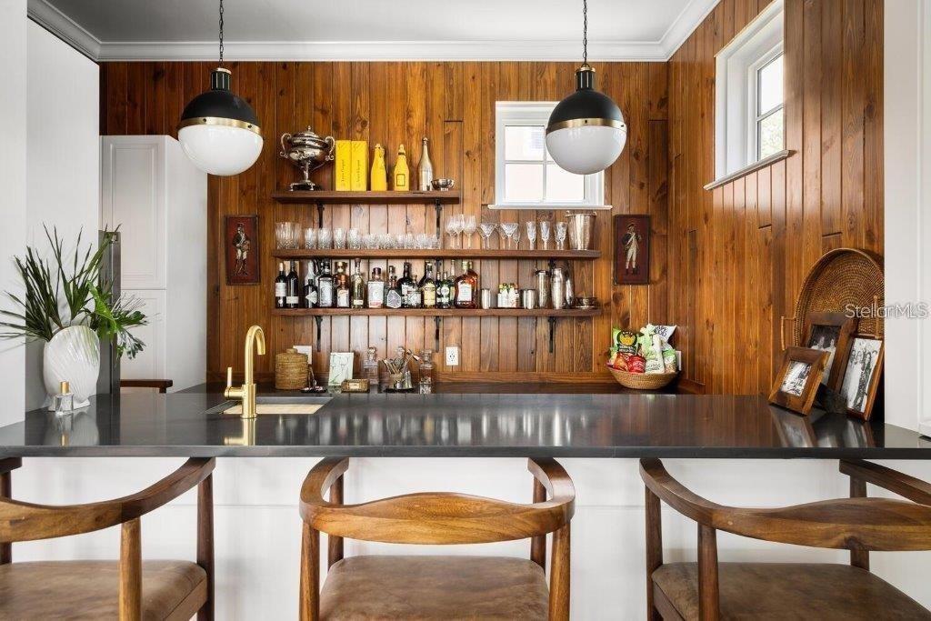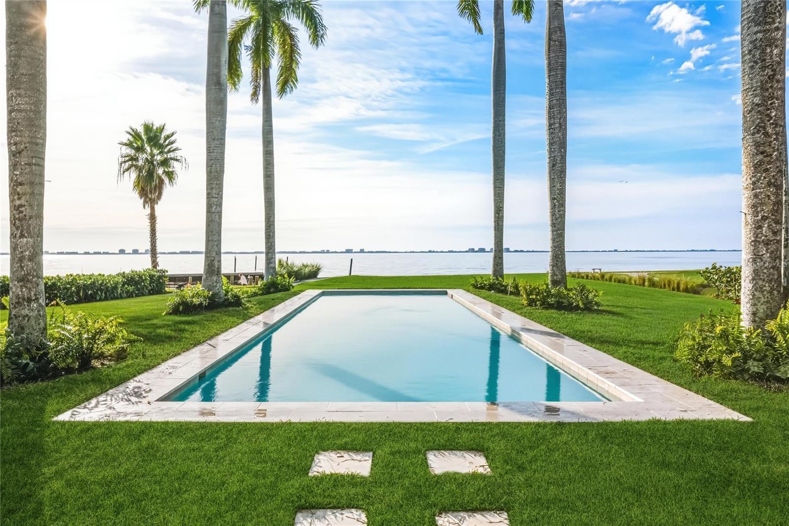 Nestled on 1.1 acres of pristine bayfront along Sarasota Bay, Etowah stands as a timeless icon of Sarasota’s rich architectural heritage, offering sweeping, wide-open bay views to the north and south, from the manicured lawn at the water’s edge all the way to the distant skyline of downtown Sarasota, with glowing sunset views that unfold nightly across the horizon. Originally built in 1925, this distinguished two-story Mediterranean Revival estate spans over 6,500 square feet and commands captivating views across the bay, all while being just 10 minutes from downtown Sarasota. Following an extensive year-long restoration, Etowah has been meticulously renewed from the inside out. Every major system of the home has been comprehensively replaced or upgraded, including all new electrical, plumbing, heating and air-conditioning systems, roofing, insulation, and drywall, ensuring modern performance while preserving historic integrity. A significant west-side addition by renowned local architect Frank Folsom Smith in 1992 introduced a gracious primary suite, a sophisticated bar area, and a grand great room—enhancements that seamlessly complement the home’s historic character. Upon entry, a vaulted ceiling sets a dramatic and welcoming tone, guiding you into the formal living room anchored by the home’s original fireplace. The adjacent dining room, surrounded by windows crafted with original glass sourced from the nearby Ringling era, creates an extraordinary setting for entertaining and comfortably accommodates gatherings of 12 or more. Designed for both elegance and performance, the chef’s kitchen is outfitted with top-of-the-line Thermador appliances, a Sub-Zero refrigerator, and every modern convenience, while the sun-filled eat-in area offers the perfect spot for morning coffee overlooking the grounds. The west wing of the home unfolds around a serene courtyard, with the great room and owner’s suite positioned on either side—creating a seamless indoor-outdoor living experience. The owner’s suite features sweeping bay views, dual walk-in closets, and a spacious spa-like bath. Upstairs, a second primary bedroom offers its own wood-burning fireplace, picturesque bay vistas, and generous closet space. 3 additional bedrooms on this level are well-proportioned and thoughtfully laid out, complemented by a sunken office or den tucked quietly at the end of the hall. The grounds are equally exceptional, highlighted by a heated, resort-style 15’ x 50’ swimming pool—perfect for both relaxation and entertaining. Completing the waterfront setting is a 4’ x 50’ dock, providing direct access to Sarasota Bay for boating, paddleboarding, and waterfront enjoyment. Completing the property is the original detached garage with an adjoining workshop, gardening space, laundry facilities, and private guest quarters—ideal for visitors or staff. A rare offering of architectural significance and modern luxury, Etowah is a one-of-a-kind estate that seamlessly bridges historic Florida elegance with contemporary living, all set against the unparalleled beauty of Sarasota Bay.