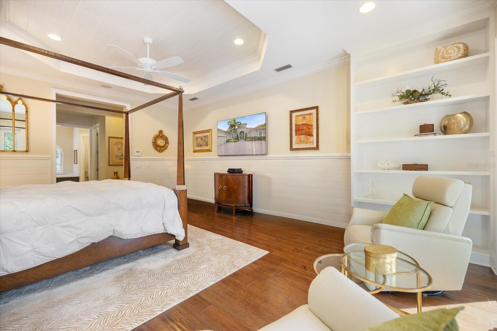 - Built-in Features, Ceiling Fans(s), Central Vaccum, Coffered Ceiling(s), Crown Molding, Dry Bar, Eat-in Kitchen, High Ceilings, Open Floorplan, Primary Bedroom Main Floor, Solid Wood Cabinets, Split Bedroom, Stone Counters, Tray Ceiling(s), Walk-In Closet(s), Window Treatments