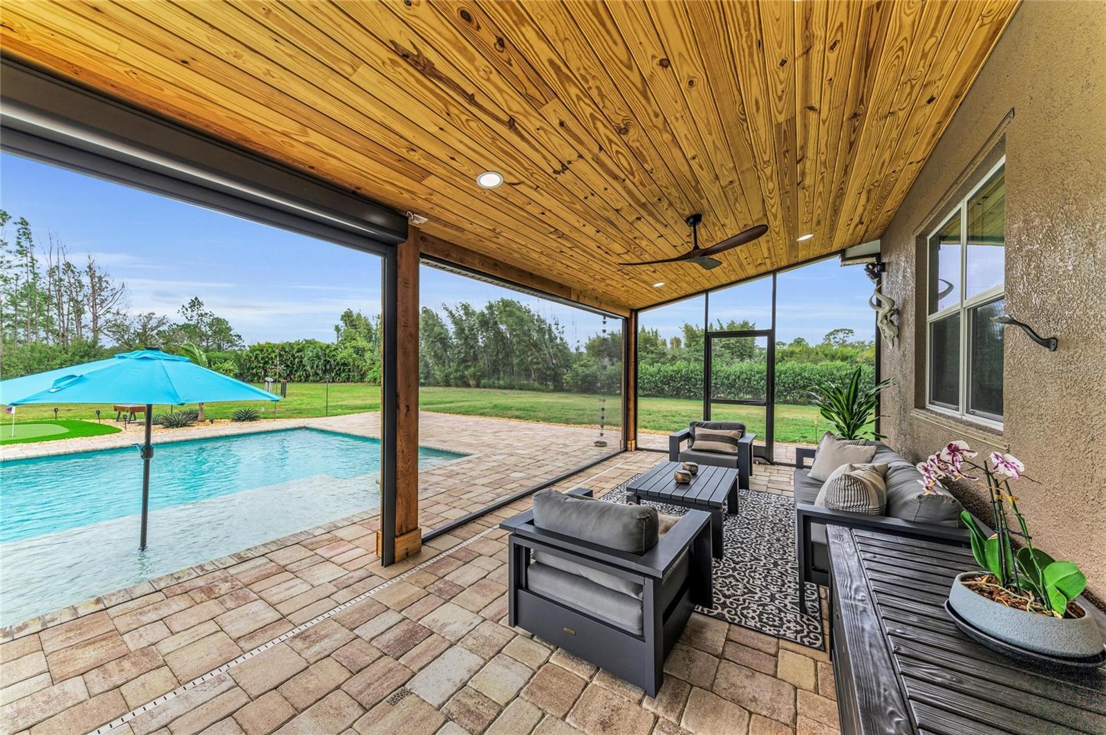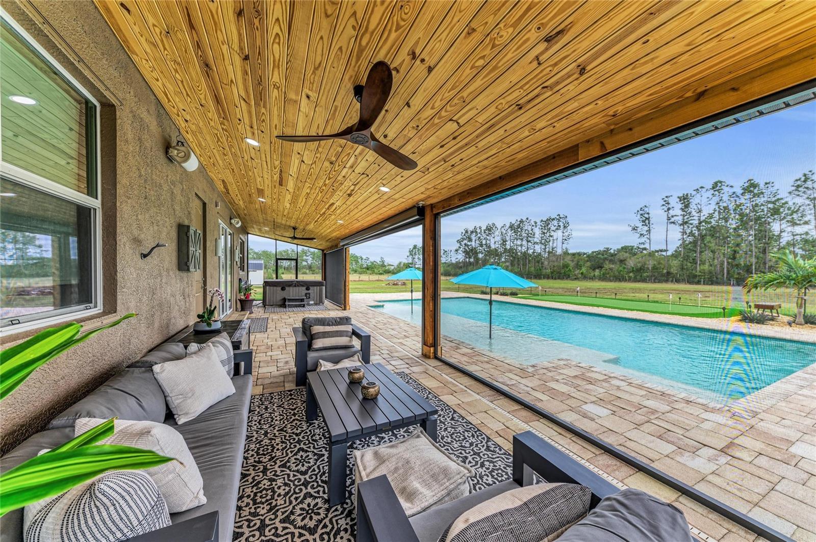 Discover the epitome of luxury living with this custom Mark Cahill home, nestled on a sprawling 4.5 acres with lush tropical landscape screening. This property offers the ultimate in privacy and freedom, featuring no deed restrictions or CDDs, and is fully fenced with a newly installed gated entry. The residence boasts three spacious bedrooms and two and a half baths, designed with an open floor plan that enhances the flow of natural light. The great room impresses with its volume ceilings, creating an airy atmosphere perfect for both relaxation and entertaining. The chef's kitchen is a culinary dream, equipped with a stylish tile backsplash and high-end stainless-steel appliances, ensuring that every meal is a delight. The main bedroom, conveniently located on the first floor, features an ensuite bath complete with dual sinks and a luxurious walk-in shower, providing a serene retreat at the end of the day. Upstairs, you will find two additional bedrooms accompanied by a cozy loft area, ideal for a home office or play space. This home is equipped with a new Carrier HVAC system, complete with an air purifier and UV lamps, along with Nest thermostats for optimal climate control, ensuring comfort year-round. Step outside to experience your own private oasis, featuring a stunning 20 x 40 saltwater sport pool with a 9-foot sun shelf, perfect for soaking up the sun. The outdoor patio extension, measuring 52'x12', showcases a tongue and groove ceiling adorned with recessed lighting and fans, creating an inviting space for gatherings. Unwind in the hot tub or enjoy the convenience of the 20' x 8' motorized Kevlar screen for added comfort. For the golf enthusiasts, a 30x20 golf green awaits, while the property's power is being assisted by 16 solar panels that generate an impressive 30-40 kWh per day accompanied by a 18 kWh Generac battery backup that keeps your necessities powered during challenging weather events or you can simply go off-grid. Making this home not only luxurious but also energy-efficient. Embrace the lifestyle you deserve in this exquisite property that combines elegance, functionality, and sustainability.