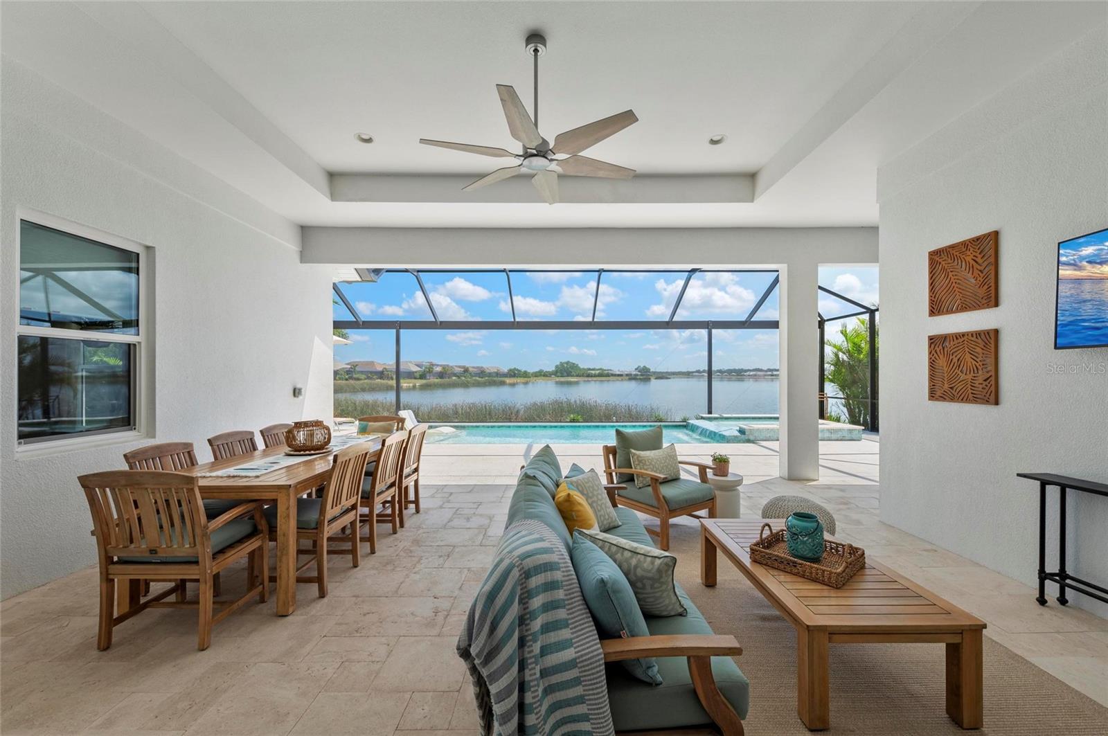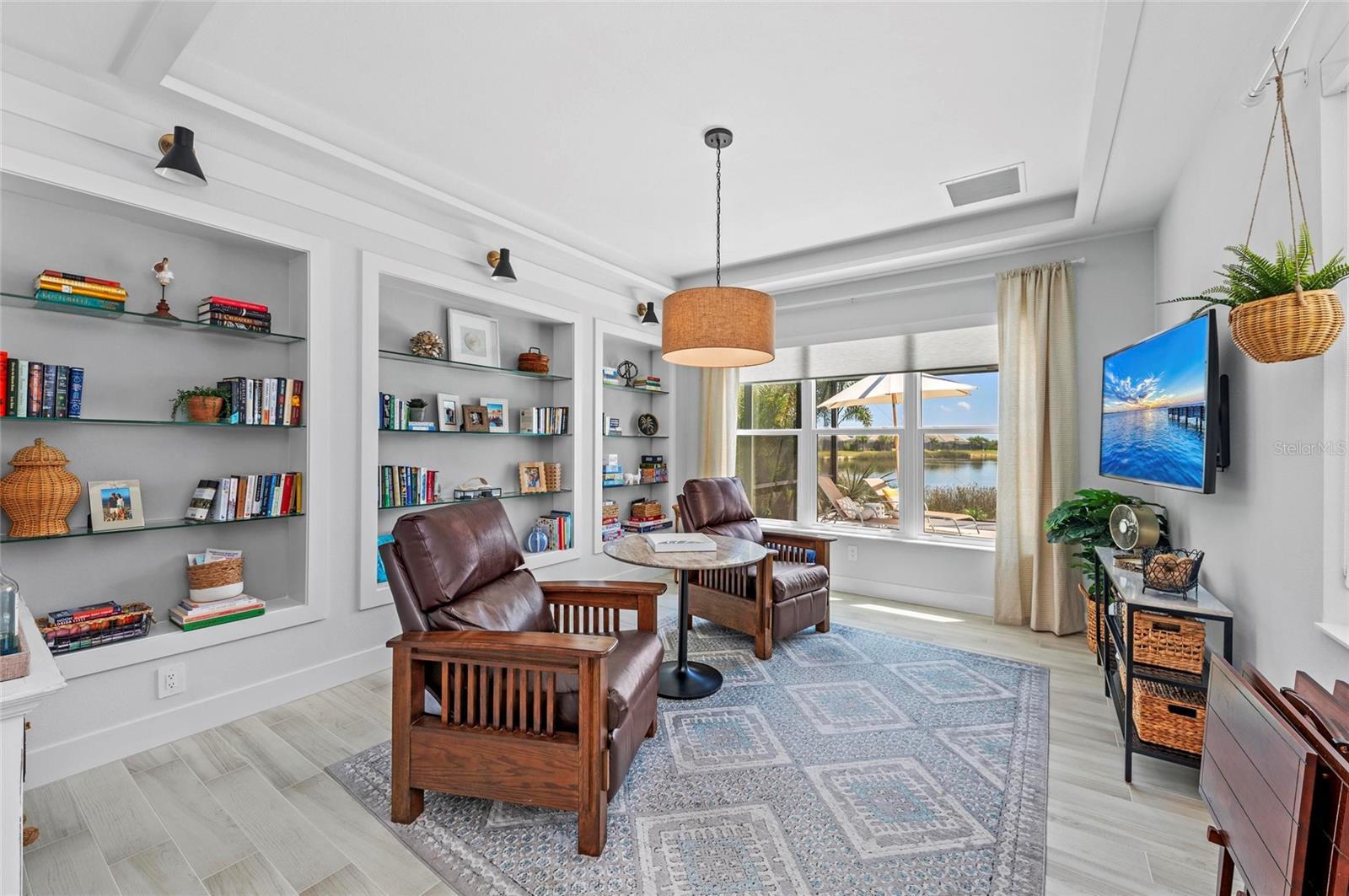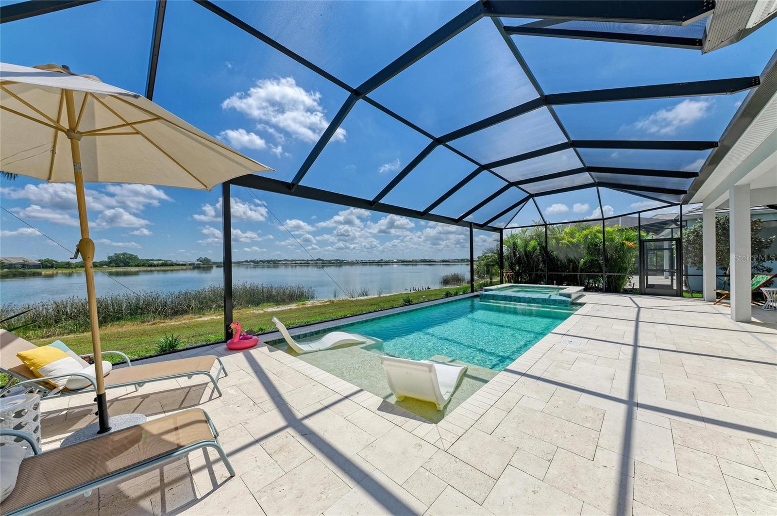 Welcome to your dream home in the highly sought-after Lakehouse Cove at Lakewood Ranch. This exceptional Tideland floor plan by Homes by Towne offers the perfect blend of luxury, comfort, and true waterfront living, highlighted by expansive panoramic lake views. This thoughtfully designed 3-bedroom, 4-bathroom residence features a spacious open-concept layout accented by high-end finishes and quality upgrades throughout. The main level includes a dedicated office, ideal for working from home or creating a private retreat, as well as a generous primary suite with a spa-inspired bathroom and large walk-in closet. Step outside to the oversized screened lanai and take in tranquil mornings and breathtaking sunset views over the lake—an ideal setting for relaxation and entertaining. The upper level offers a versatile bonus living area, perfect for a media room, guest suite, or additional gathering space. Each bedroom is designed for privacy and comfort, with its own en-suite bathroom, making this home well-suited for family and guests alike. Situated within the amenity-rich Lakehouse Cove community, residents enjoy access to a resort-style clubhouse, fitness center, pool, kayak launch, and miles of scenic walking trails. Conveniently located near shopping, dining, and all that Lakewood Ranch has to offer, this lakefront home presents a rare opportunity to enjoy refined Florida living at its best.