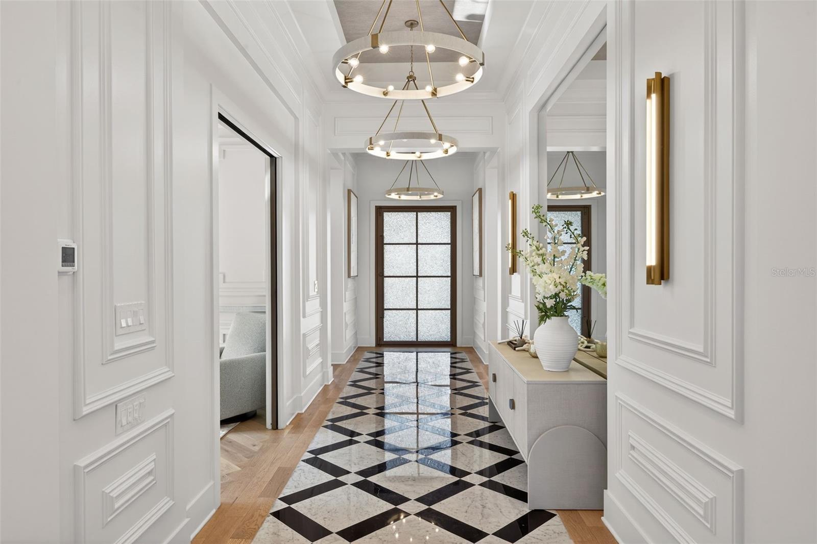 Must see to appreciate all the upgrades and architectural design details in this award winning Sapphire model home. Featuring modern transitional design, with warm wood tones, custom tile work, fluted wood feature wall with fireplace, hidden walk-in pantry, multiple custom ceiling details with cove lighting, and a custom boutique owner's closet that's a dream. The sun drenched outdoor space offers endless, breathtaking, unobstructed views of nature's beauty in a serene and private setting. Better than new, fully furnished and move-in ready, this luxurious residence exudes sophistication, from the moment you arrive at the beautiful crackled glass pivot front door. Step inside to a grand marble foyer featuring custom moldings, exquisite ceiling details, and elegant lighting that sets the tone for the exceptional craftsmanship found throughout.The gourmet kitchen is a chef's paradise, boasting upgraded professional appliances, a dramatic waterfall kitchen island, and a spacious walk-in pantry with custom built-ins for ultimate organization and style.Entertain effortlessly with an inviting lap pool, custom pool deck, and a fully equipped outdoor kitchen—all protected by StormSmart storm screens that safeguard your outdoor furnishings from hurricanes and debris. The pool bath impresses with decorative floor-to-ceiling tile work, adding a spa-like elegance. Custom finishes and upgrades abound, including stunning window treatments throughout, with room-darkening draperies and shades for perfect privacy and comfort. The bonus room offers versatility with a pull-out sofa bed and built-in cabinets, while the dedicated office features custom molding and thoughtful built-ins. A show-stopping wrap-around glass wall with sun shades floods the home with natural light and showcases the views.The high-end primary dream closet is a true highlight, complete with custom built-ins and integrated lighting for a boutique feel. Other upgrades include; Control-4, sound system throughout, landscape lighting, newer epoxy garage floor, and freshly painted interior of the home and garage. With custom finishes throughout this lock & leave residence, every detail has been thoughtfully curated to deliver unparalleled luxury and tranquility. Experience true elegance in one of Lakewood Ranch's most sought-after communities—your dream home awaits! Wild Blue is a new enclave of luxury properties with unparalleled amenities, including, tennis and pickleball, restaurant and bar, fitness center, golf simulator, a true resort lifestyle. The location offers the convenience of shopping and restaurants at Waterside Place and University Town Center just minutes away.