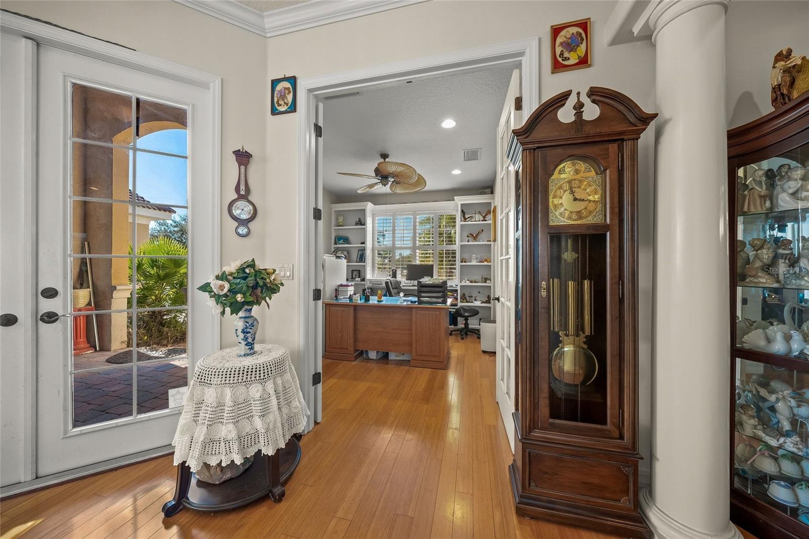 Don't miss this rare opportunity to own your one-of-a-kind 15+ acre estate in the exclusive Sarasota Ranch Club Community. This Custom Maglich Builders Mediterranean-Style home with a detached two-stall (plus tack room) 1980 Sqft horse barn sits on 15+ fully-fenced acres. The possibilities are endless for this rare find. Travel down the winding gated driveway and circular parking pad and enter the home through a grand entry, showcasing beautiful bamboo floors, views of the office, living room, dining room and the saltwater pool and backyard retreat. The gourmet kitchen offers granite countertops, built-in appliances and a second sink, perfect for a prep-station or versatile entertaining. The primary bedroom is separated from the other 3 ground-floor bedrooms, providing plenty of space for a large family, houseful of guests, or just comfortable every-day living. The large 5th bedroom is currently setup as an upstairs bonus room. An attached two-car garage and a detached one-car garage (connected by porte-cochere) create a private courtyard, shielded from the street. The backyard oasis features an outdoor kitchen, screen-enclosed saltwater pool, and a built-in brick circular firepit. The detached 1980 Sqft barn has two horse stalls, tack or storage room, and an overhead door. The space is perfect for horses or could be outfitted as a workshop or entertaining space. Equine enthusiasts will love the round pen, private horse run-out paddock, and expansive enclosed green pastures. The private bridle trail is easily accessible with an entrance on the Southeast corner of the property. Sarasota Ranch Club is an exclusive private gated equine community consisting of 60 pristine 10+acre tracts, totaling 620 acres. The Club is nestled amongst century-old majestic oak hammocks, lush pastures, and an abundance of ponds and creeks. With miles of bridle paths and a variety of wildlife, both horse enthusiasts and nature lovers will revel in the serene country setting. The Ranch Club is only 25 minutes from downtown Sarasota, and is even closer to I-75 , offering a comfortable commute to Tampa and St. Pete. Lakewood Ranch is a 5-minute drive away for your shopping and dining pleasure. The Gulf Coast's beautiful white sandy beaches, challenging golf courses, numerous marinas and cultural events are all within reach. Don't miss this opportunity! Schedule your private showing today!