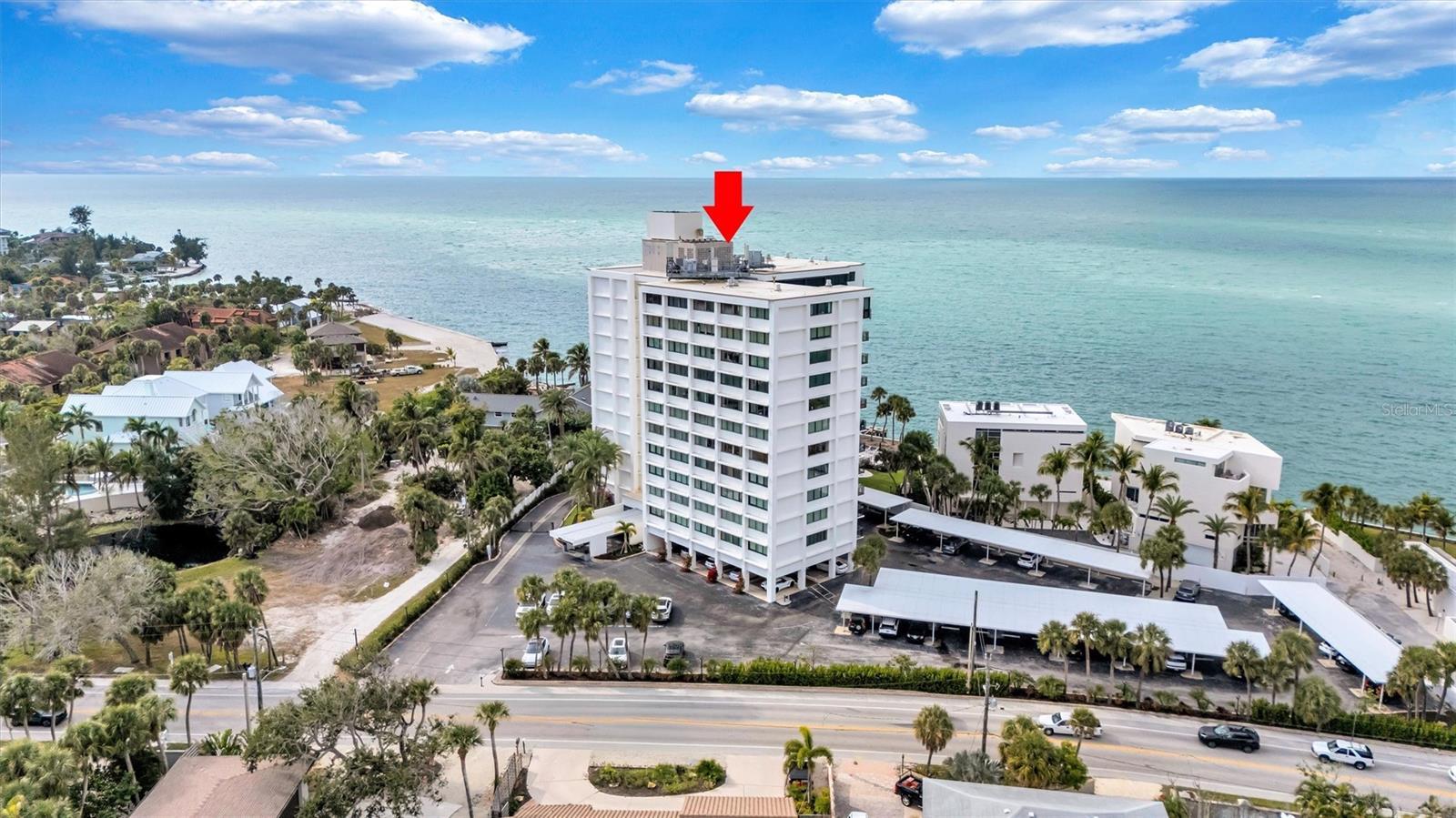 Under contract-accepting backup offers. Welcome to Gulf-front living at 4822 Ocean Blvd, Apt 8D on Siesta Key, where expansive water views, glowing sunsets, and refreshing coastal breezes create an effortless island lifestyle. This 2-bedroom, 2-bath residence spanning 1,440 square feet offers a spacious, light-filled layout designed to showcase breathtaking Gulf views from the main living areas. Wide-plank flooring, recessed lighting, and neutral coastal tones provide a clean, inviting backdrop, while expansive sliding glass doors lead to a generously sized screened terrace—perfect for dining outdoors, relaxing with morning coffee, or enjoying sunset skies and passing boats. The well-appointed kitchen is both functional and welcoming, featuring rich wood cabinetry, quartz countertops, stainless steel appliances, a designer tile backsplash, and a large island that anchors the living space while maintaining open sightlines to the water. A desirable split-bedroom floor plan ensures privacy for owners and guests. The primary suite is a tranquil retreat with serene water views and a thoughtfully updated en-suite bath featuring custom cabinetry, quartz counters, and a walk-in shower with a glass enclosure. The guest bedroom is comfortably sized and conveniently located near a second updated full bath, ideal for hosting family and friends. This Gulf-front community is exceptionally well maintained and professionally managed, with strong financial reserves and a proven track record of completed building improvements focused on long-term value and storm protection. Notably, association fees have decreased, and a new seawall is currently being installed and is fully funded, offering added confidence for future ownership. Inside, the sellers are offering a one year home warranty for additional peace of mind. Residents enjoy a full suite of amenities, including a Gulf-front pool, outdoor kitchen with grills, an inviting social room, fitness center, bike room, and a dedicated fishing room for gear storage. Each floor offers a laundry room with storage, with approved in-unit washers and dryers permitted. A new fishing pier and social sunset pier are being completed, creating an ideal waterfront setting for entertaining and unwinding. Just moments from Siesta Key Village, Island lifestyle is yours with coffee shops, dining, shopping, and nightlife close at hand. Offered at $899,000, Apt 8D represents an exceptional value for Gulf-front living—combining space, views, amenities, and a premier location at a compelling price point.
