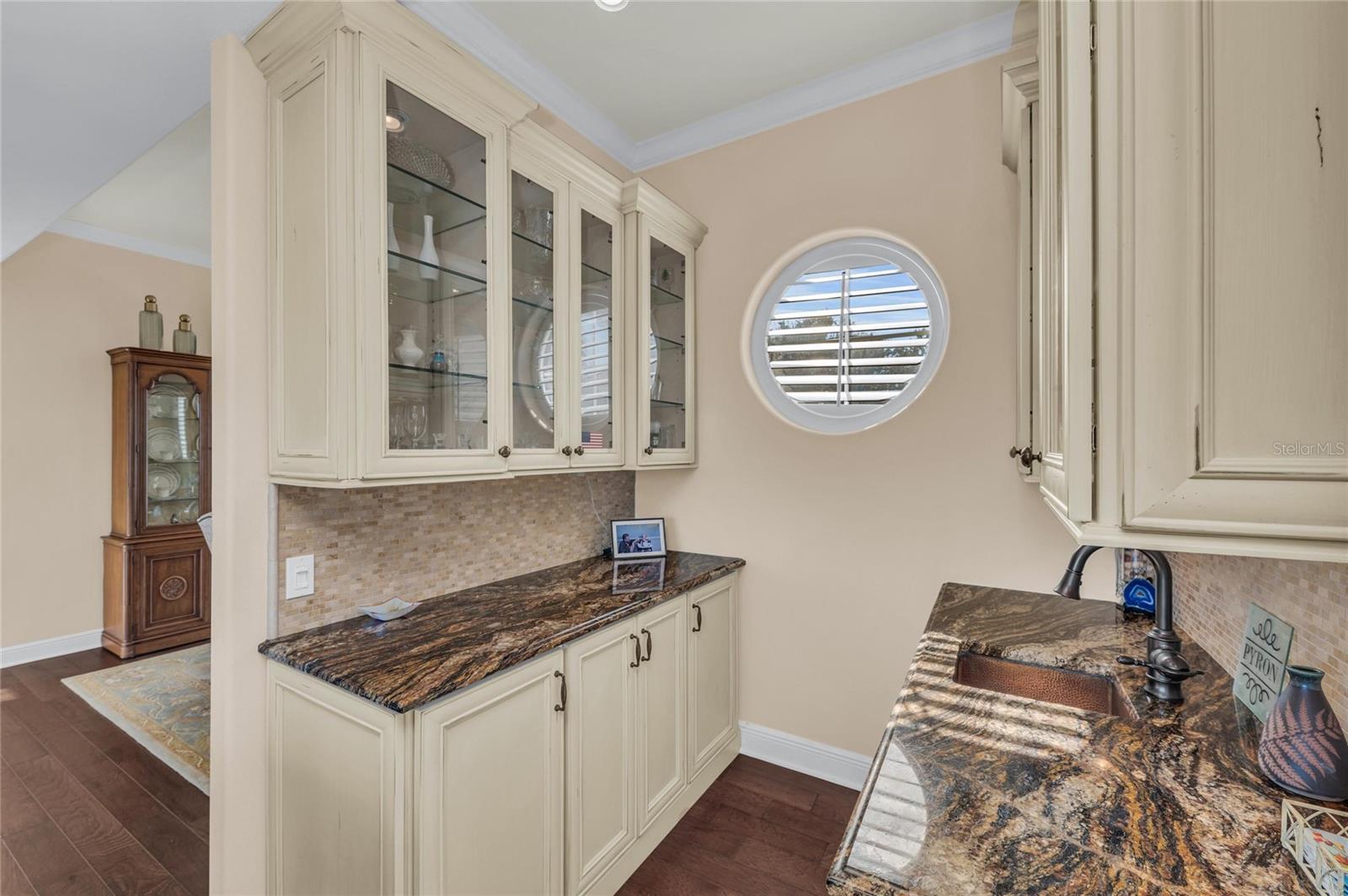- Built-in Features, Ceiling Fans(s), Crown Molding, Eat-in Kitchen, Elevator, High Ceilings, Open Floorplan, PrimaryBedroom Upstairs, Solid Surface Counters, Solid Wood Cabinets, Split Bedroom, Walk-In Closet(s), Wet Bar, Window Treatments