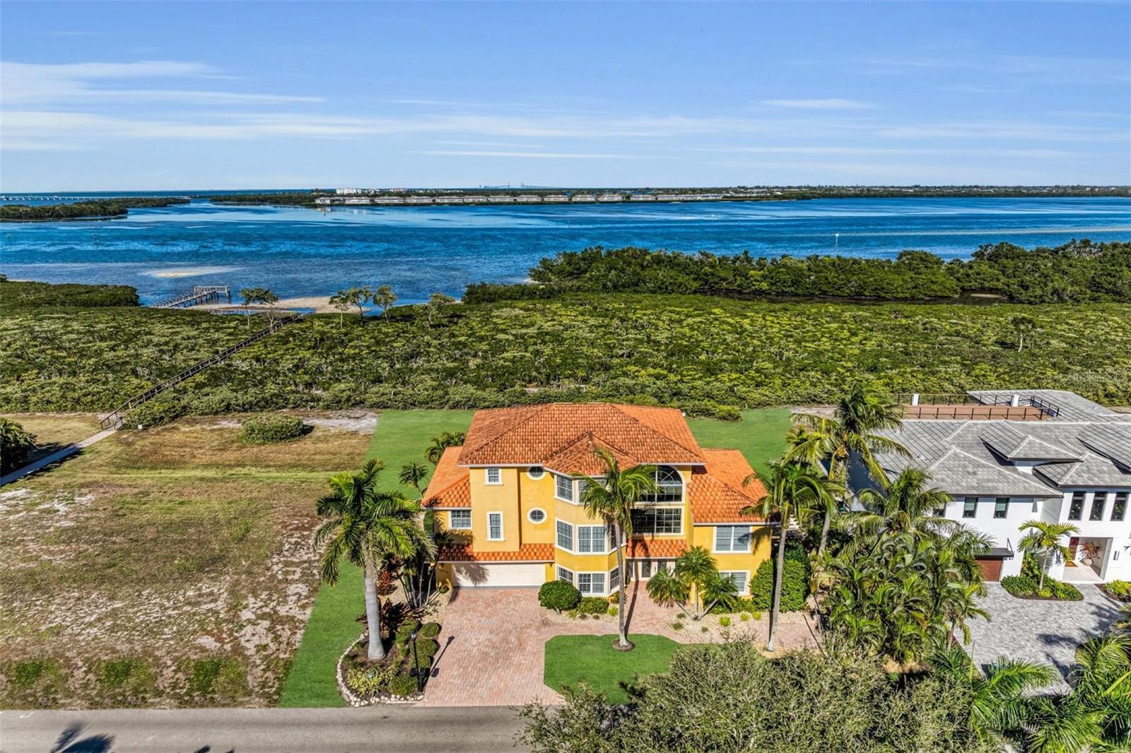 Under contract-accepting backup offers. REFINED LIVING FOR A LIFE WELL LIVED Located within a private gated community, this exceptional residence offers a spectacular bay view coupled with direct easy access to a deep-water marina and a private dock Boaters will Love. Thoughtfully designed with high-end appointments throughout, the home combines refined finishes with comfortable, functional living across three levels, all accessible by a private elevator. The kitchen is a standout feature, designed to satisfy even the most discerning chef, with premium Wolf appliances, generous workspace, a full size wine cooler, over sized center island and a seamless flow to the main living and entertaining areas. Expansive windows capture stunning bay views that welcome the Sunrise every morning while multiple living spaces provide flexibility for everyday living and hosting guests. Outdoor living is equally impressive, featuring a veranda with seating for 12, a luxurious heated salt water pool and spa all set in a private, resort-style setting. Additional Features Include: A cozy fireplace the perfect place to snuggle up with that special someone, the safety of a whole house generator for unexpected circumstances, first floor spaces ideal for a gym to keep fit, a man cave so you never miss the Big game, or a craft area for the more creative partner of the home. Located just 1 mile (walking distance) from the pristine beaches of Anna Maria Island where you'll find sun, surf and spectacular sunsets. This beautifully appointed home offers the security of gated living, the convenience of elevator access, and the rare combination of panoramic water views and deep-water boating—delivering an exceptional coastal lifestyle. Call for an appointment today and start enjoying a life well lived!