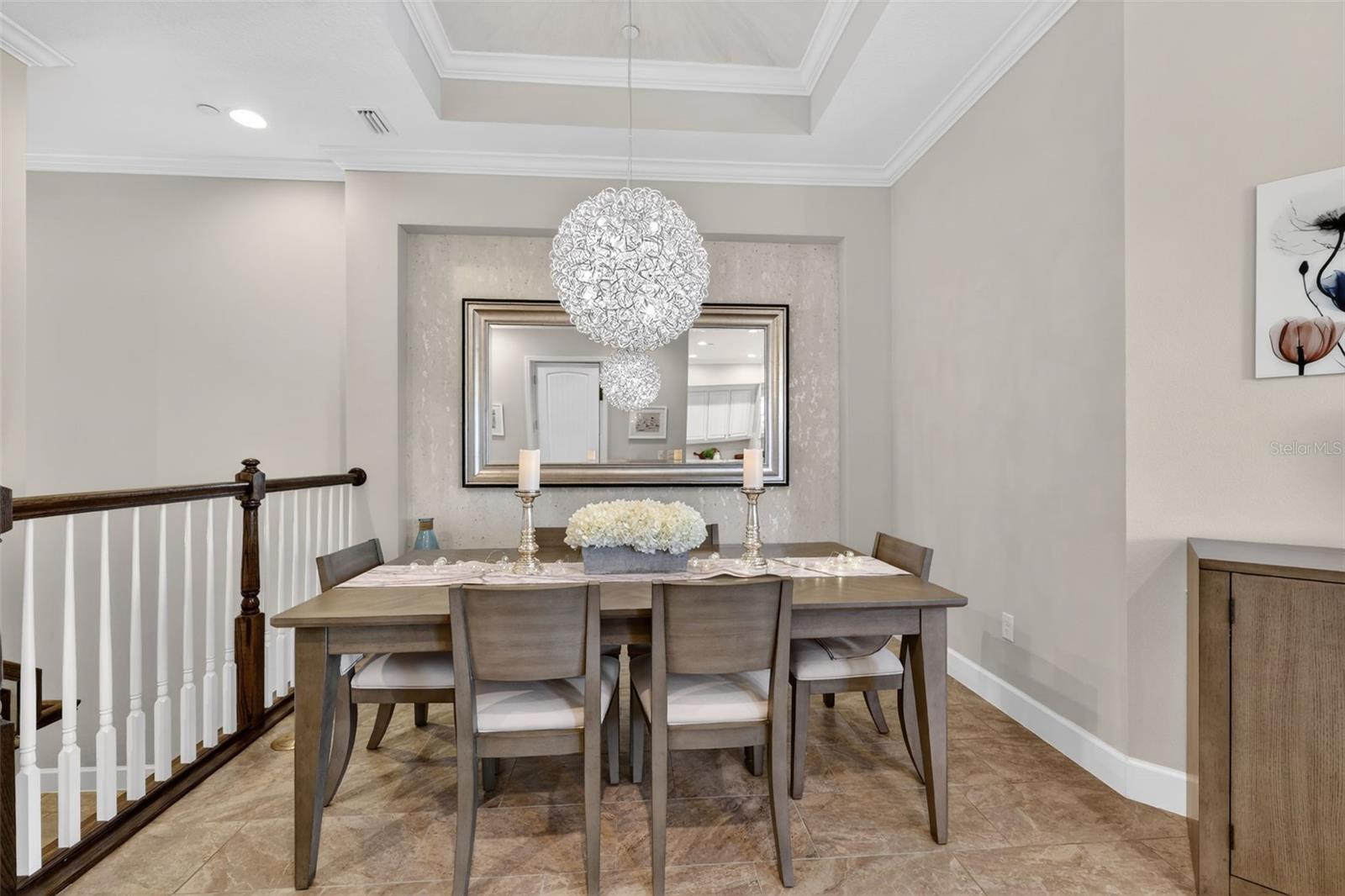 - Ceiling Fans(s), Crown Molding, Eat-in Kitchen, Elevator, High Ceilings, Open Floorplan, PrimaryBedroom Upstairs, Solid Wood Cabinets, Split Bedroom, Stone Counters, Vaulted Ceiling(s), Walk-In Closet(s), Window Treatments