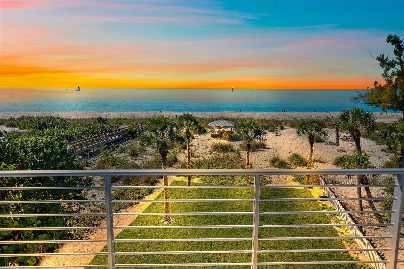 Wake up every morning to beautiful Gulf views from your third floor primary suite! Experience effortless luxury in this exceptional Gulf-front estate on the pristine shores of Casey Key, where privacy, tranquility, and sweeping water views await. Originally built in 1951 and tastefully renovated in 2016 and 2025, this beach-front residence seamlessly blends classic character with refined modern updates. Offering nearly 4,000 square feet of living space under air, this home features 6 bedrooms and 4.5 bathrooms across three levels, designed for both comfort and entertaining. Generous room for hosting/gathering throughout with three expansive balconies inviting you to enjoy both breathtaking Gulf and intracoastal waterway views! Thoughtfully designed in-law quarters on the first level with the second level featuring a gourmet chef’s kitchen, family room and additional guest rooms/baths. The chef's kitchen is equipped with a Wolf six-burner gas range with griddle and double oven, a Sub-Zero PRO refrigerator/freezer, granite countertops, soft-close cabinetry, and a large centerpiece island perfect for casual dining with a view. The Owner's level on the third floor is to die for! Tremendous views of the Gulf from the substantial primary suite with this level also featuring a sitting area and den/office/bonus room that has views of the intracoastal waterway! The primary bathroom includes a stand-alone garden tub with skylight over, large walk-in glass and tile shower, dual vanities, and solid wood cabinets with granite countertops. Additional highlights include impact windows and doors, travertine flooring throughout (with the exception of engineered hardwood in the kitchen), marble-tiled baths, and a 2-car garage. Recent improvements include a new metal roof (2025), new sod/landscaping/irrigation (2025), fresh paint inside and out (2025), a new septic system (2025) and A/C system (2023), offering peace of mind for years to come. Offered turnkey furnished. With private beach access steps away, this is a rare opportunity to own a truly remarkable waterfront retreat on one of Florida’s most desirable barrier islands! Call today for more information or to set up a private tour!