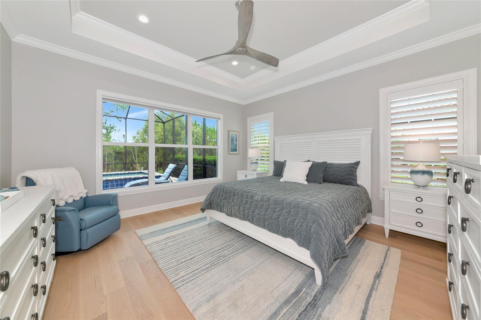 Exquisite Luxury Living in Country Club East. Welcome to this exceptional residence that seamlessly blends pristine condition, refined upgrades, and a coveted setting within one of Lakewood Ranch’s premier gated communities. This Neal Signature home was Built in 2021 and thoughtfully enhanced in 2022 and 2024, this home shows like a model and features IMPACT WINDOWS AND DOORS at both the front and rear. Meticulously maintained, every detail reflects quality and care. From the moment you arrive, the craftsmanship is evident. A grand gallery hallway with dual coffered ceilings and elegant chandeliers creates a striking first impression, drawing your eye straight through to tranquil preserve views. The open-concept design balances sophistication and comfort, with expansive windows that fill the home with natural light and showcase lush surroundings from nearly every room. The gourmet kitchen is a true showpiece, appointed with top-tier Wolf and Bosch appliances, deep-drawer cabinetry, a spacious walk-in pantry, and an oversized island that anchors the space. It flows effortlessly into the great room, making it ideal for both entertaining and everyday living, all while offering seamless indoor-outdoor connection and uninterrupted views of vibrant flowering trees and greenery. The owner’s suite serves as a private retreat, featuring direct lanai access, serene preserve views, and a spa-inspired bath with dual vanities, an oversized walk-in shower, and a custom closet that conveniently connects to the laundry room. Two guest bedrooms are tucked into their own wing, sharing a beautifully appointed bath that provides privacy and comfort for visitors. A flexible bonus room adds versatility, perfect for a home office, media room, or creative studio. Step outside and embrace the Florida lifestyle. The oversized 12’ x 27’ saltwater pool and elevated spa are surrounded by mature landscaping for exceptional privacy, while the covered lanai includes a fully equipped Lynx outdoor kitchen—ideal for entertaining or unwinding at day’s end. Additional highlights include an oversized two-car garage plus a separate third bay, perfect for a workshop, gym, or golf cart storage. Wide-plank white oak floors, custom wood ceiling accents, and premium finishes throughout underscore the level of craftsmanship typically found in far more expensive homes. Located in a maintenance-free section of Country Club East with lawn care included, this extraordinary home offers the rare opportunity to move right into a like-new residence without the wait of new construction. Schedule your private showing today and experience luxury living at its finest.