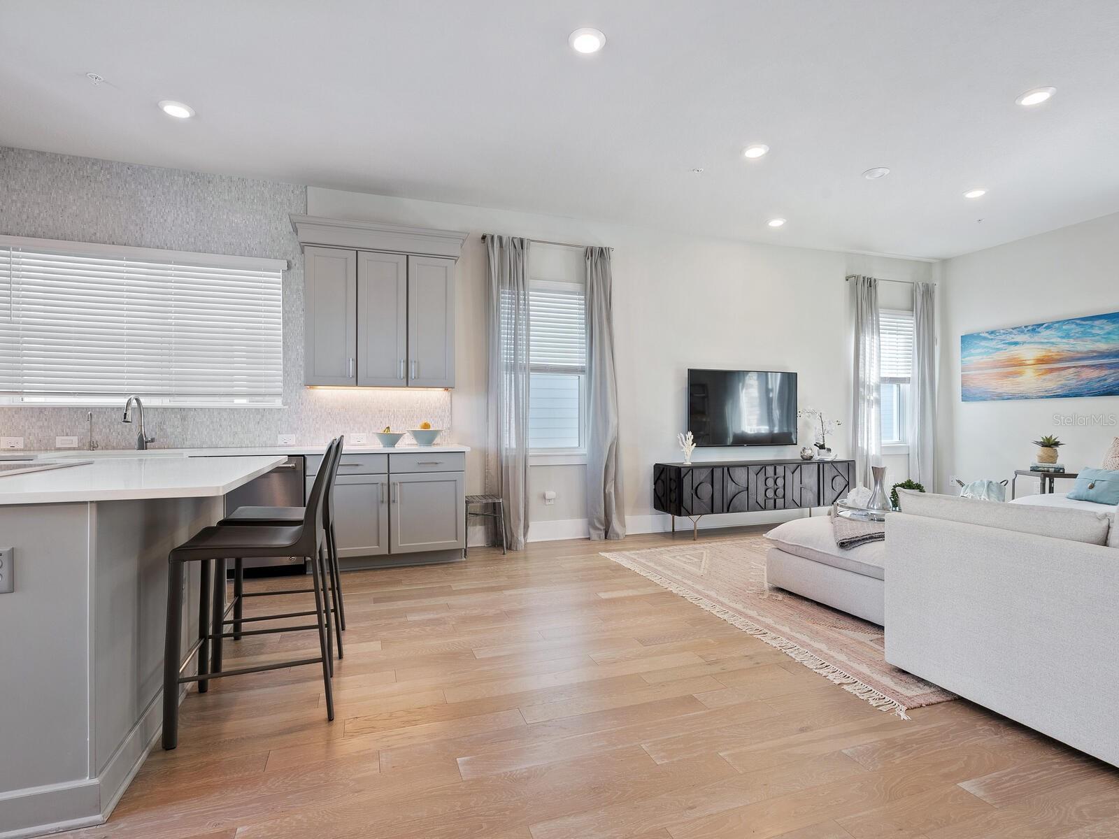 It’s always about the experience of living downtown Sarasota from this four-story townhome with elevator for convenience. Built to rigorous standards with impact windows and doors. Charming gated entry to home makes it inviting and to the foyer, where a private elevator provides access to every level of the home. First level with private two-car garage, oversized closet. Second level hosts the kitchen and open great room concept dining and living area. Also, an easily accessible powder room. Third level offers two spacious en-suite bedrooms with walk-in closets. Topping it all off, on the entire fourth level is a grand owner’s suite with walk-in closet, spa bath and thoughtful bar area with beverage refrigerator. Each floor/area of the residence has dual balconies for seamless indoor/outdoor living. The kitchen has on-point cabinet color with quartz counters, stainless appliances and induction cooktop with down-draft venting. Hardwood floors throughout the main living areas provide warmth and sophistication. This idyllic downtown location in the Enclave at Laurel Park is walking distance to the Bayfront Park, Ringling Bridge, Farmers Market, the Sarasota Opera, Van Wezel, fine dining, shopping and all that bustling Sarasota offers. Payne Park with tennis, playground, skate park are nearby as well as an extraordinary beach and boating lifestyle. Siesta Key and Lido Beach are moments away as is Legacy Trail and access to many parks and preserves. This extraordinary home is the ideal frame for an exceptional, easy living life!