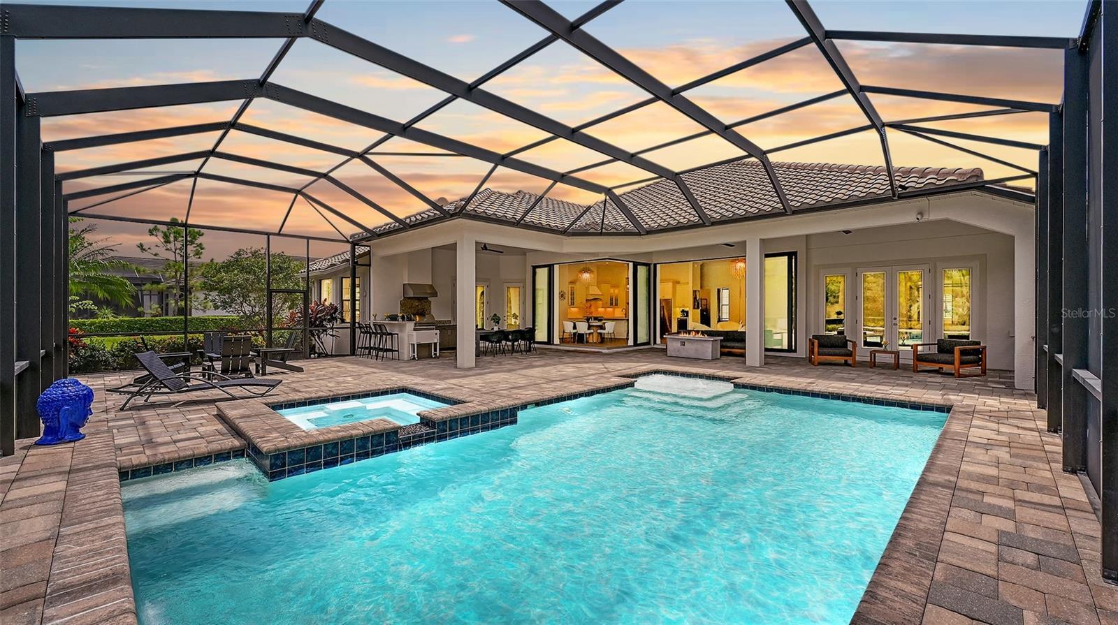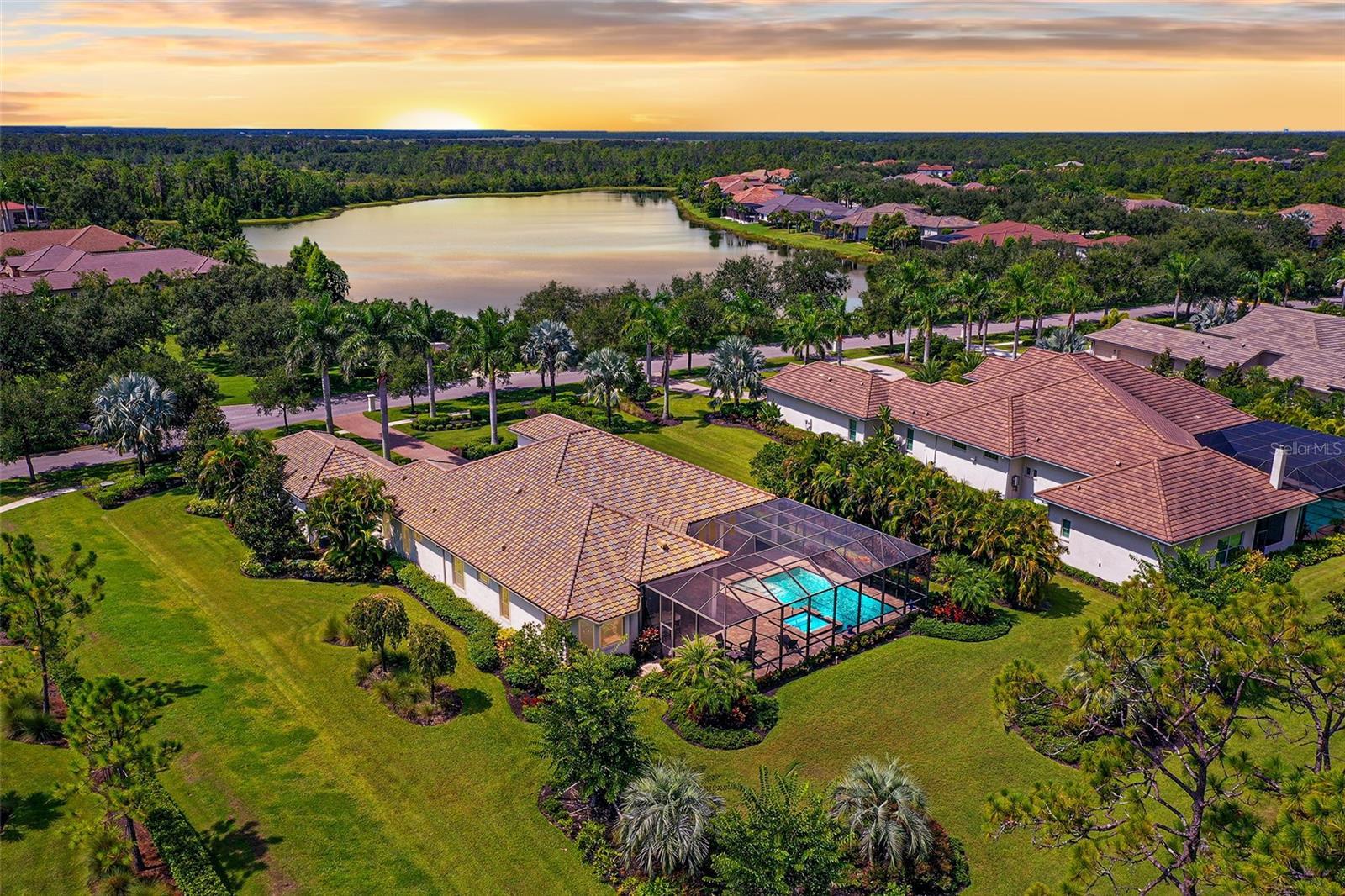 Under contract-accepting backup offers. Set on a premier one-acre homesite in The Concession, 8361 Lindrick Lane captures the essence of refined Florida living. With tranquil lakefront sunsets at the front and a private preserve sanctuary at the rear, the orientation affords an unparalleled sense of serenity and seclusion. Its exceptional depth further distinguishes the property, offering the rare versatility to expand the residence or design a bespoke guest casita. The generous open plan blends elegance and comfort, showcasing 12-foot ceilings, wide-plank engineered flooring, and a striking stone feature wall with fireplace—elevating the home’s timeless sophistication. Designed for both daily living and memorable entertaining, the home offers three bedrooms, three full baths, a custom office filled with natural light, and a versatile bonus/media room. The chef’s kitchen is a centerpiece, featuring an impressive quartz island, natural gas cooking, built-in appliances, and seamless flow into the great room. Expansive pocketing sliders and a dramatic disappearing corner of glass open the interiors to the lanai, blurring the lines between indoor comfort and outdoor entertaining. The sweeping lanai serves as a private oasis, with a heated pool and spa, a fully equipped outdoor kitchen, multiple dining and lounge areas, and space for a fire pit beneath the stars. The primary suite is a luxurious retreat with French doors to the pool terrace, oversized walk-in closets, and a spa-inspired bath. A three-car garage and thoughtful finishes throughout further enhance this exceptional property. Constructed in 2015 and located outside of a high-risk flood zone, this residence offers both elegance and peace of mind. Renowned for its championship golf, available through optional membership, The Concession has hosted prestigious PGA Tour events including the 2021 World Golf Championships and the 2023 World Champions Cup, and will welcome the Senior PGA Championship this April. The club is complemented by celebrated wine-focused dining, world-class amenities, and serene natural beauty. Ideally positioned near Lakewood Ranch’s premier shopping and dining, and within easy reach of Sarasota’s finest Gulf Coast beaches, this residence offers an exceptional balance of exclusivity and connection.