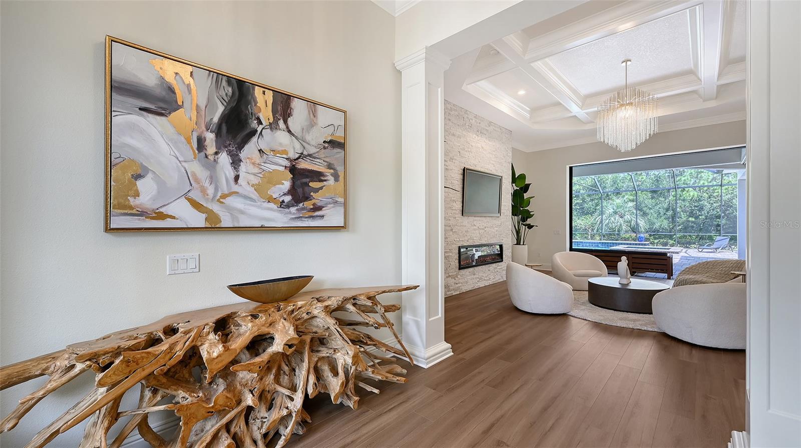 - Coffered Ceiling(s), Eat-in Kitchen, High Ceilings, Open Floorplan, Primary Bedroom Main Floor, Tray Ceiling(s)
